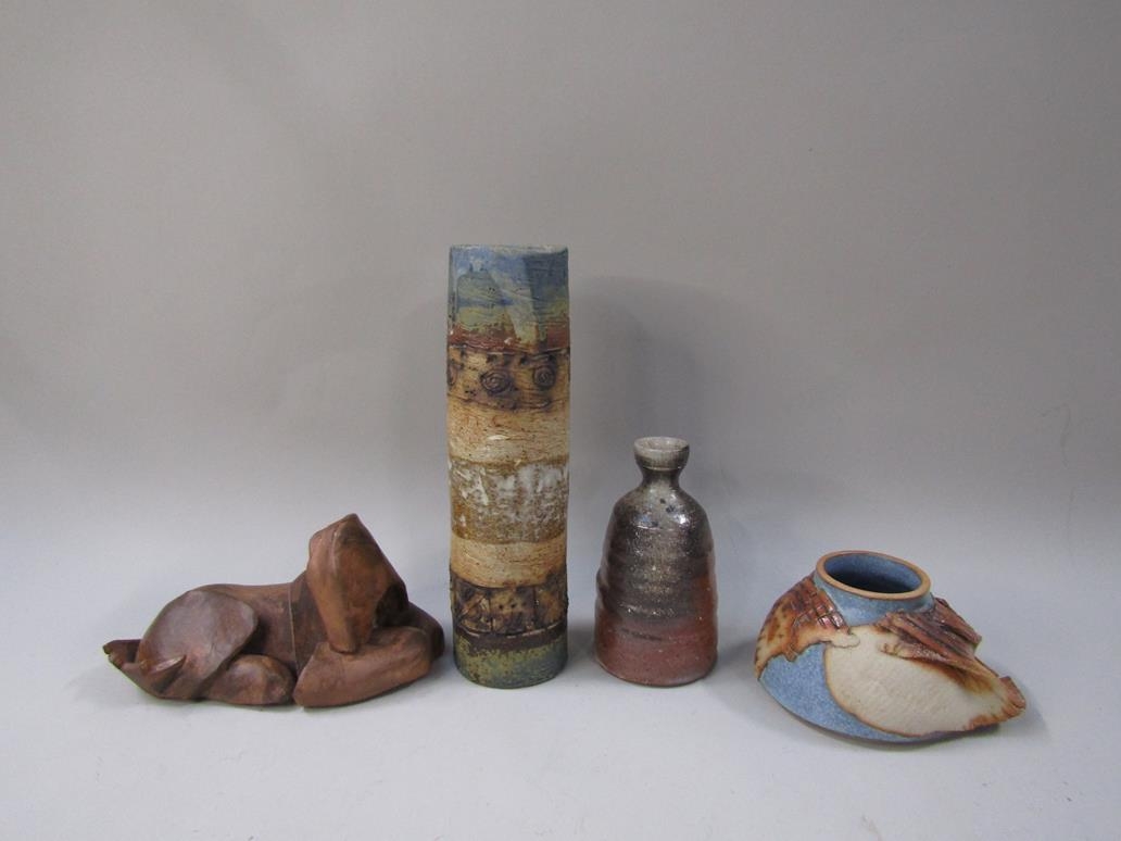 FOUR COX CERAMICS CUMBRIAN POTTERY VASES AND A HORSE