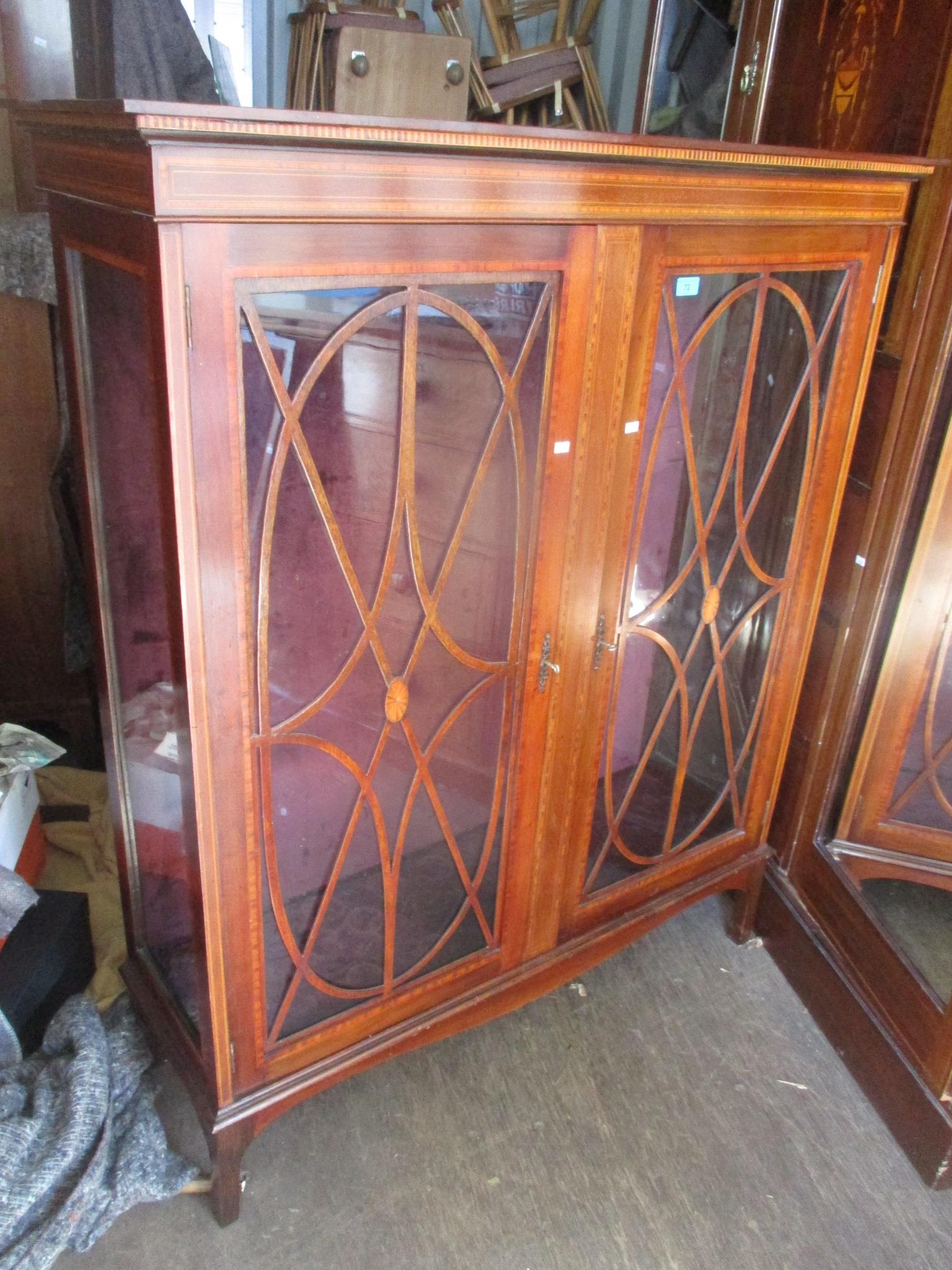A late Victorian/early Edwardian Sheraton revival bookcase with later base 140.5cm h x 114cm w