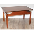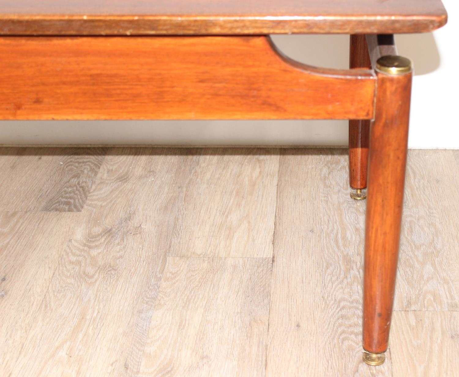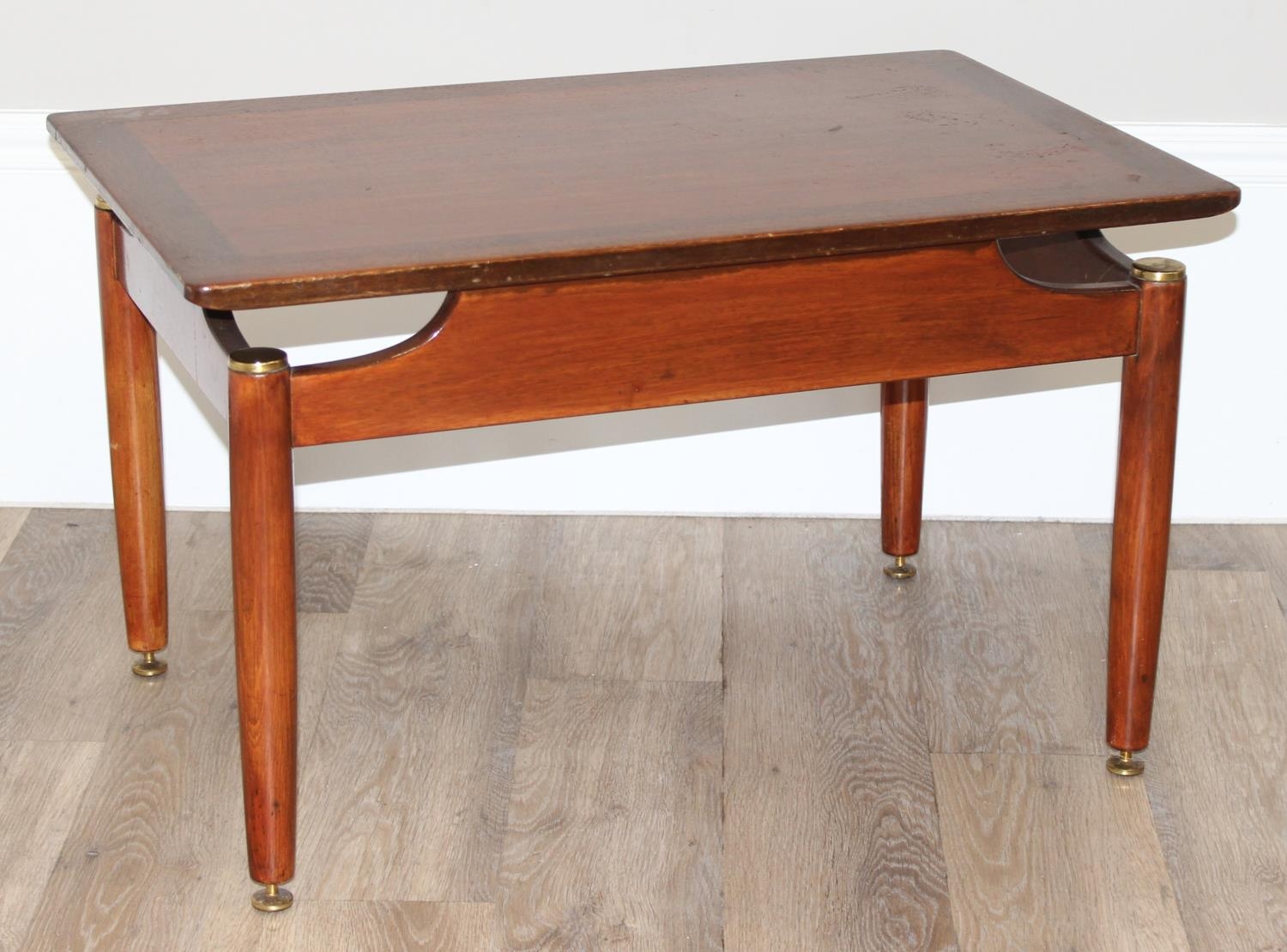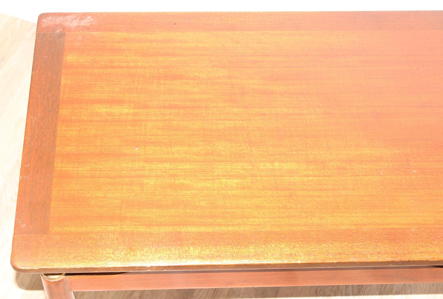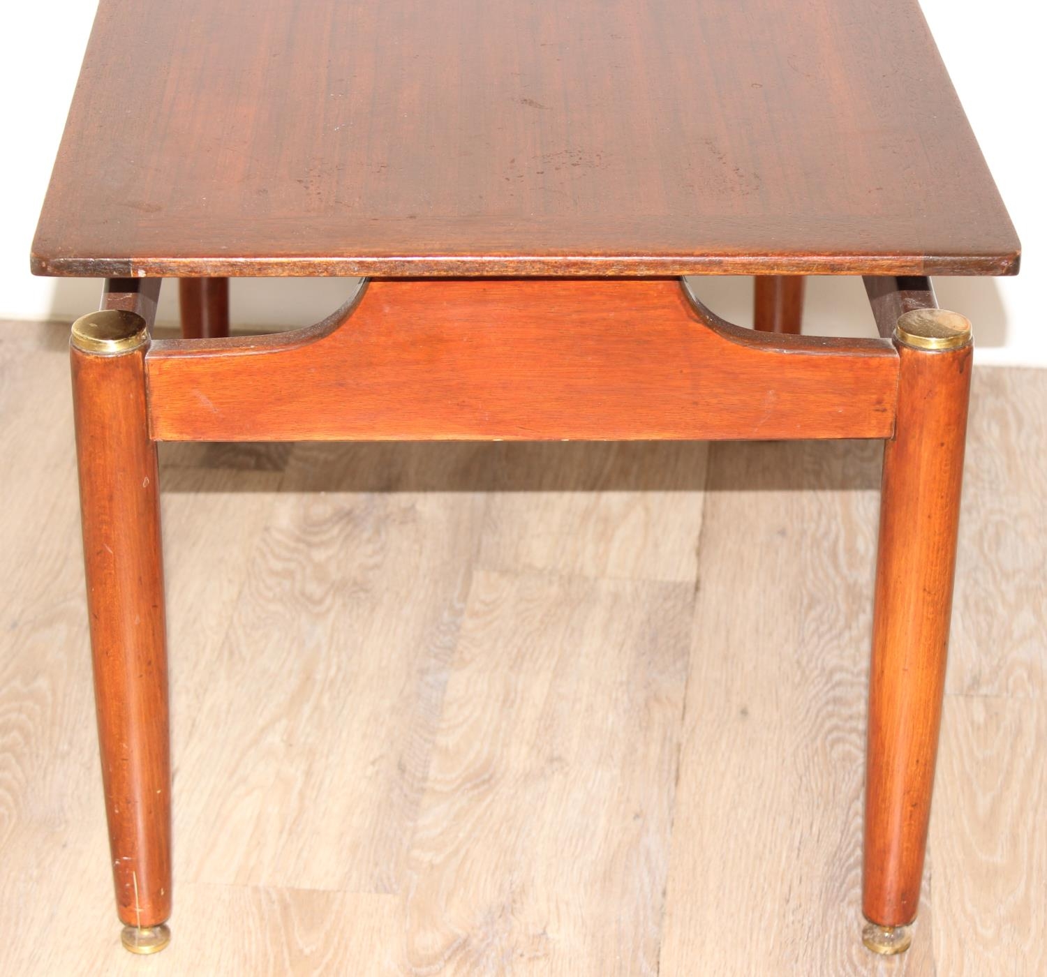 Retro low coffee table with brass accents, G-Plan stamp, approx 74cm wide x 48cm deep x 45cm tall