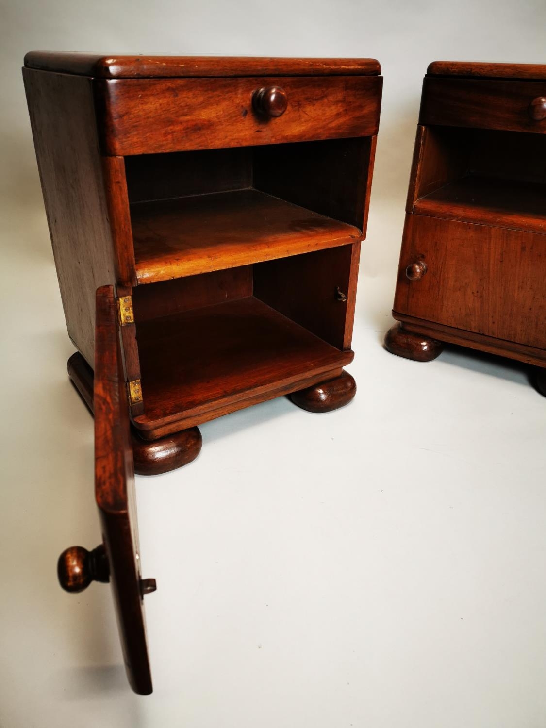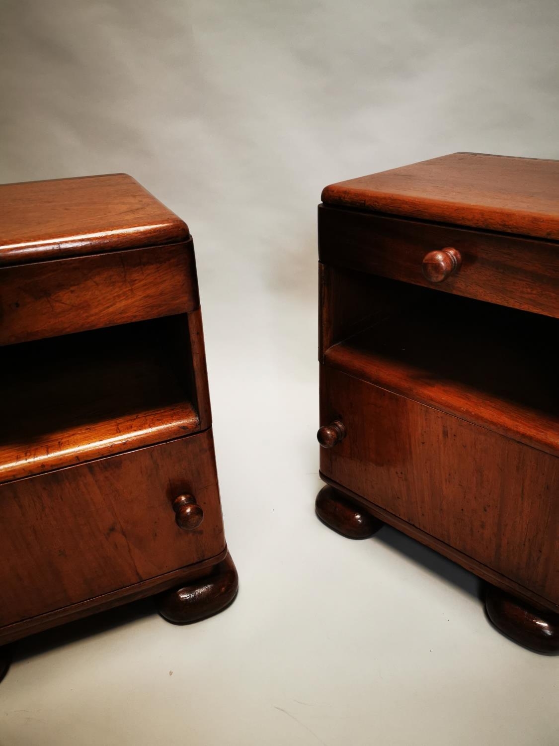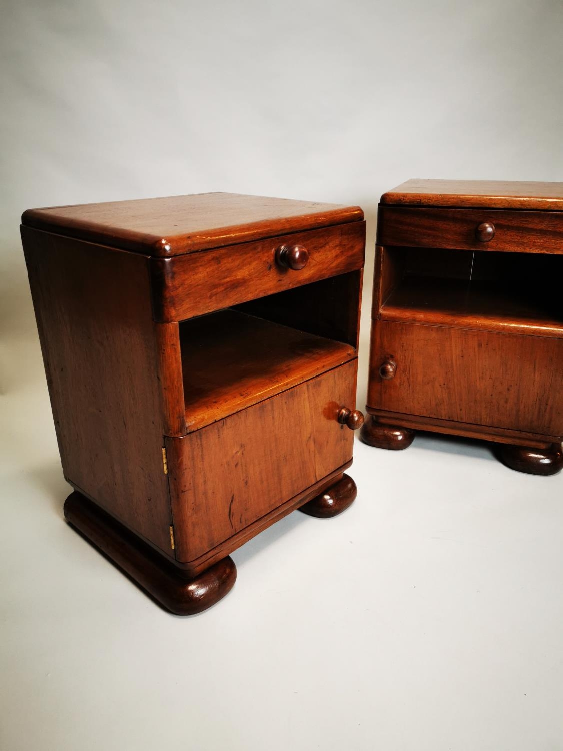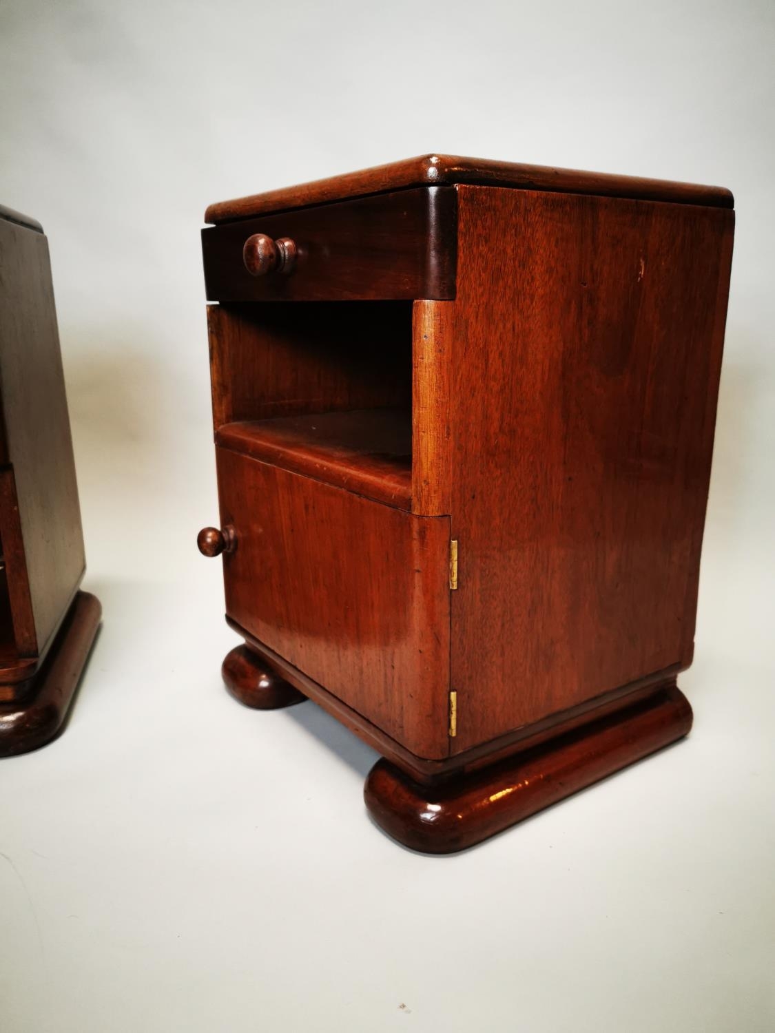 Pair of Art Deco mahogany bedside lockers {55 cm H x 42 cm W x 38 cm D}.