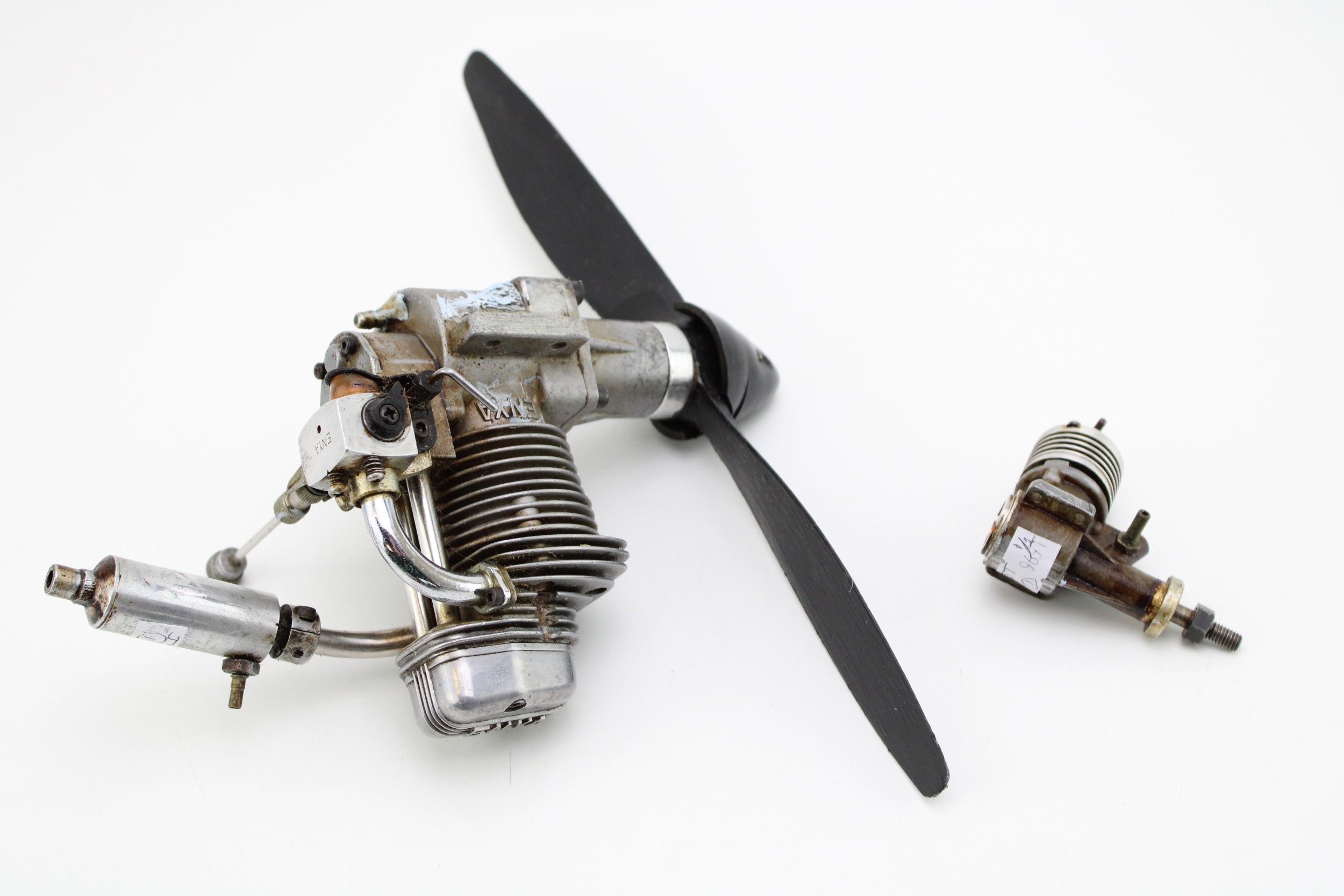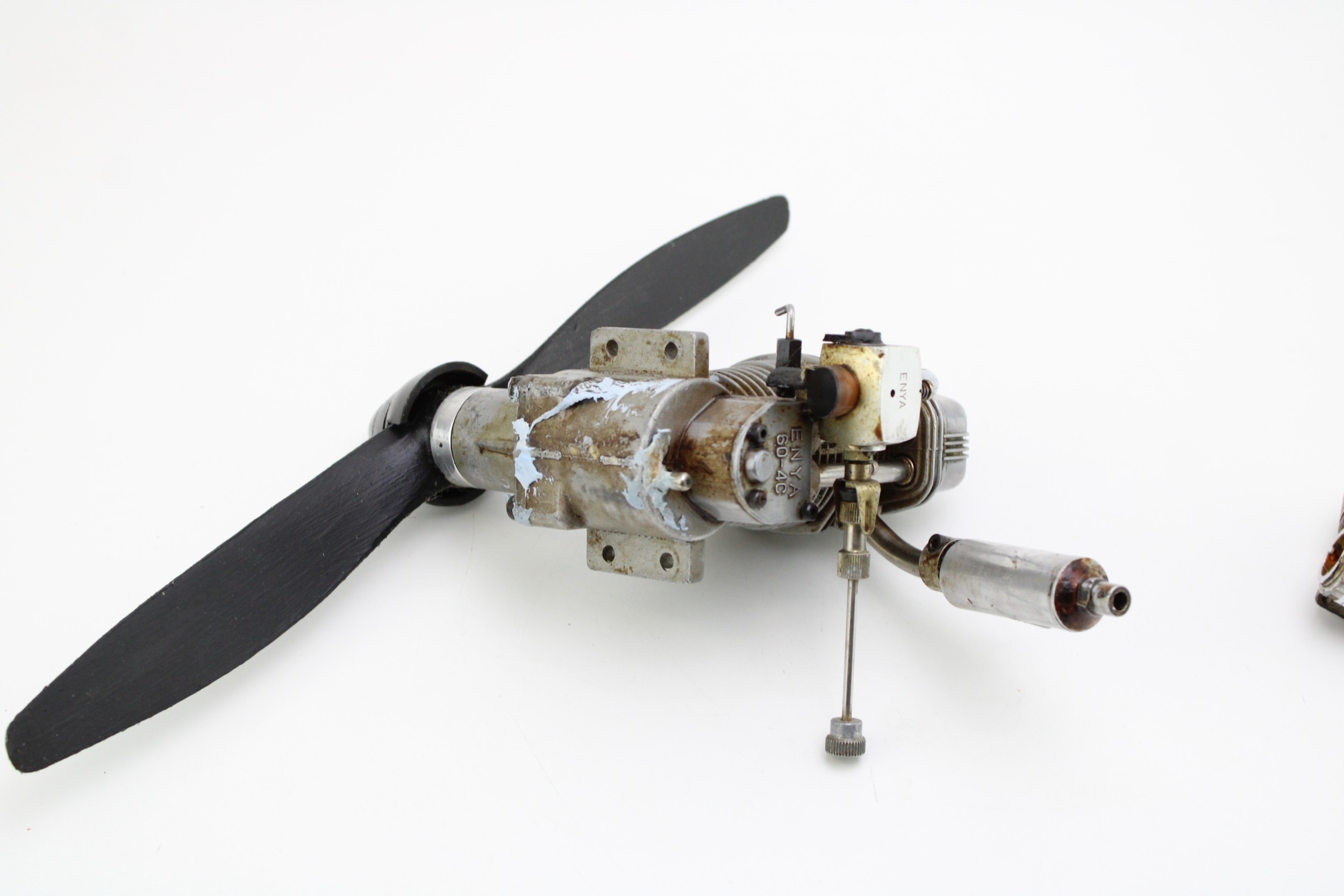 Enya 60-4c Fourstroke enginne for model aircraft, together with one other, 23cm wide, 13cm tall, (2).