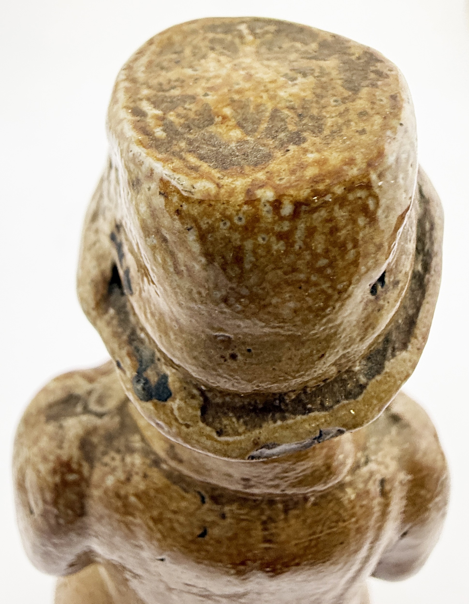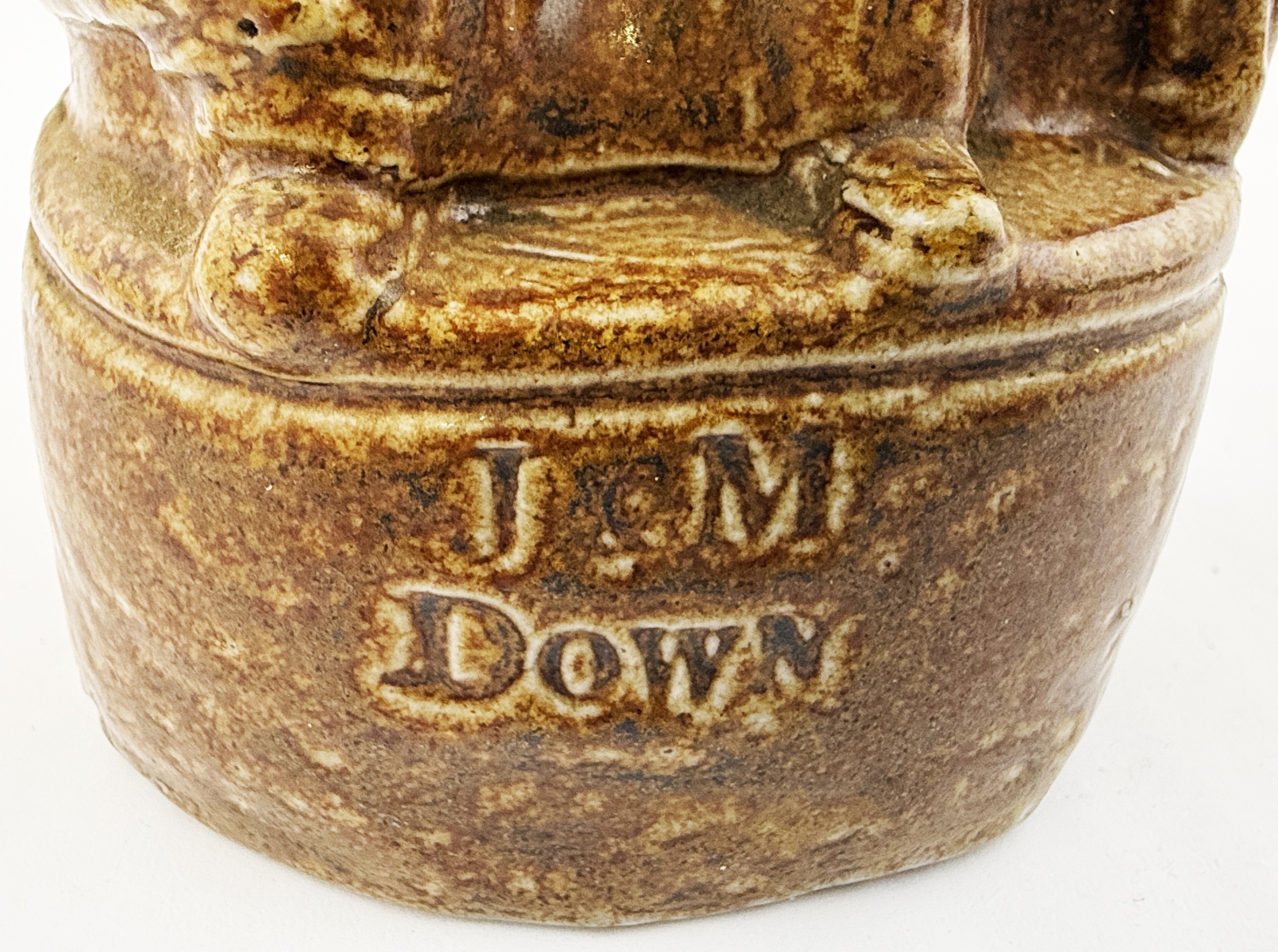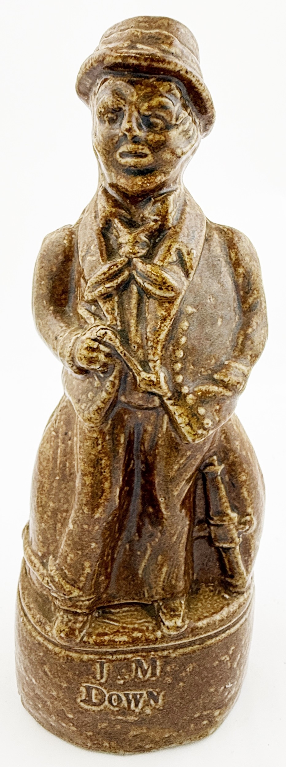 SAILOR NAMED REFORM STATUE. RF 39. 7.75ins tall. Unusual reform type statue modelled as sailor with horizontal anchor but NOT a flask - there’s no top opening. Plinth impressed J & M/ DOWN. Never seen another? Dudley Davidson collection.