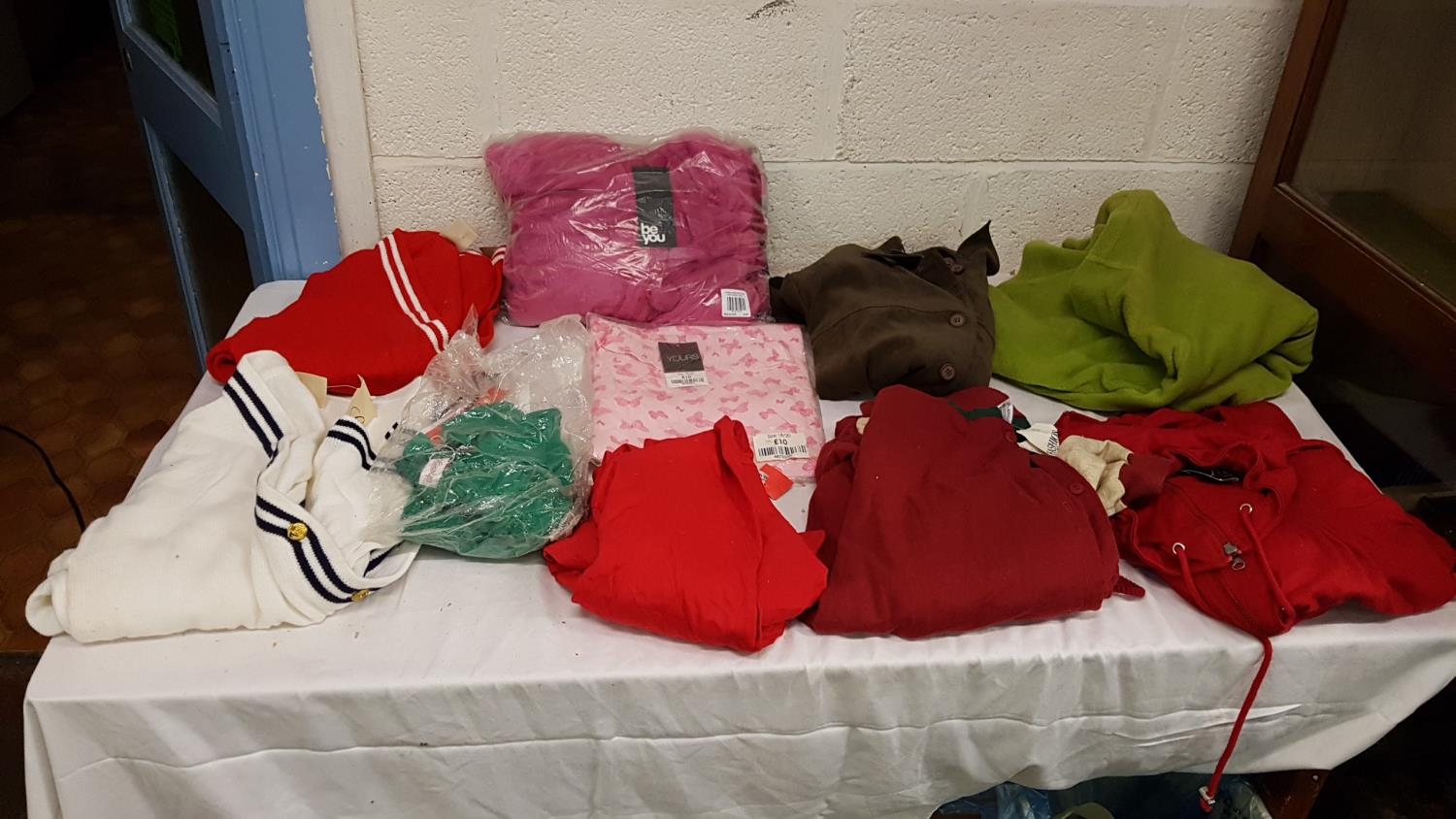 Box of Assorted NEW Clothing with Tags Including Jackets - sizes 14-20.