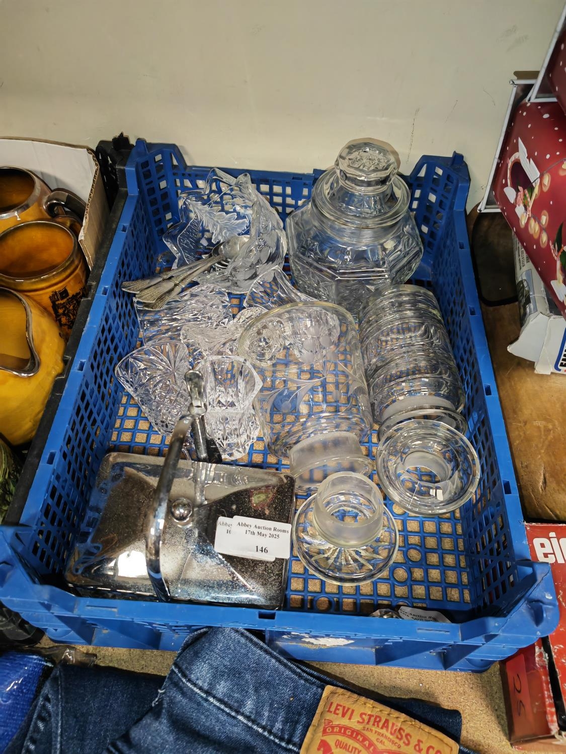 Basket Of Glassware Including Crystal