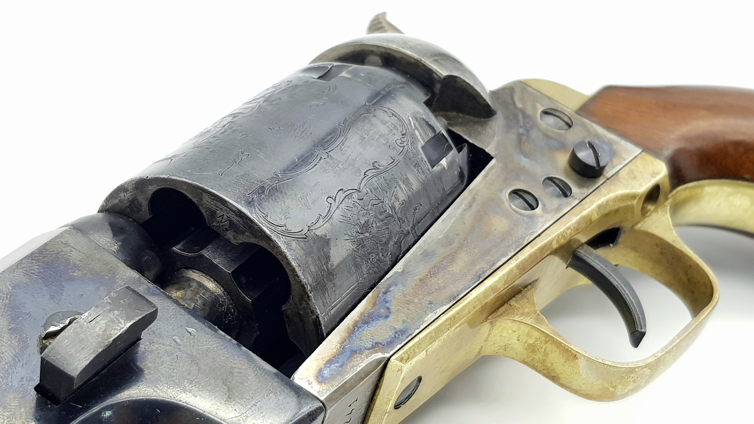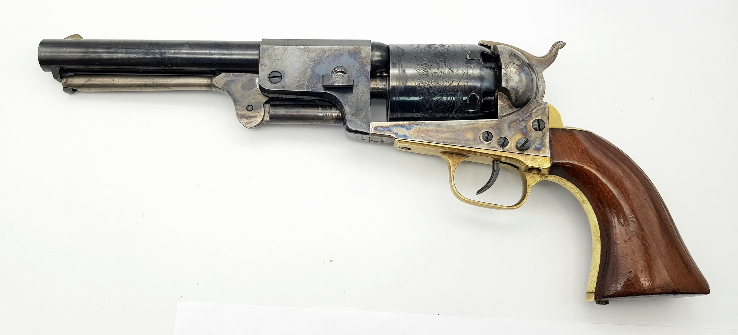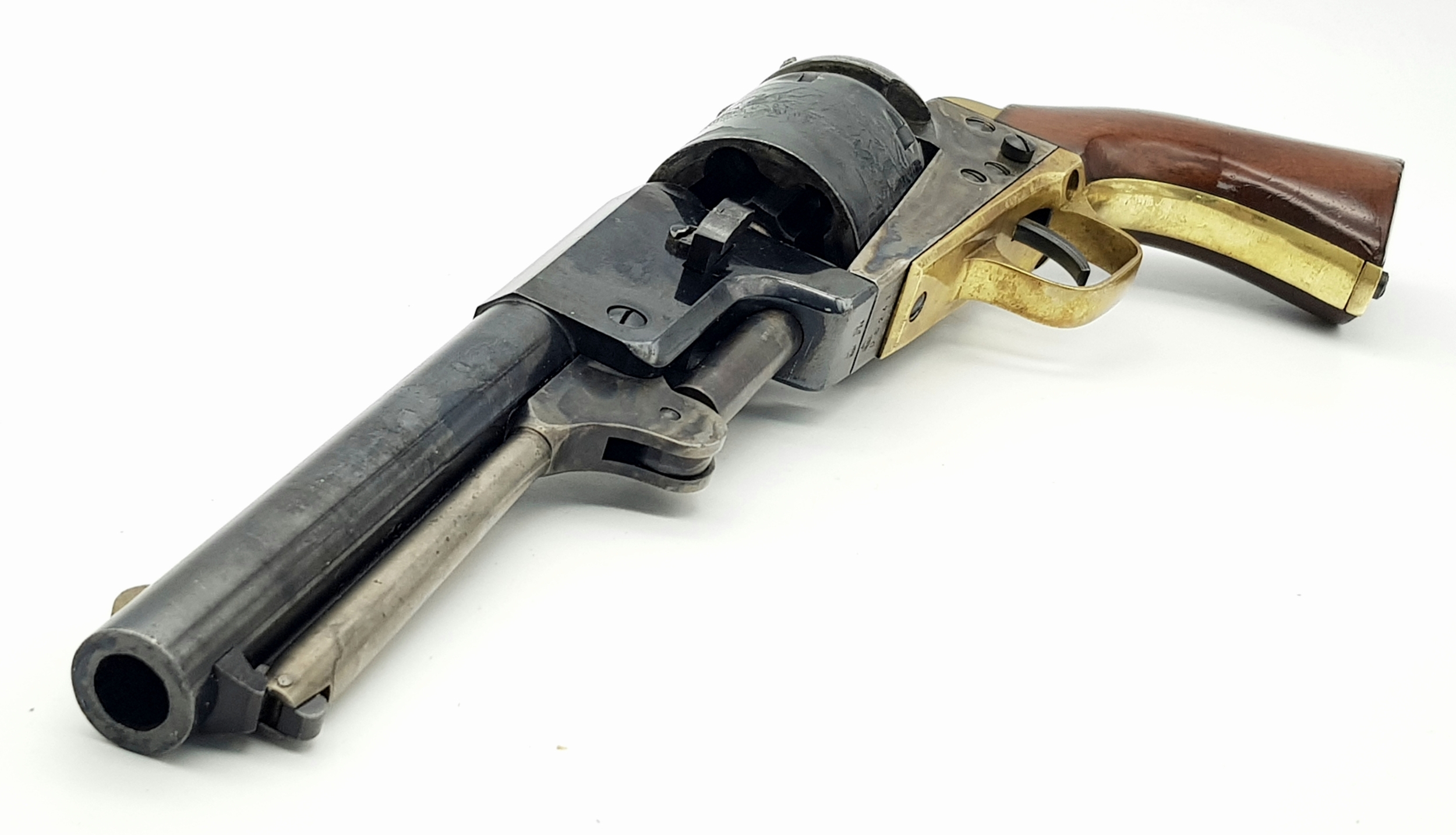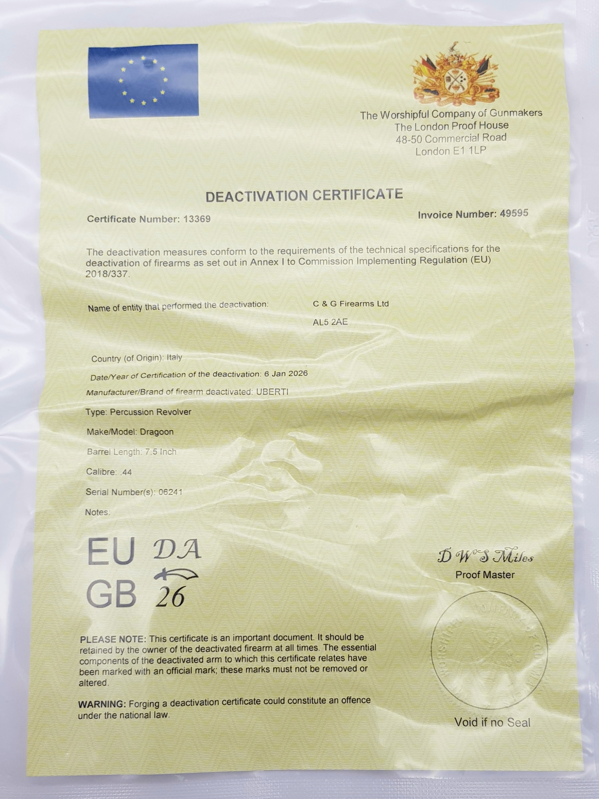 A Deactivated Italian Uberti Replica 1848 Dragoon Black Powder Revolver. Calibre - .44. Barrel length - 7.5 inches. Comes with an EU deactivation certificate. UK/EU sales only - Not Holland.