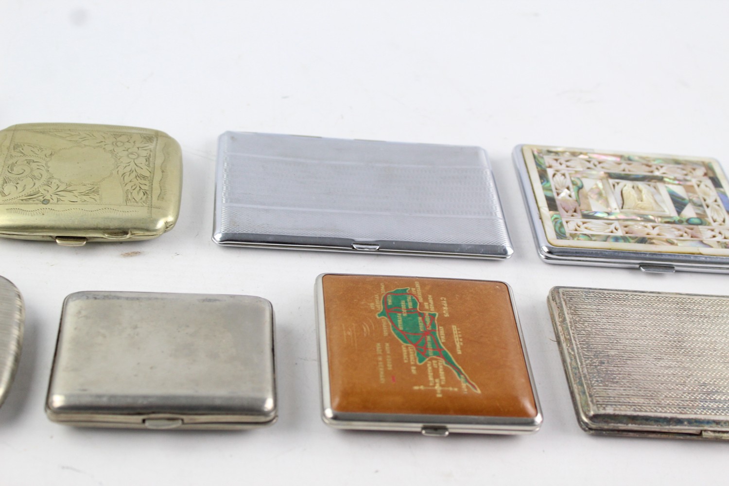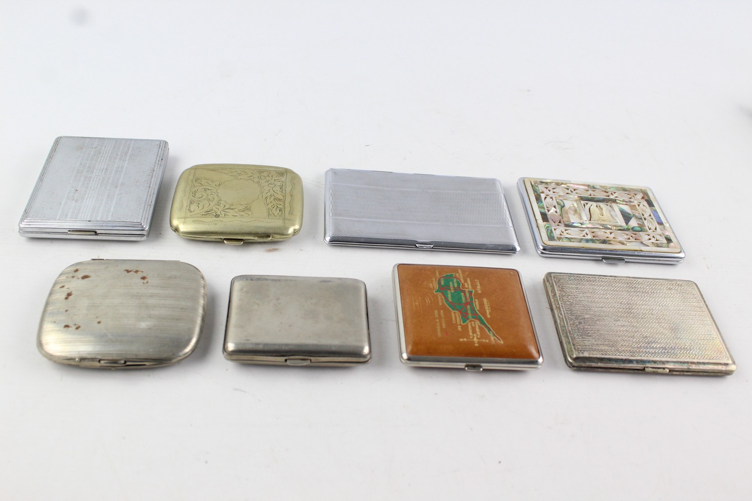 8 x Assorted Vintage TOBACCIANA Cigarette Cases Inc Leather, Silver Plate Etc