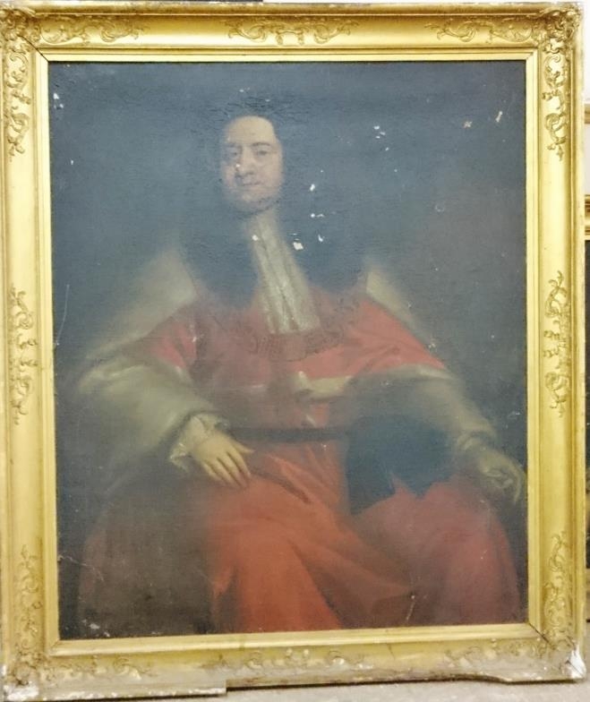 Eyre Family Portrait of Lord Chief Justice Sir Robert Eyre, Vice Chancellor to the Prince of Wales (born 1666, died 1735). 38 x 46ins