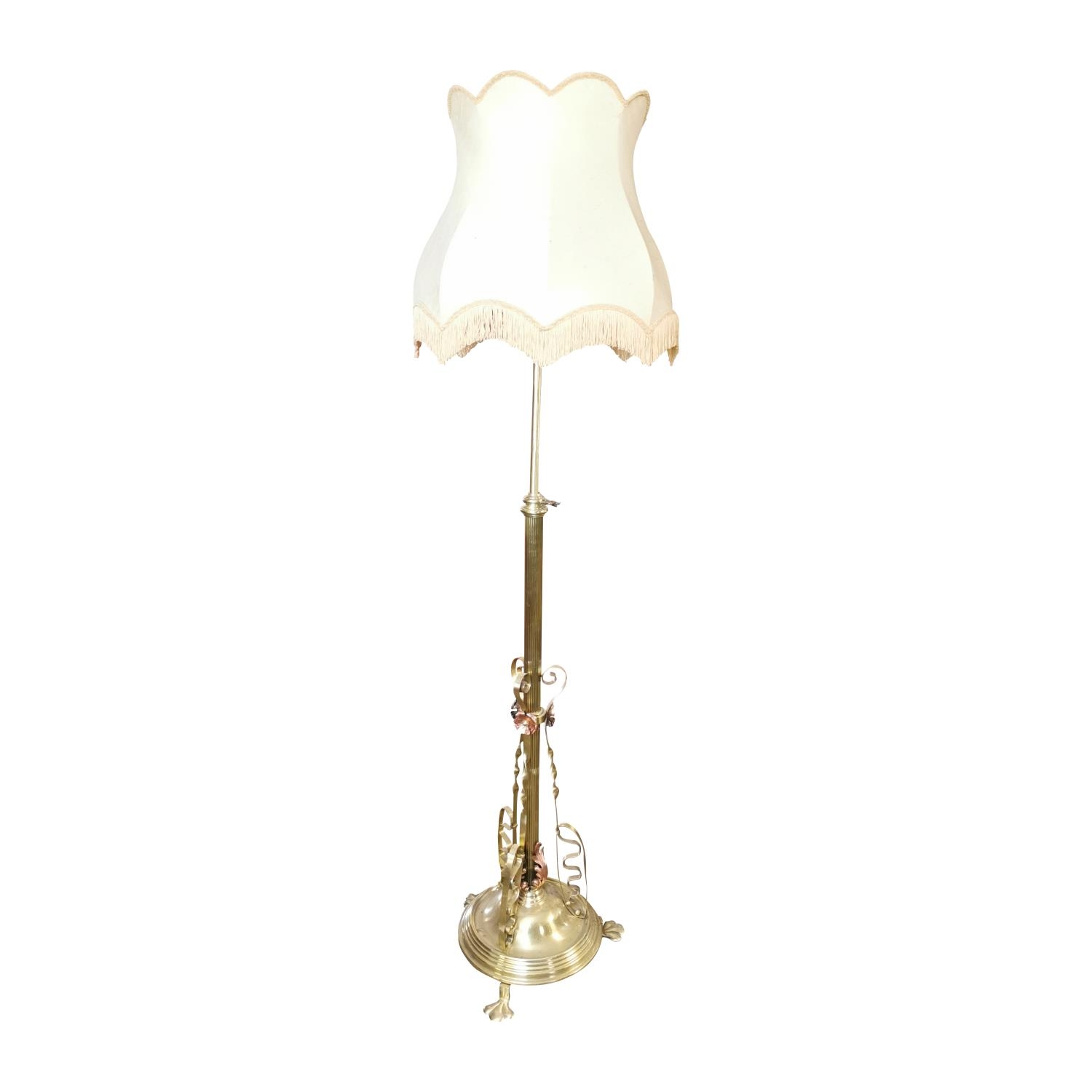 Art Nouveau brass and copper standard lamp with shade {185 cm H x 54 cm Dia.}.