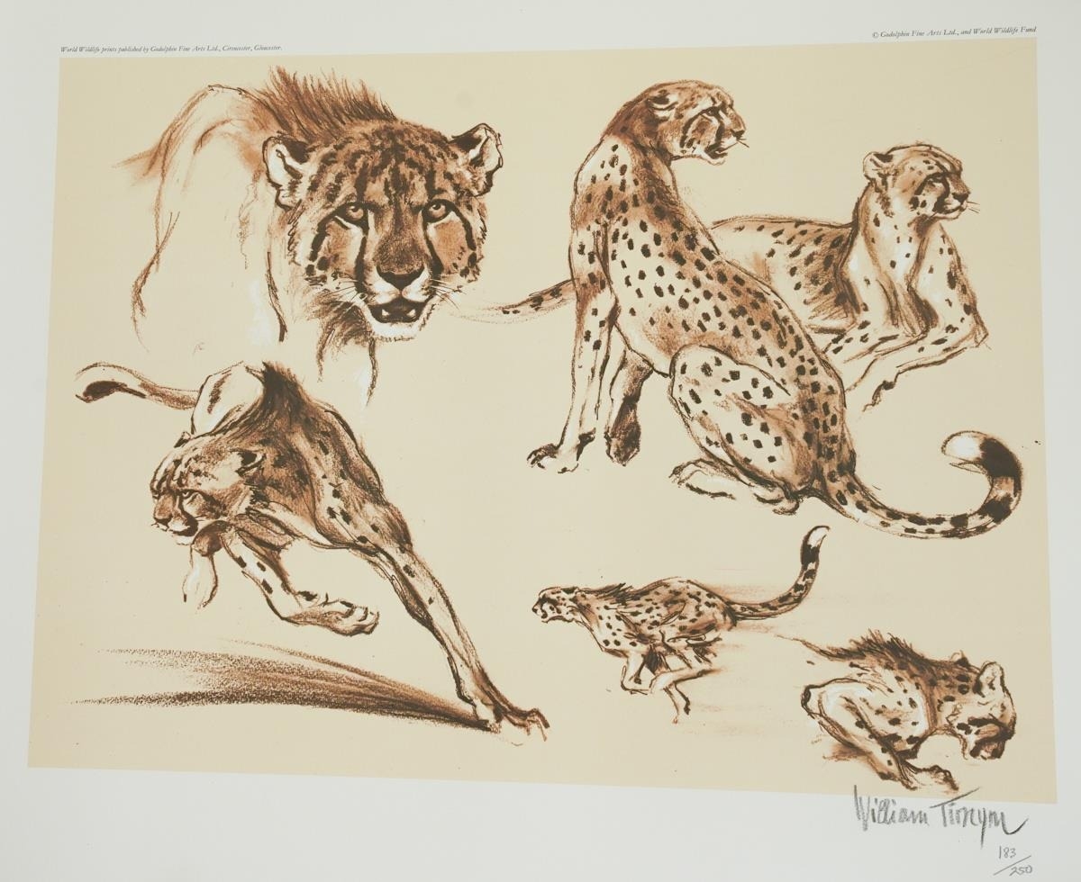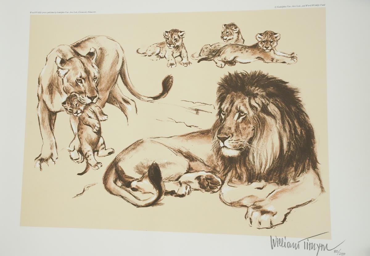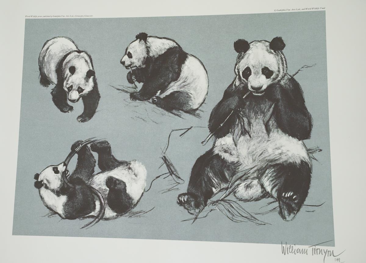 3 William Timyn (Austrian, 1903-1990) Limited edition World Wild LIfe Fund prints published by Godolphin Fine Arts Ltd, signed and numbered in pencil lower right on all of them including Cheetahs 183 from 250, Lions 80 from 250 and Pandas 149 from 250 (3)