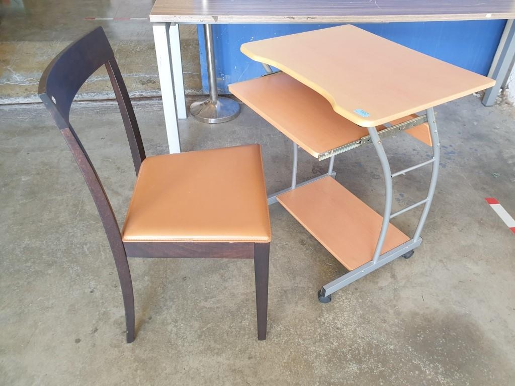 Small Desk with Light Wood Top, Keyboard Shelf (60cm x 45cm x H:74cm) Together with Dinning Chair (2)