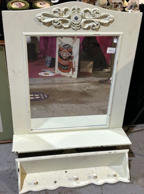 Ornate Cream Carved Detailed Mirror with Shelf + Carved Detailed Shelf with Hooks