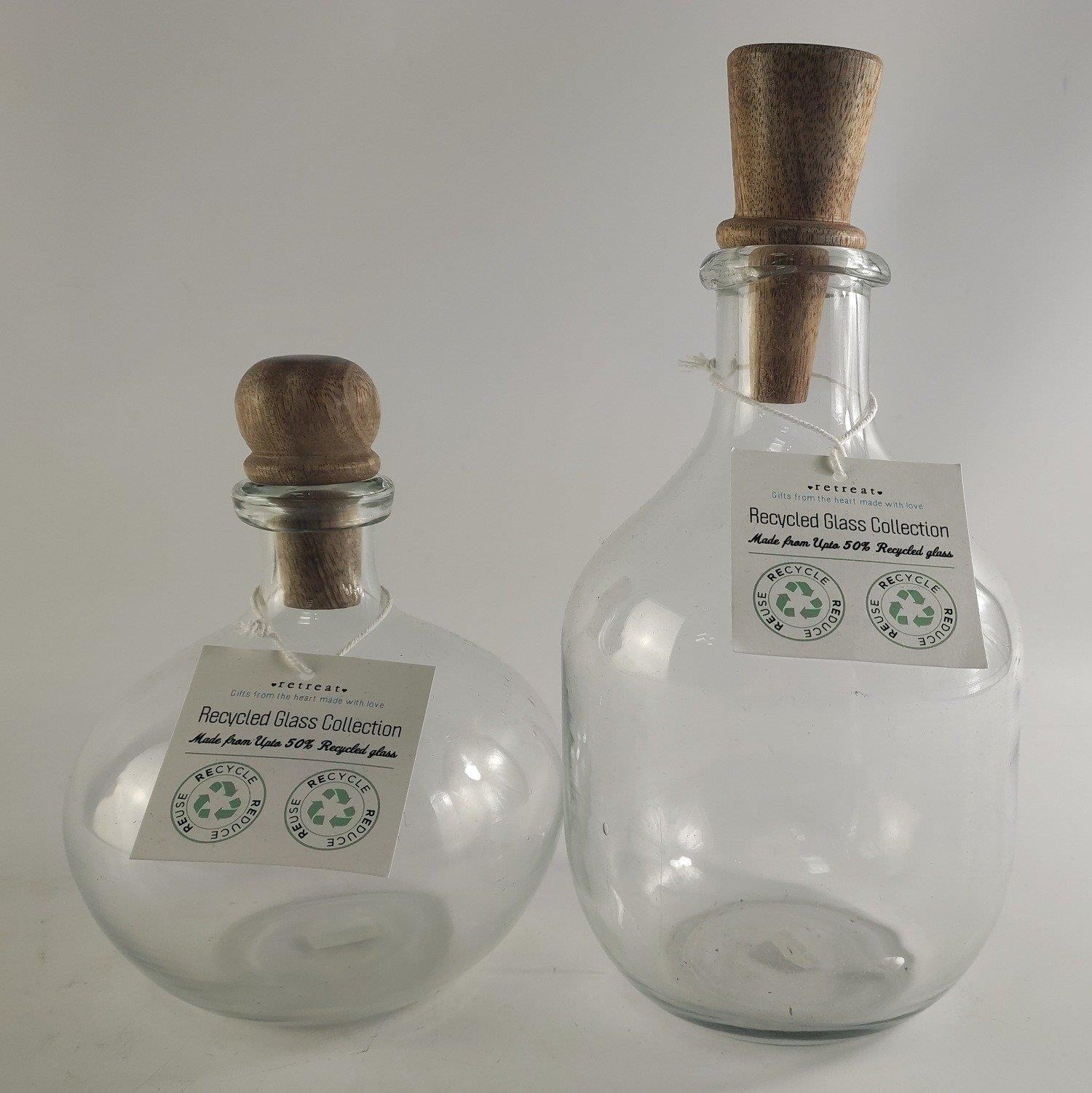 XMAS GIFTING IDEAS! Two recycled glass bottles, larger 25cm tall. Ideal for bath salts.