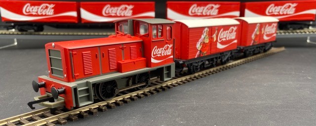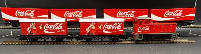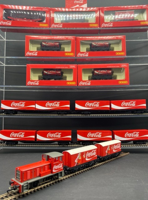 Hornby OO Coca-Cola Train with Diesel Loco (Tested Runner) with 7 Boxed Rolling stock and 6 further Coca Cola branded Container freight wagons and Box vans