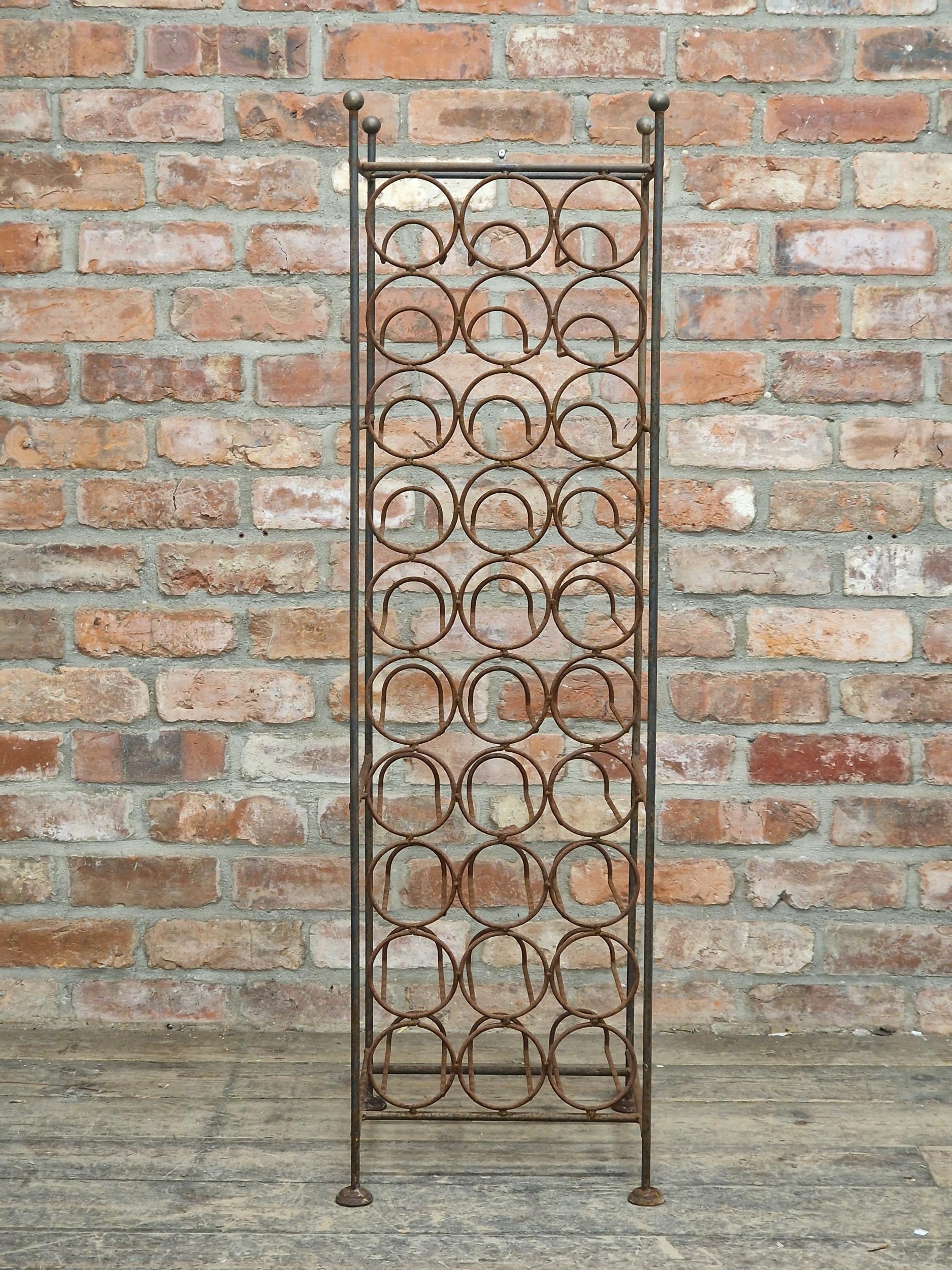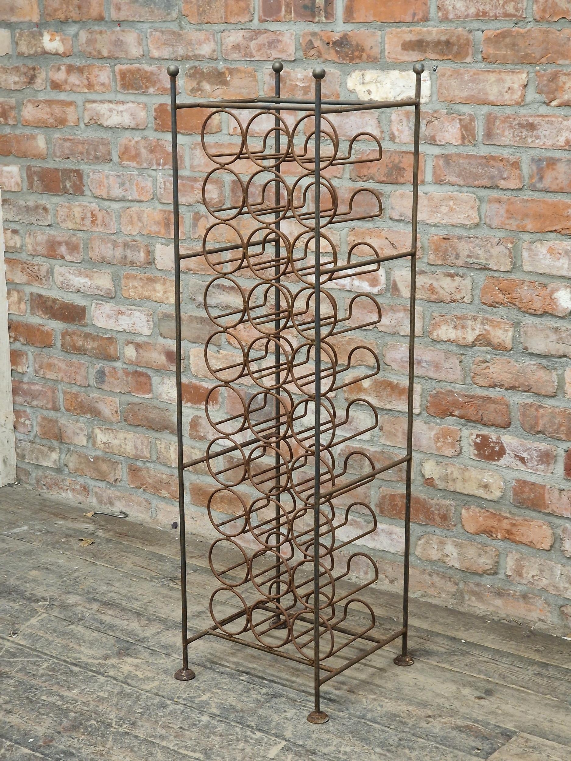 Vintage French iron wine rack, H 127cm x W 36cm x D 36cm