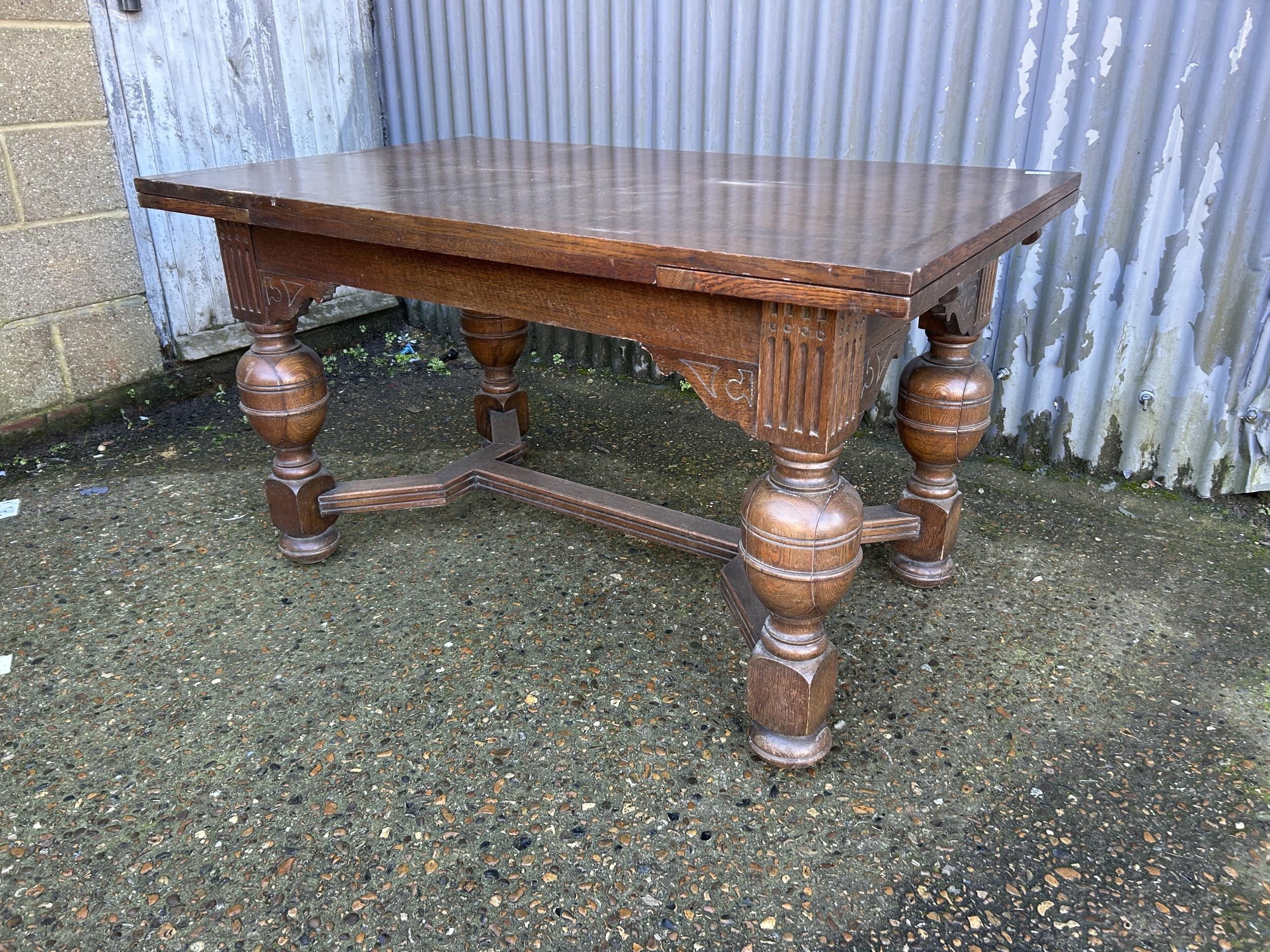 A large oak drawer leaf table 137x84x74