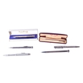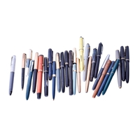 A collection of vintage white metal ballpoint pens and a propelling pencil. Including a Yard-o-Led rolled gold example in the original box, a German example with a textured exterior, etc.