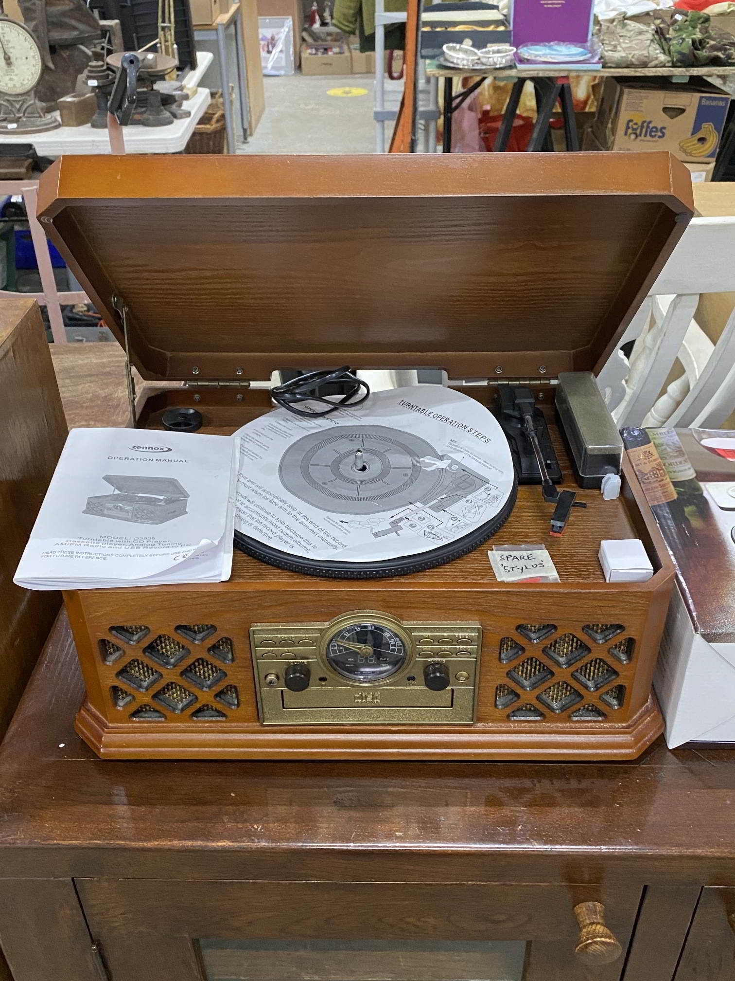 Zennox D3939 turntable with CD player, cassette player, analog tuning, AM/FM radio and USB record to PC