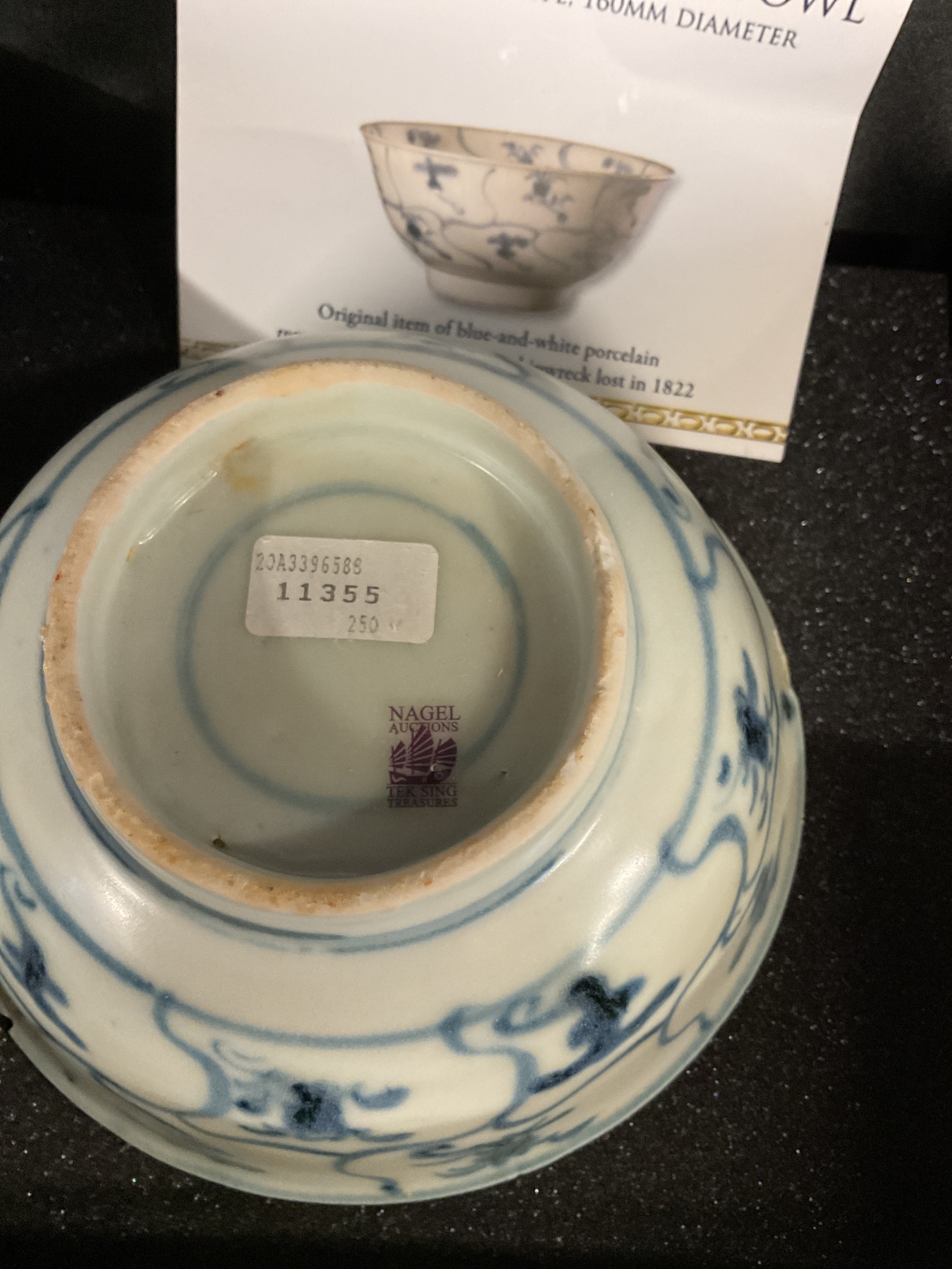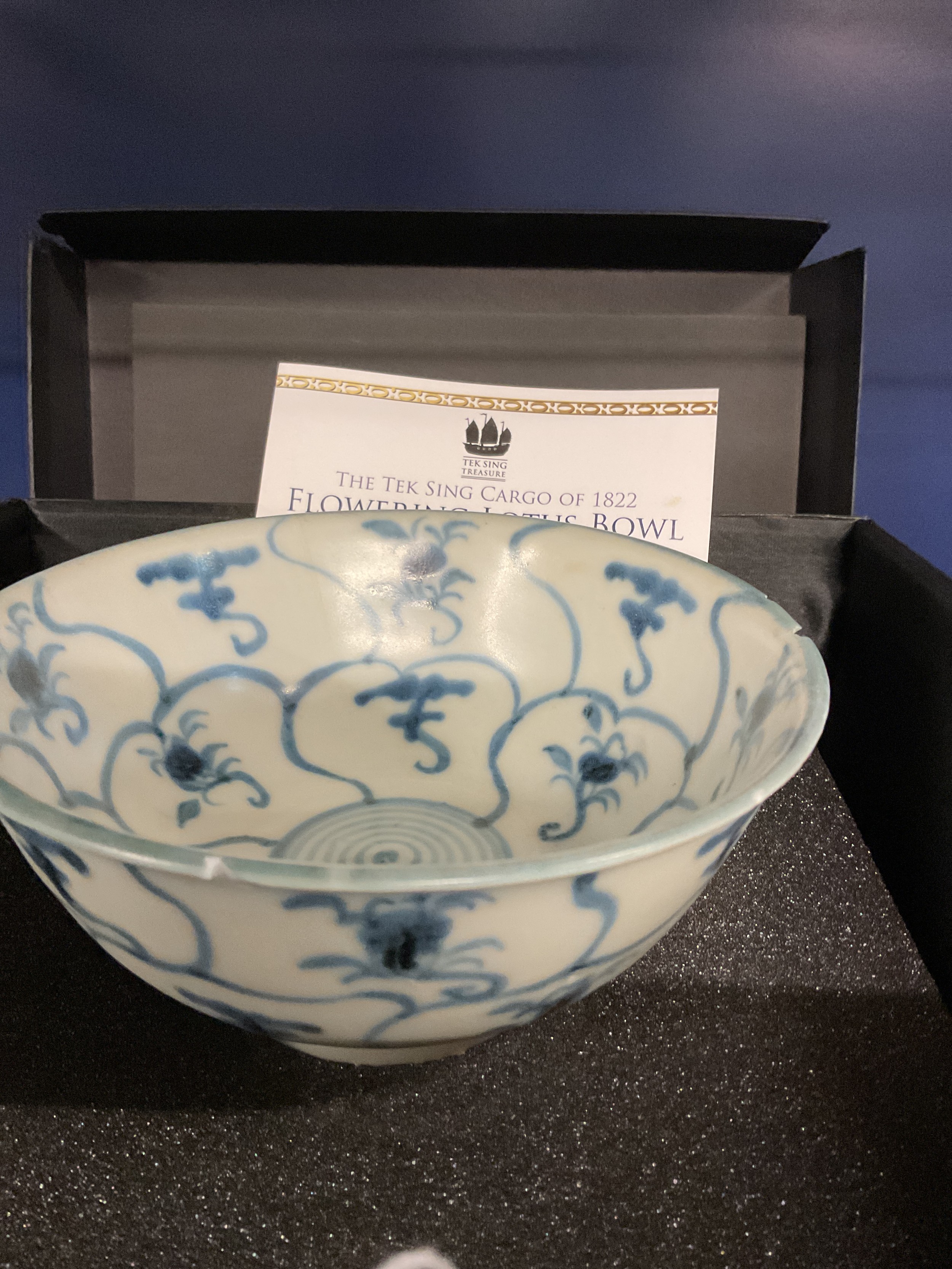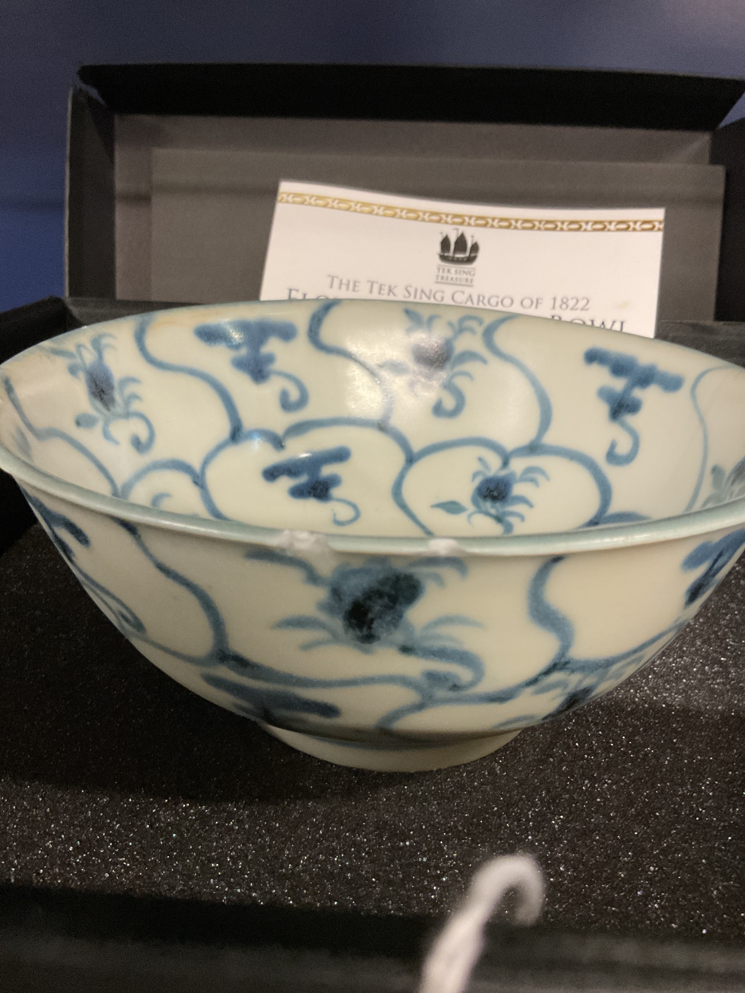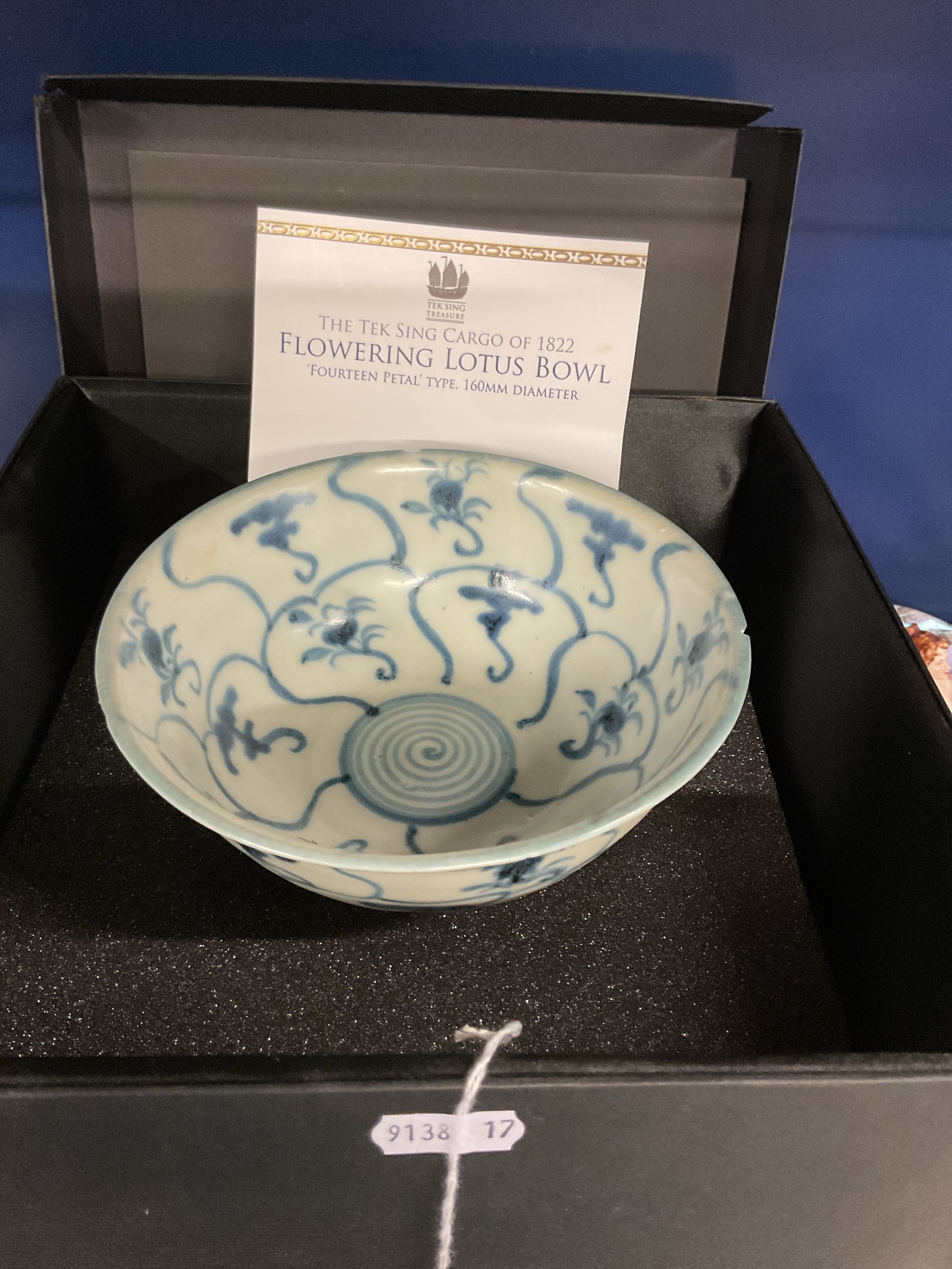 A boxed The Tek Sing Cargo of 1822 fourteen petal lotus bowl A/F