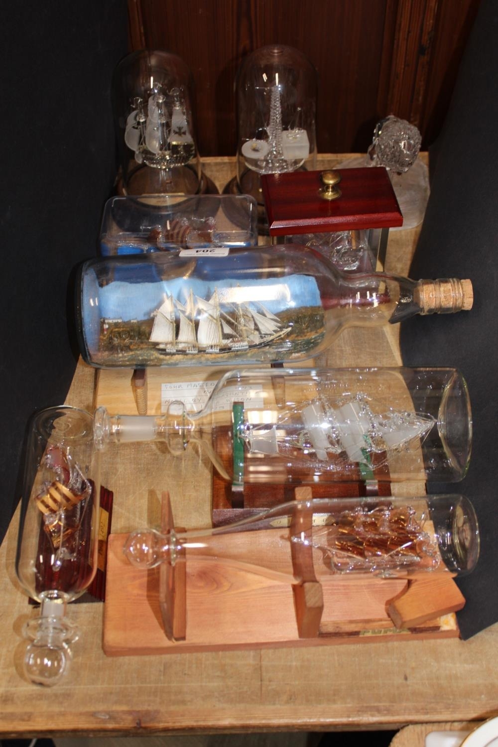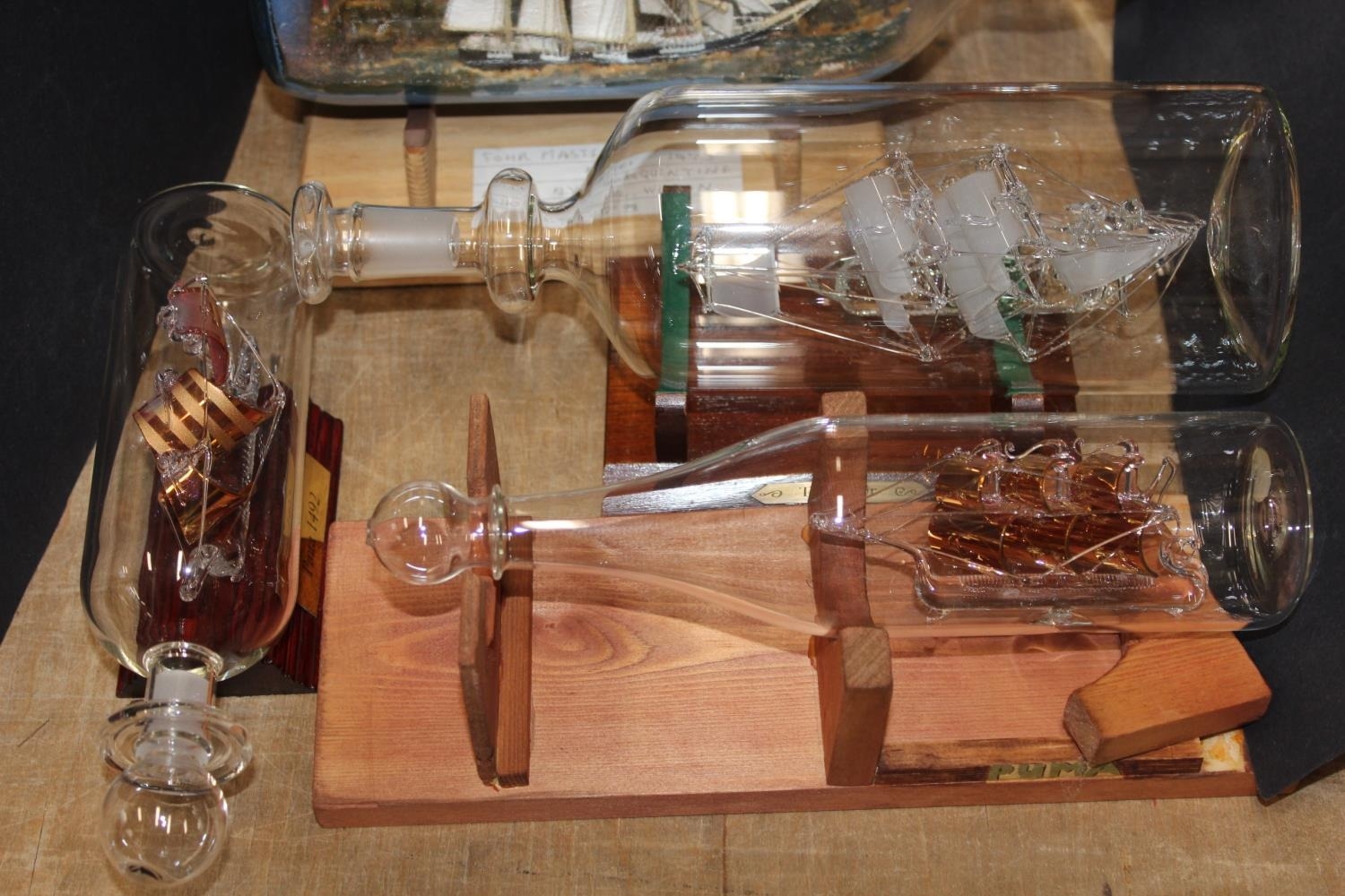 Ships in bottles to include a model of a four-masted Barquentine by A Wilson, 1973, a Santa Maria, etc.