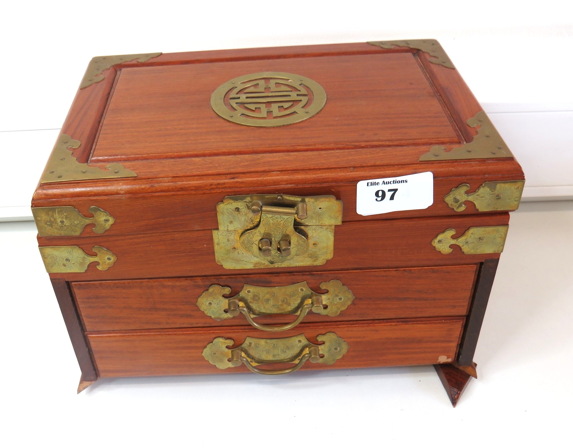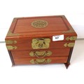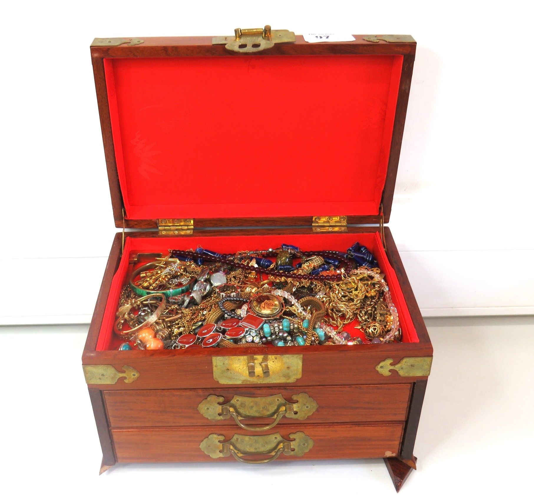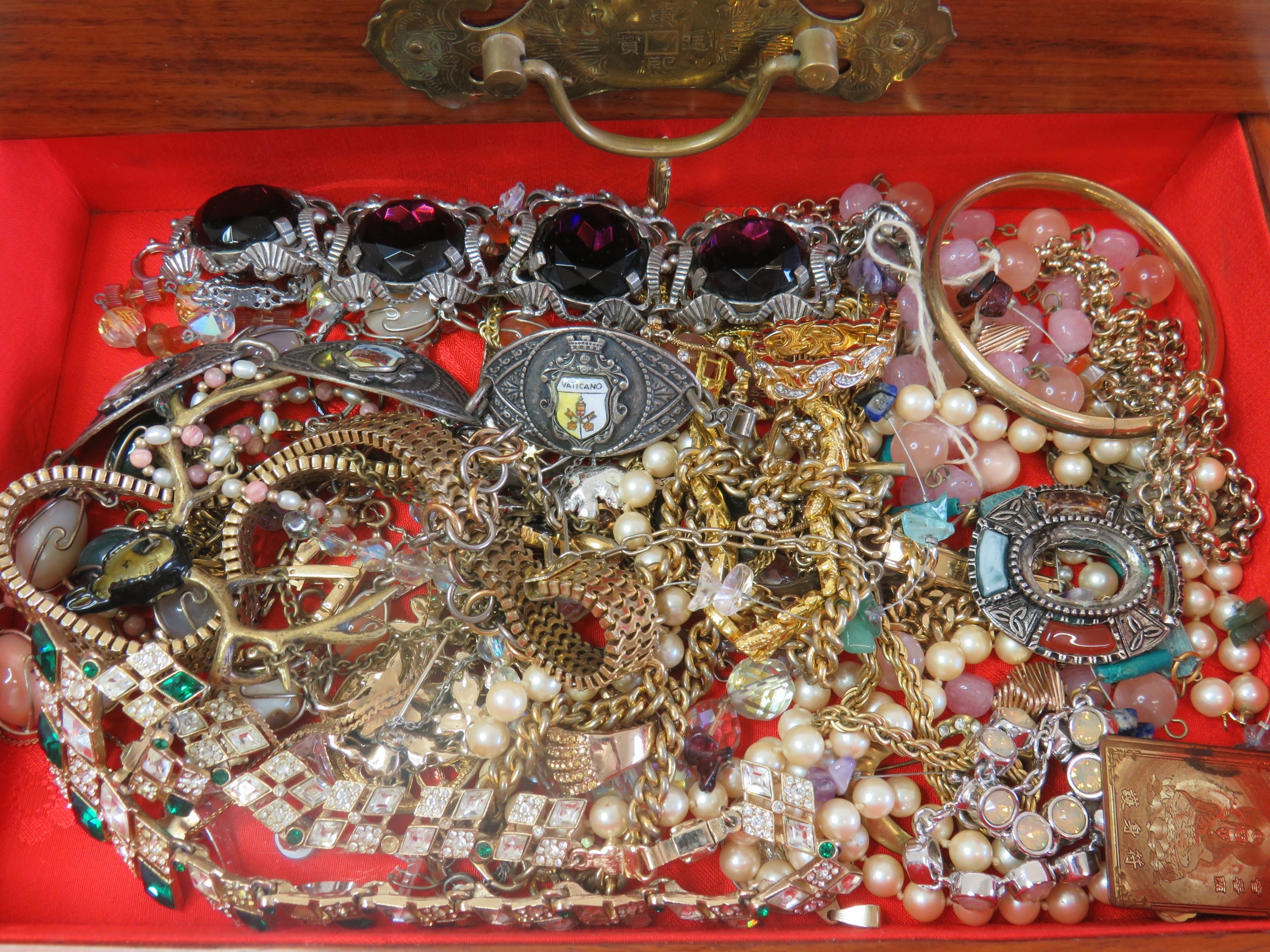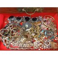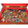 Large wooden jewellery box full of jewellery.
