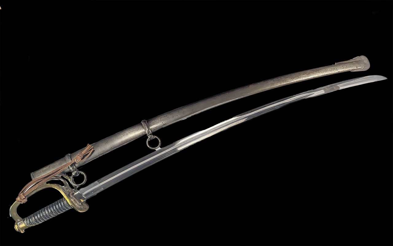 American Civil War, Rare Heavy Cavalry Sword And Scabbard, marked For J Ames mfg co Chicopee, Also Marked U8 G.K.C 1865. Good Condition