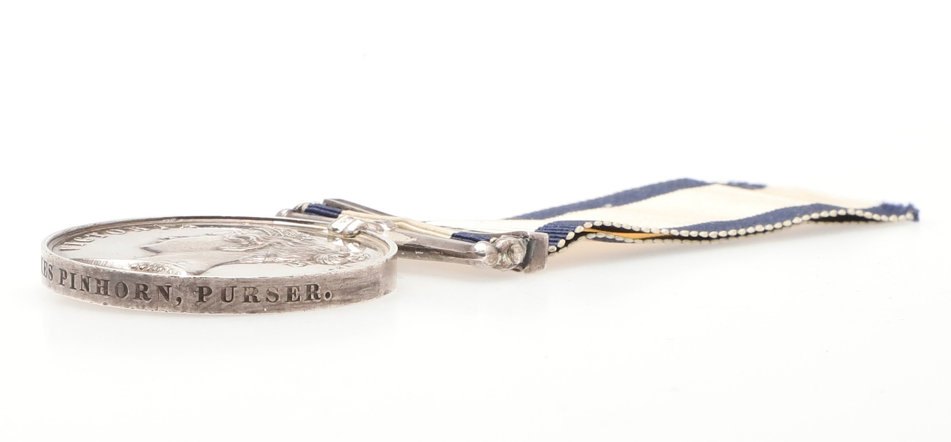 A NAVAL GENERAL SERVICE MEDAL 1793-1840 WITH SYRIA CLASP TO HMS CYCLOPS. A Naval General Service Medal with Syria clasp named to James Pinhorn, Purser. James Pinhorn retired with the rank of Paymaster in Chief following a successful career in the Royal Navy. He initially served as Secretaries Clerk aboard HMS Queen Charlotte. From April 1824 he transferred to HMS Victory. Promotion to Secretary followed and a posting on HMS Britannia and other ships. Paymaster aboard HMS Rover from 18338- and aboard HMS Cyclops at the Syria action for which he received this award. HMS Cyclops was a 1st Class steam frigate launched in 1839. He died on the 31st October 1864 having served as Secretary for a number of Admirals including Sir Thomas Foley, Sir Edward Durnford king and Thomas. With copied research, this medal is recorded as being with Glendinings in November 1927.