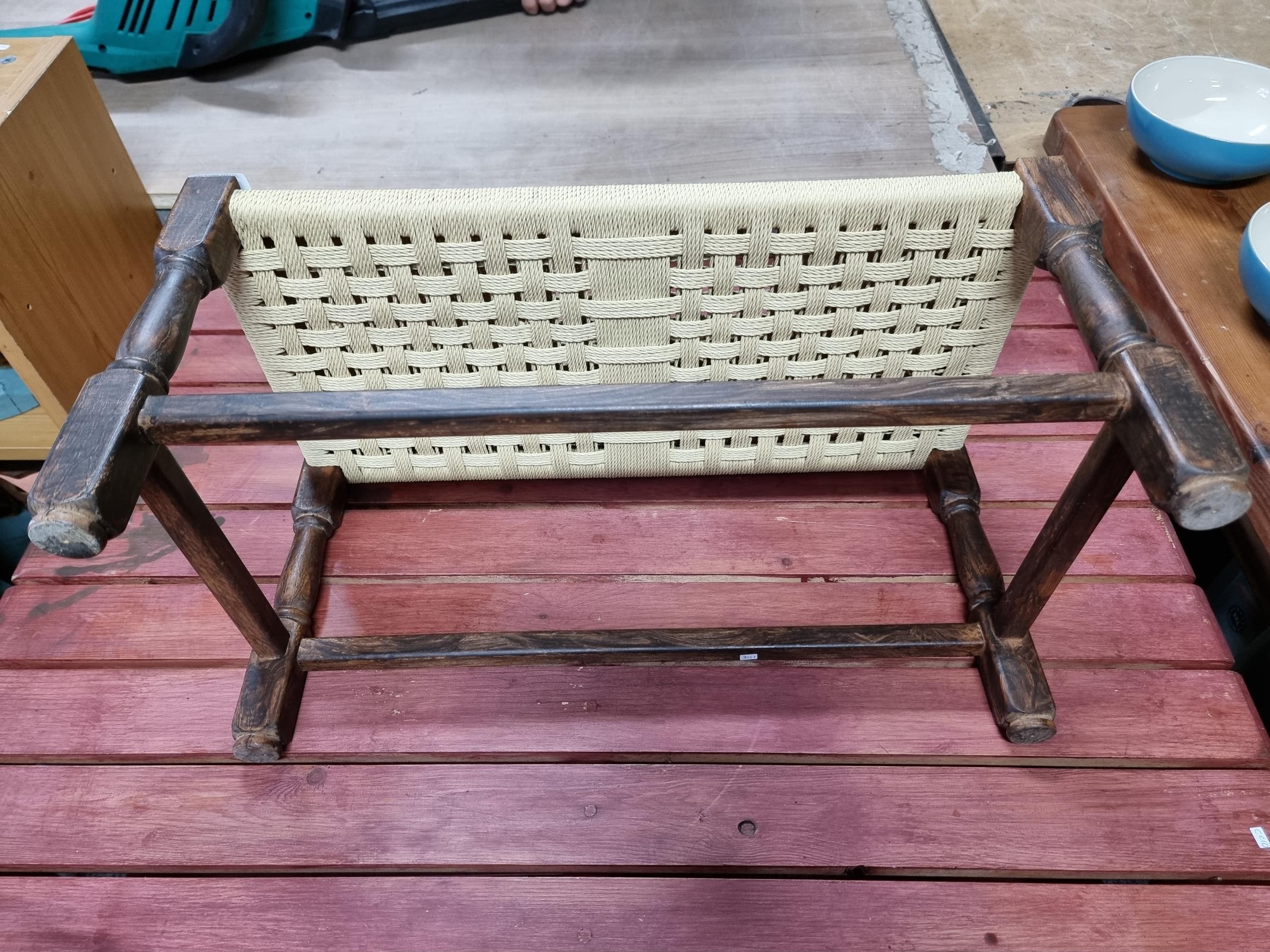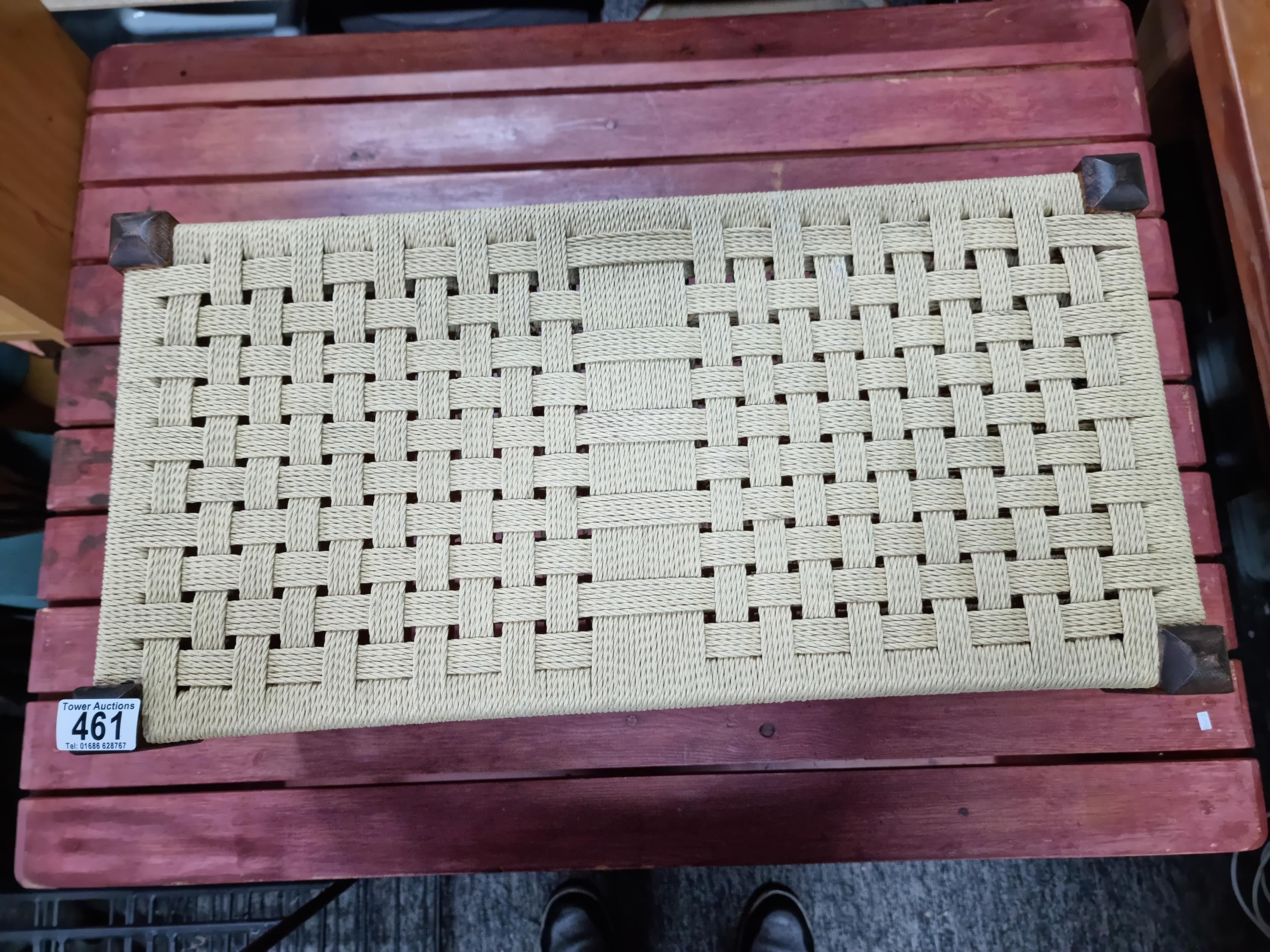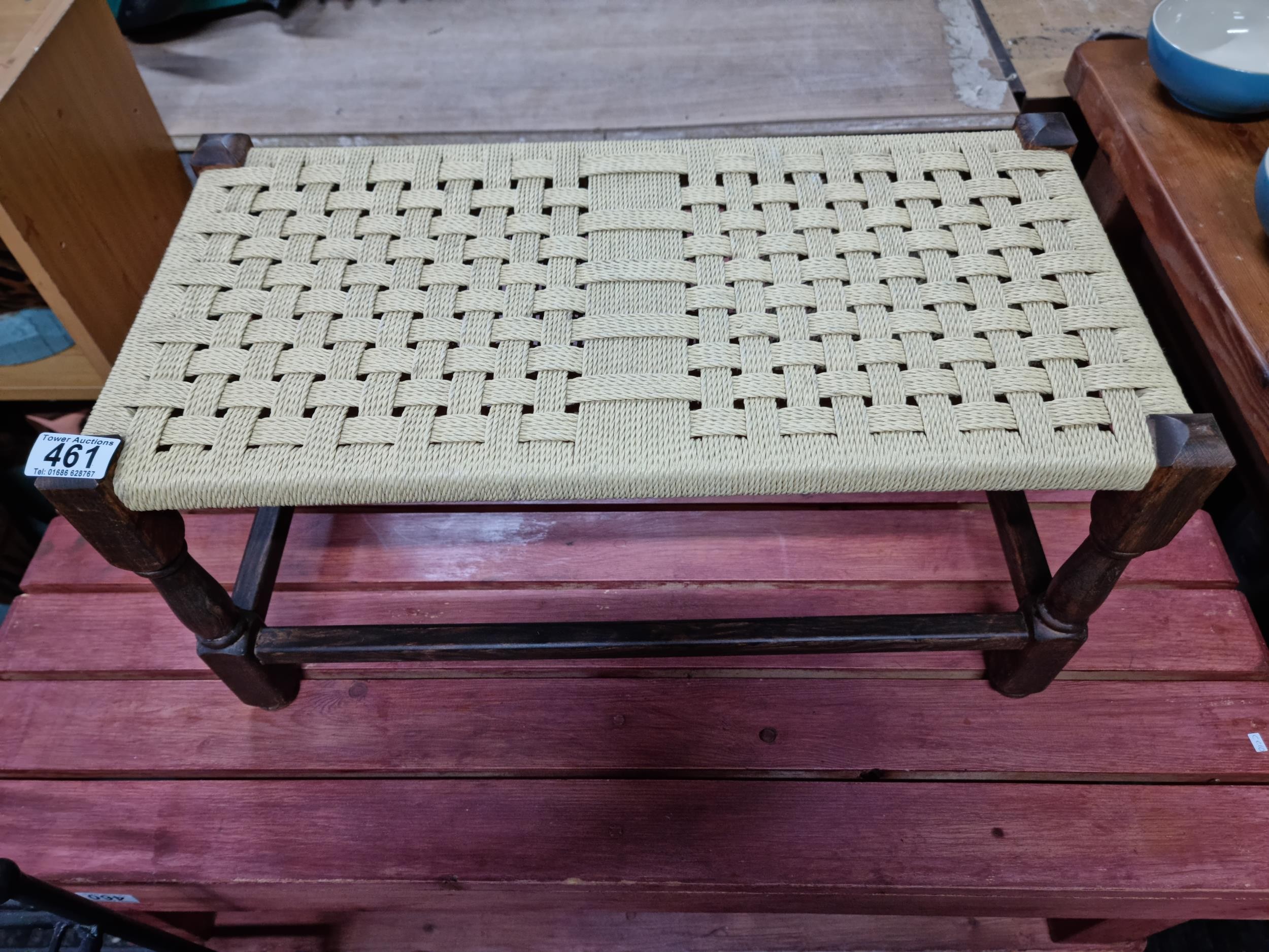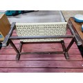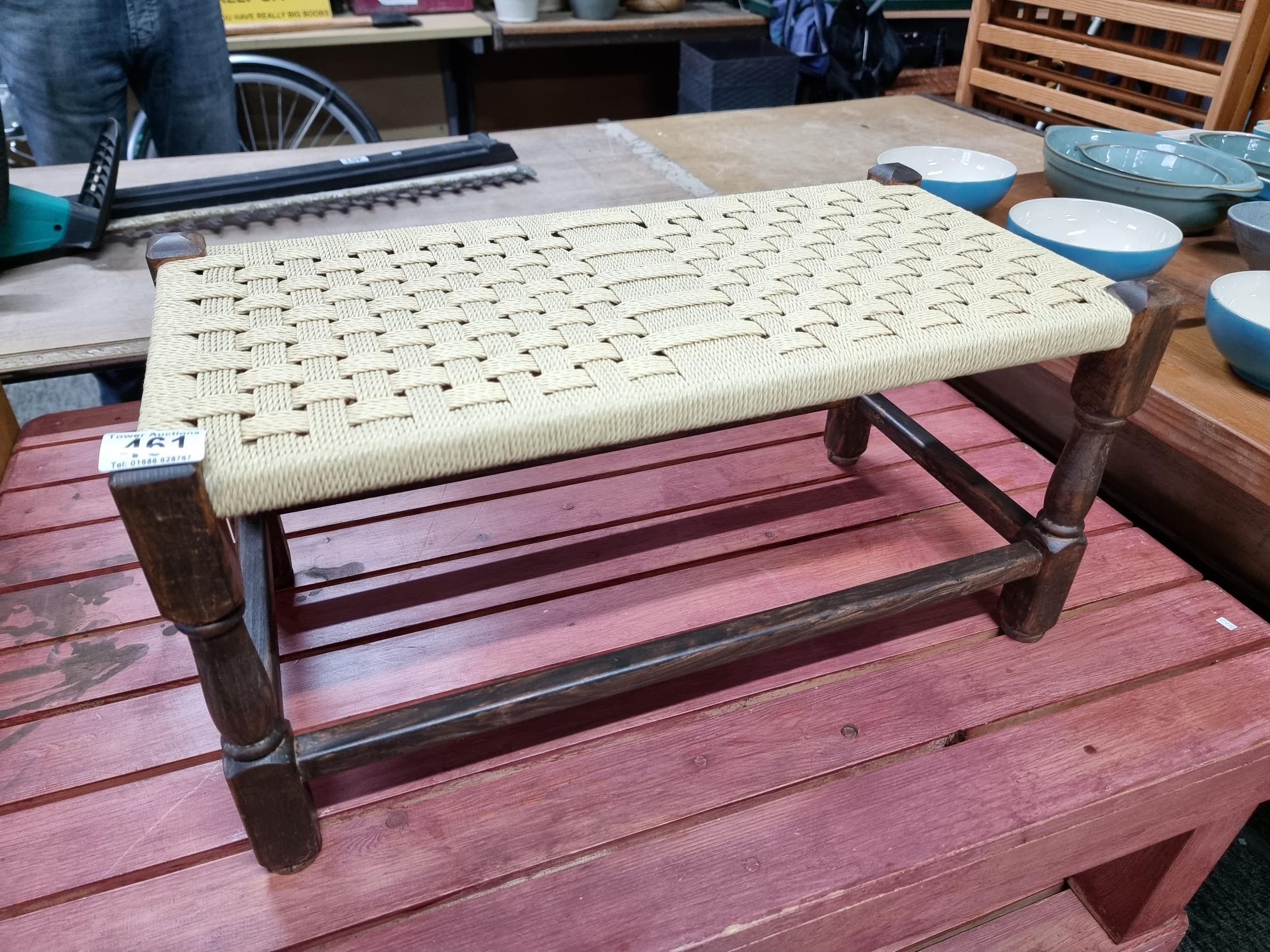 Clean and tidy small wicker topped stool with an oak frame has a height of 29cm length 58cm depth 30cm