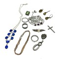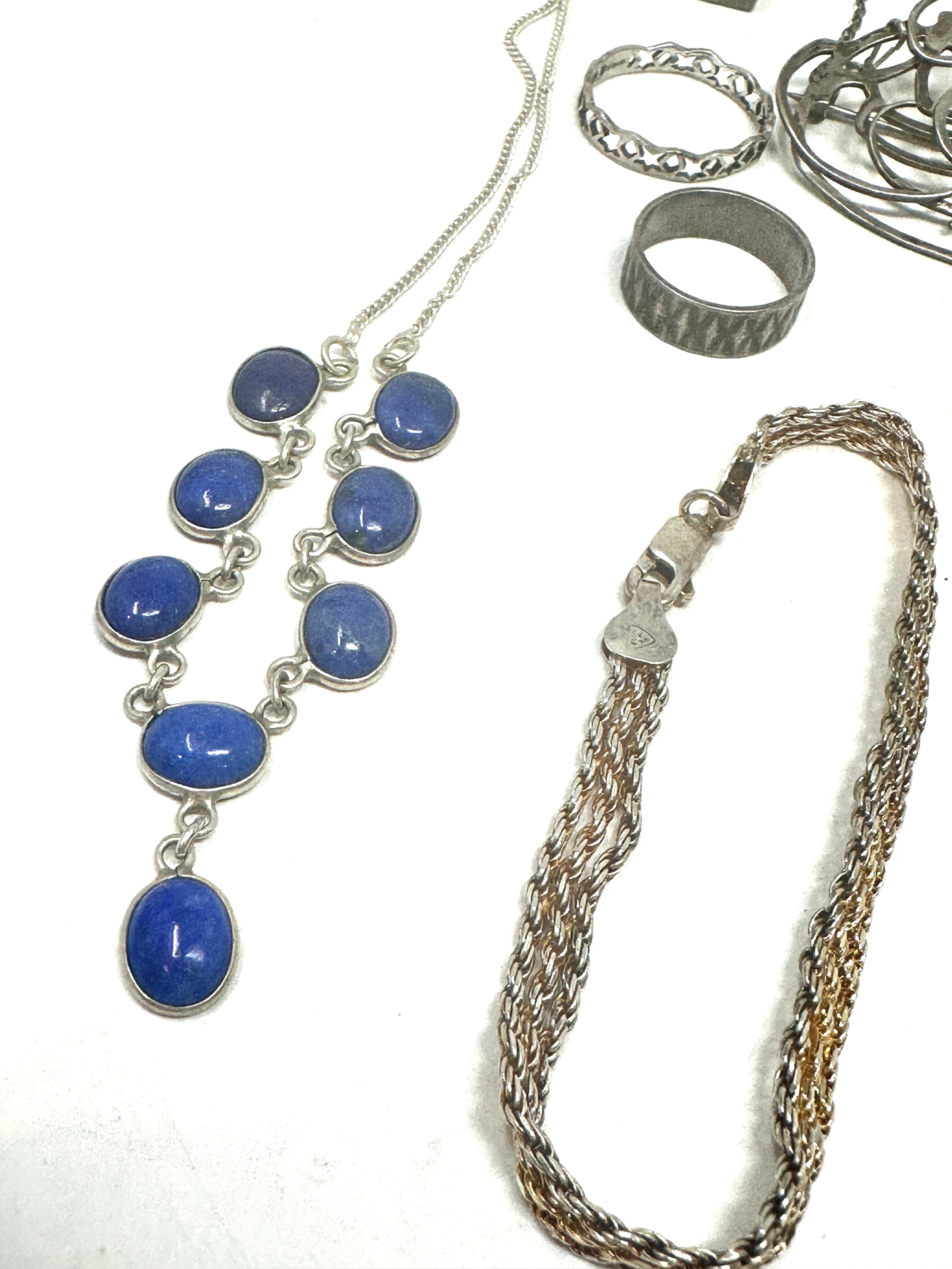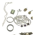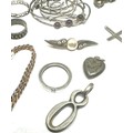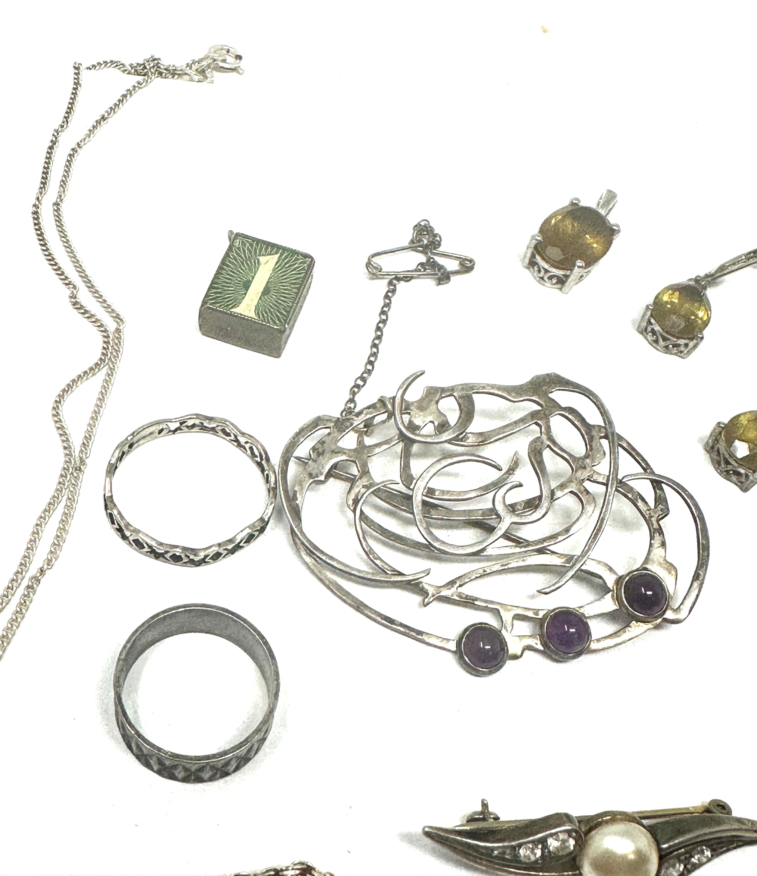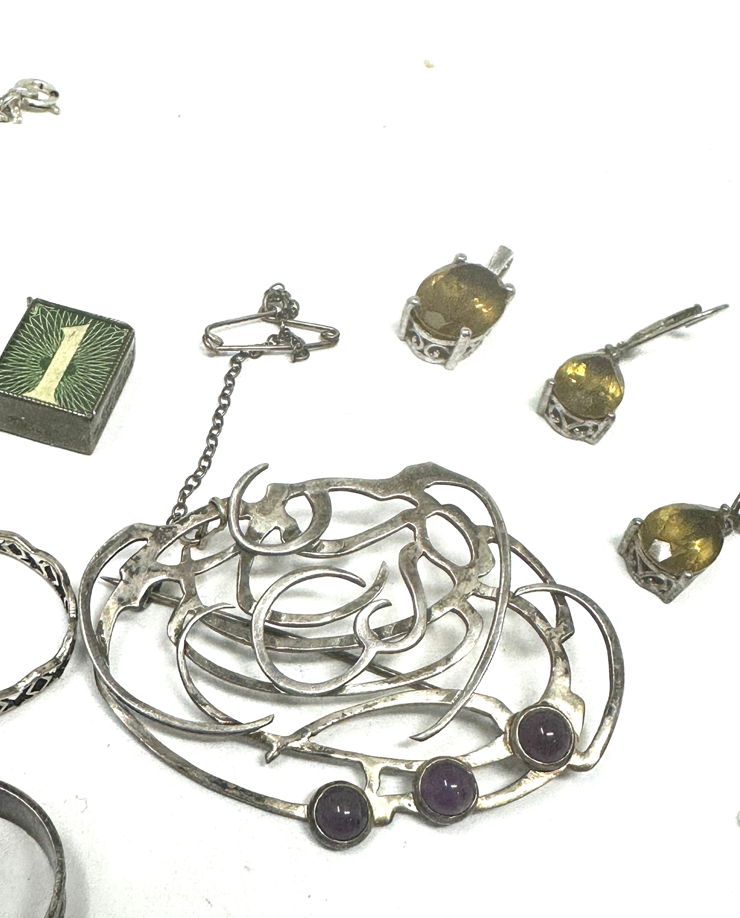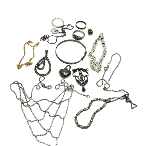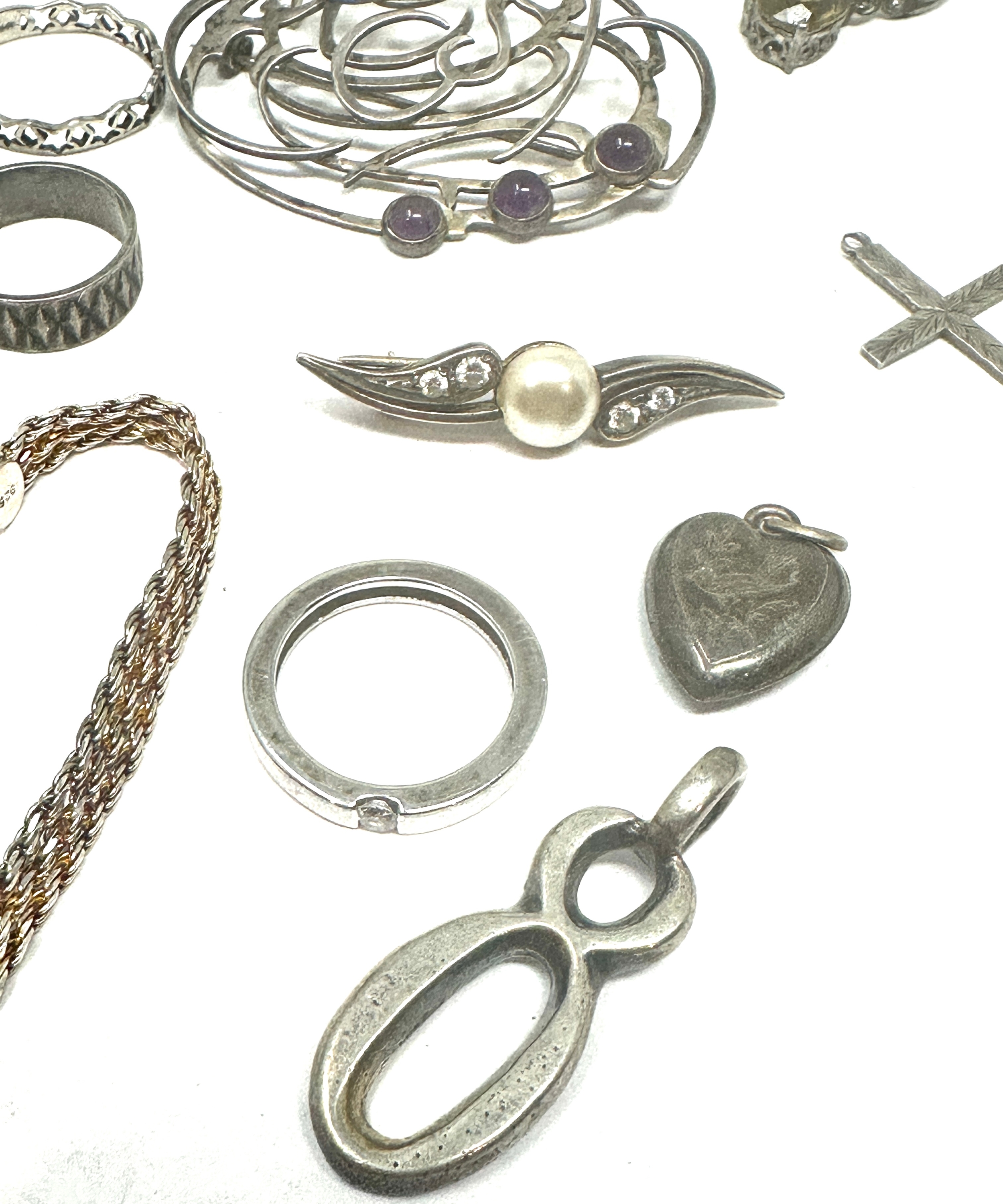 Selection of vintage silver jewellery inc rings pendants brooch necklace etc weight 45g