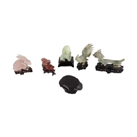 A CHINESE CARVED CELADON HARDSTONE GROUP