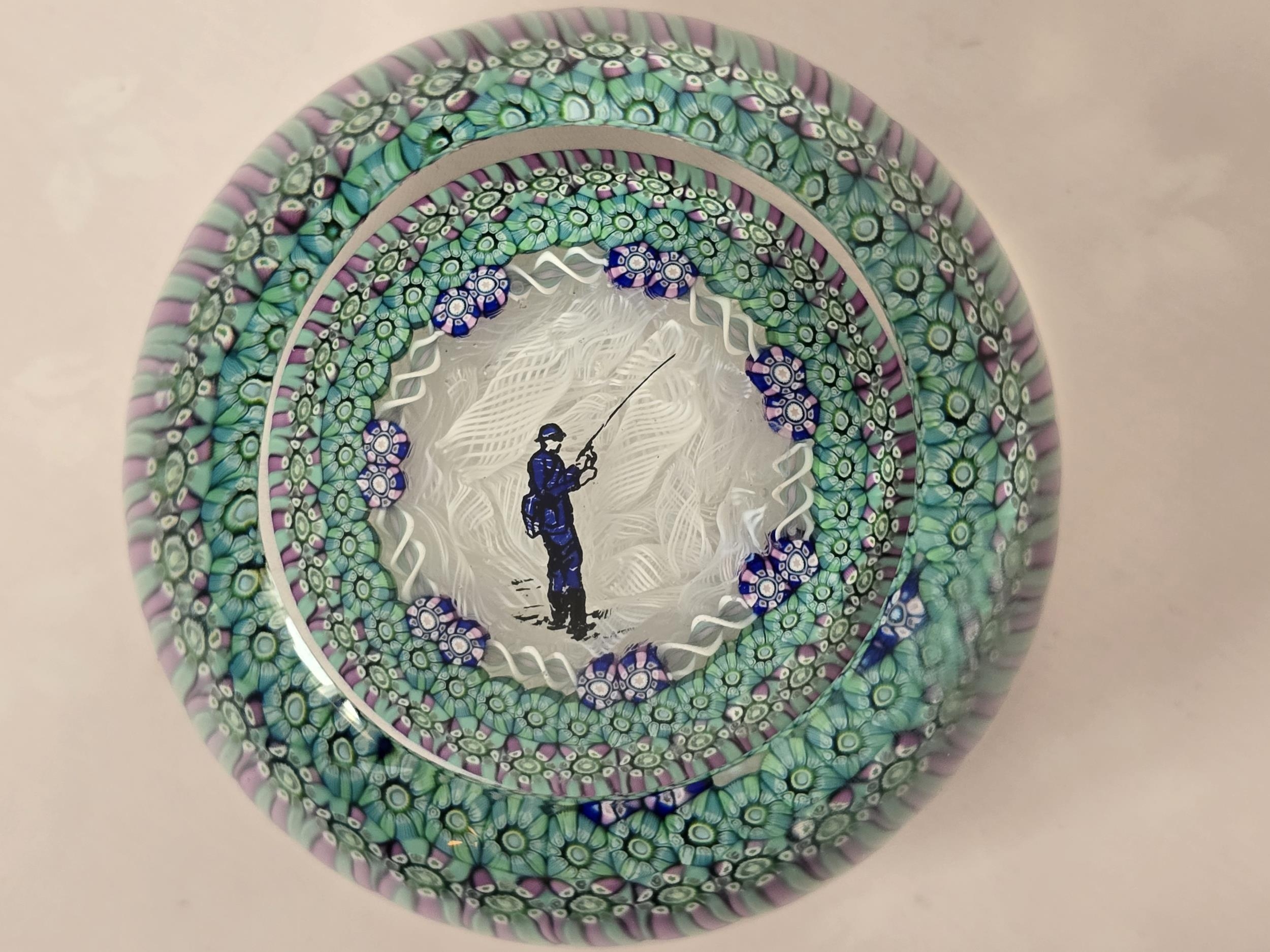 Perthshire paperweight "The Angler" . PP87, First design, made 1986-1988. Limited edition and Excellent condition 80mm diam.