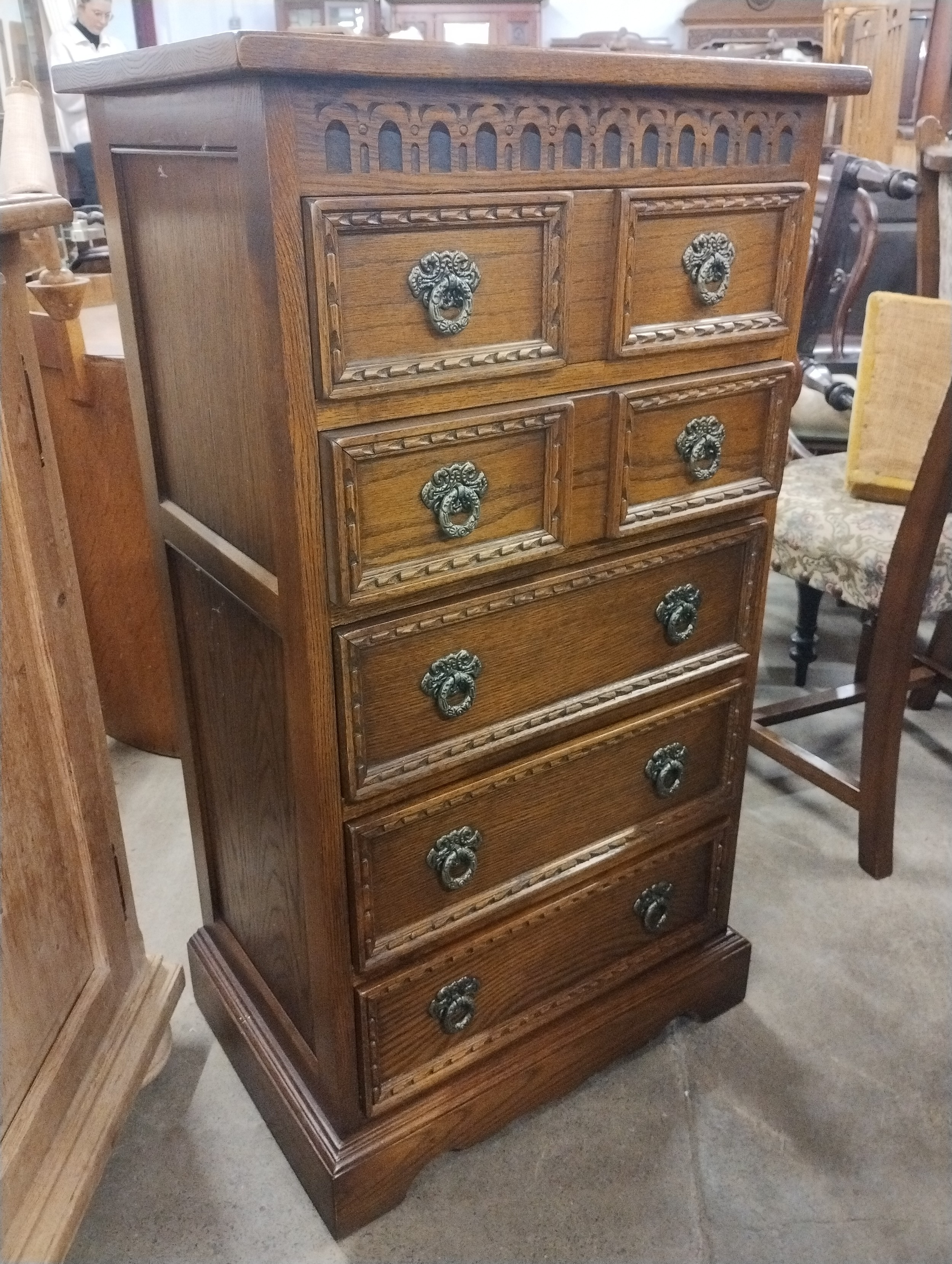 A 17th Century style carved oak chest of drawers