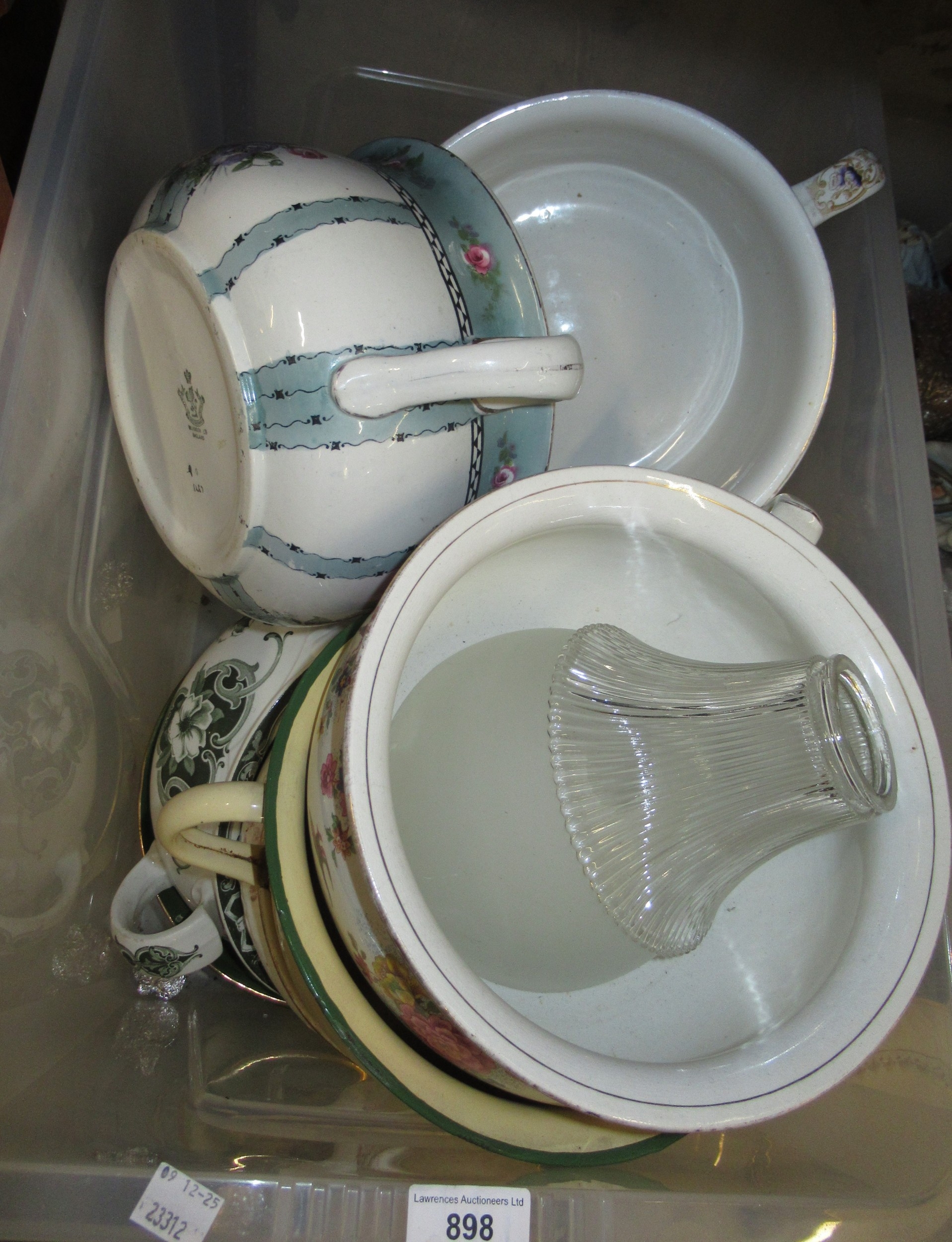 Collection of 19th and 20th Century floral decorated chamber pots, together with two glass lampshades