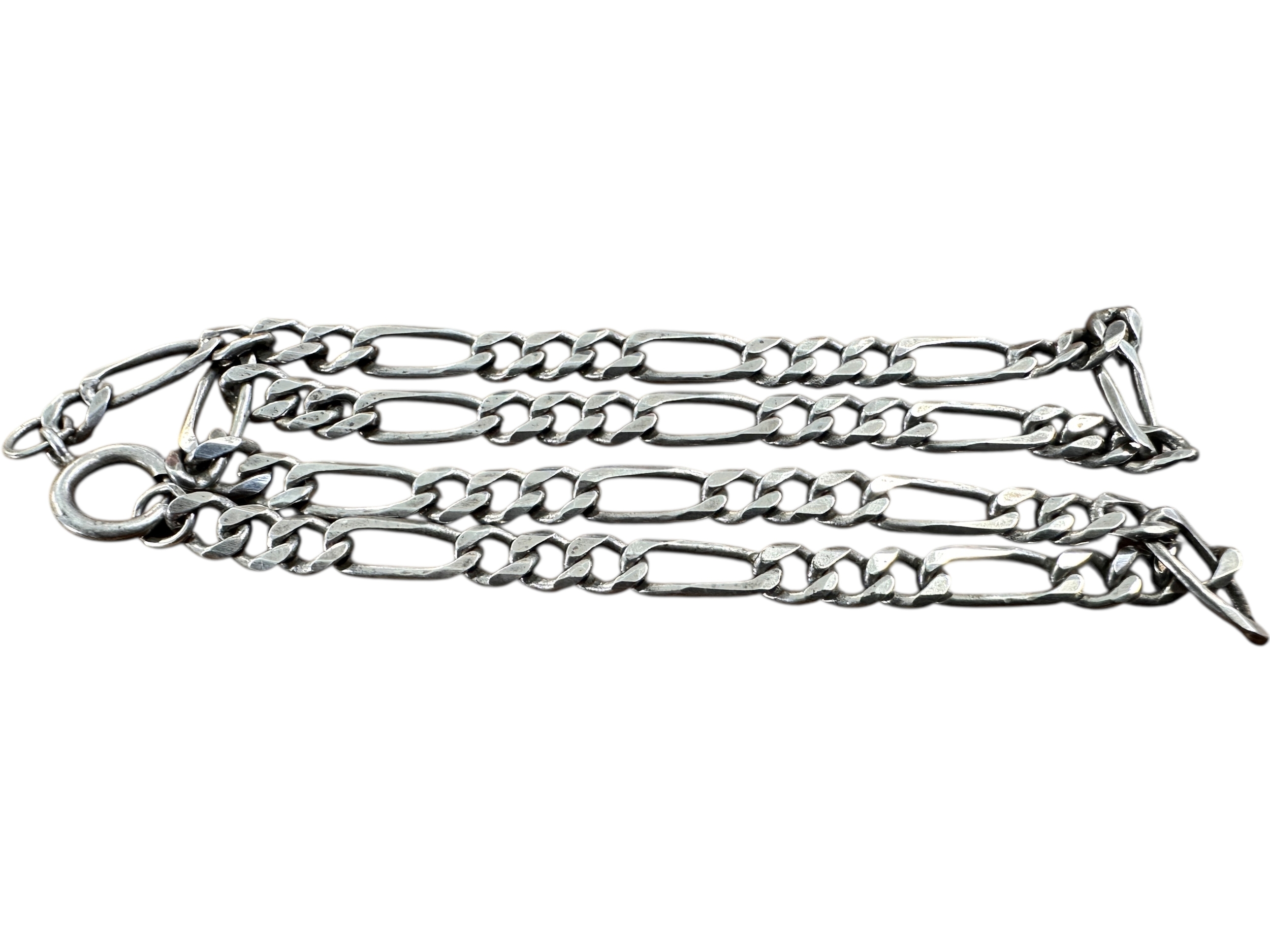 Silver Figaro Link Necklace. Stamped 'Sterling' to Clasp. Length 16". 15.2g