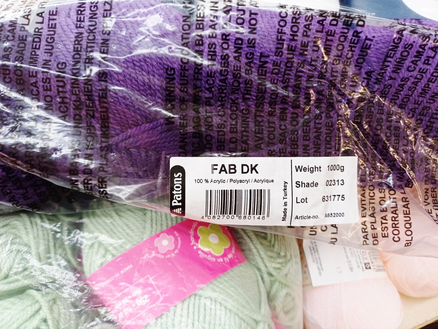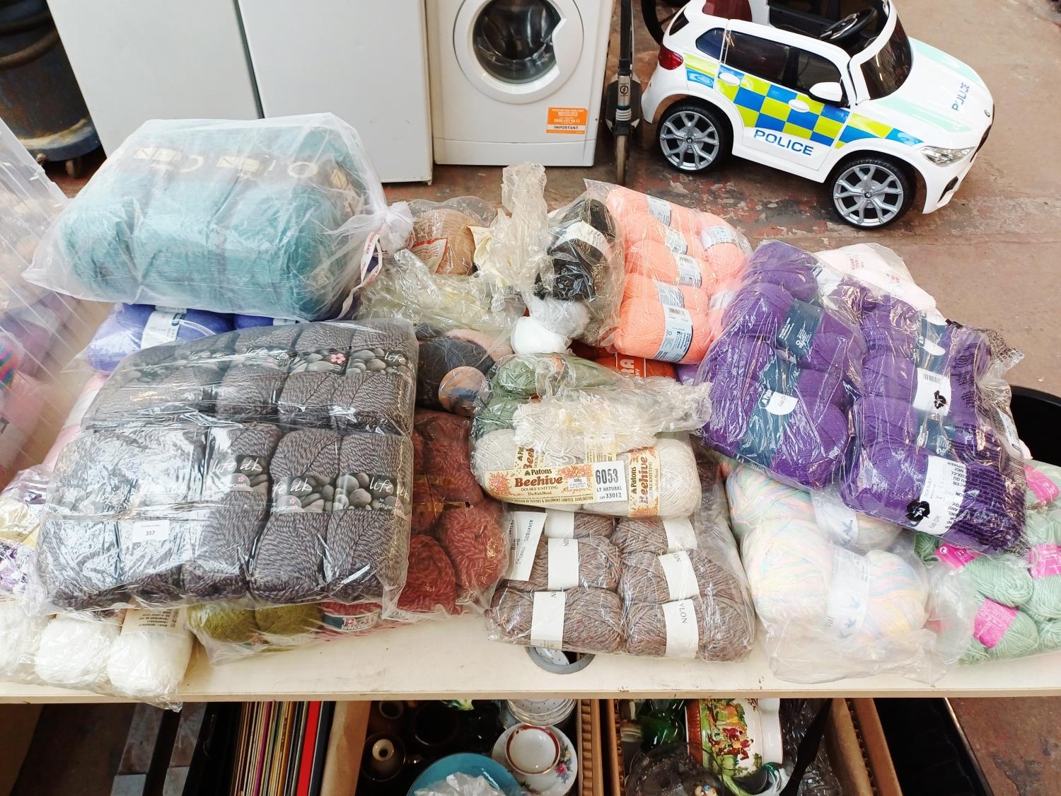 A large collection of knitting yarn to include Stylecraft 25% wool, Patons 100% acrylic, Copley 100% acrylic, Wendy Aran 25% wool etc.