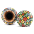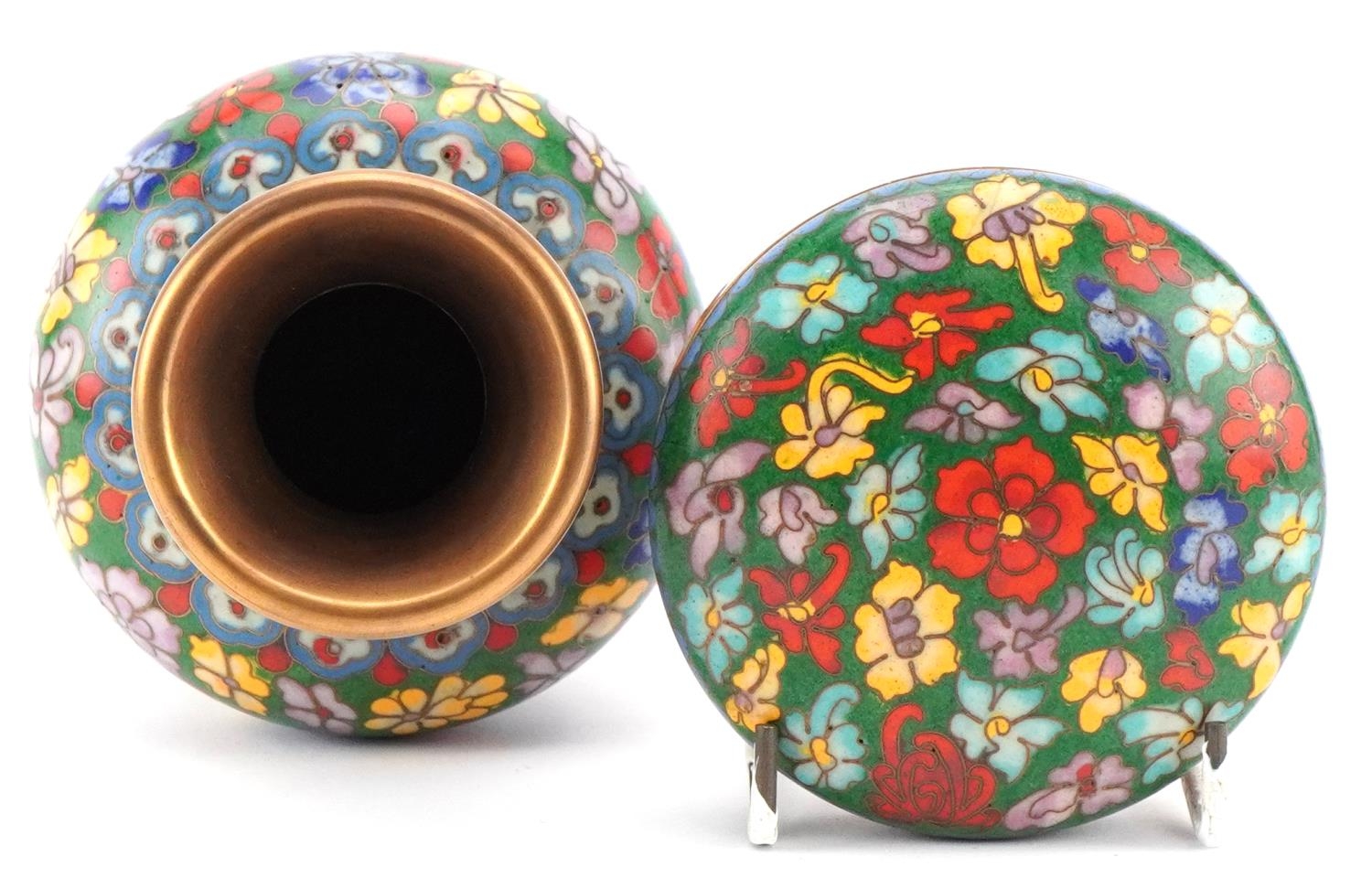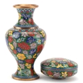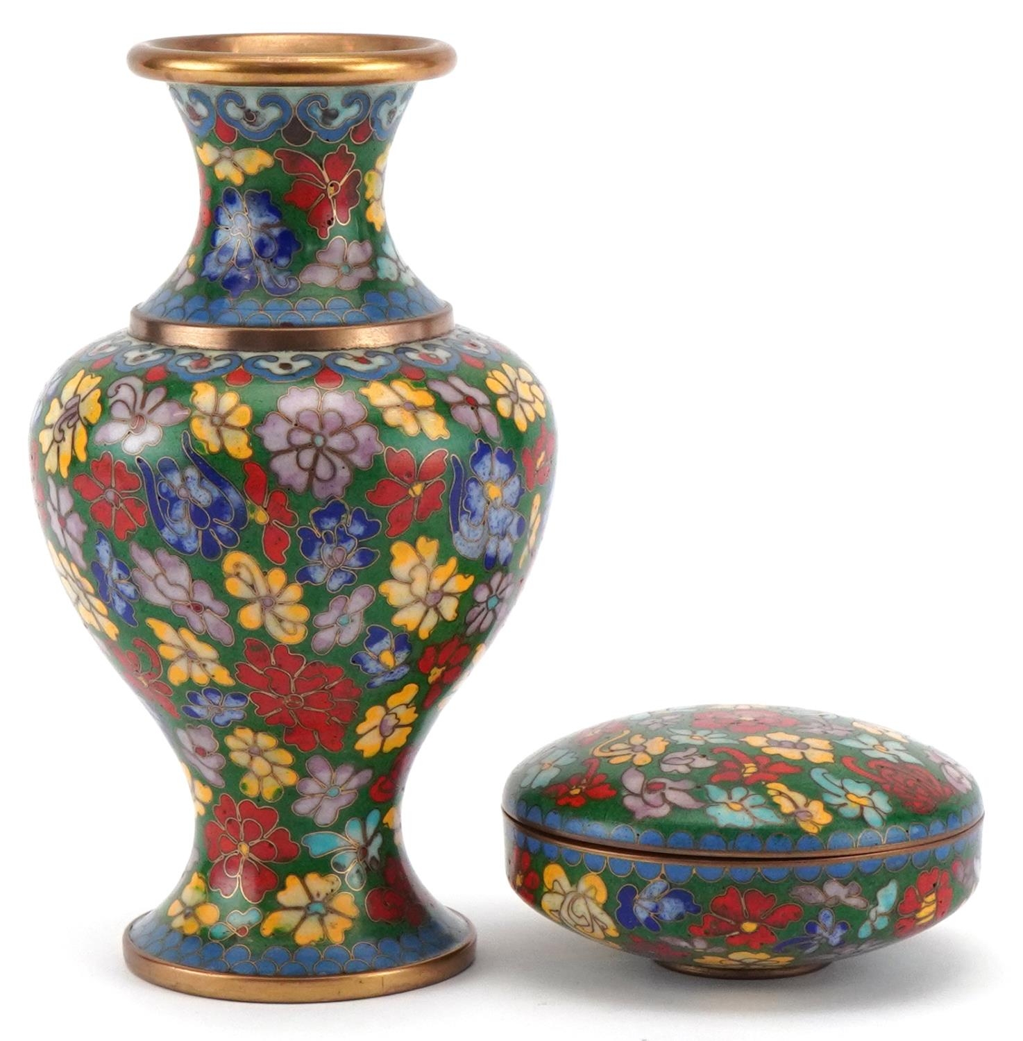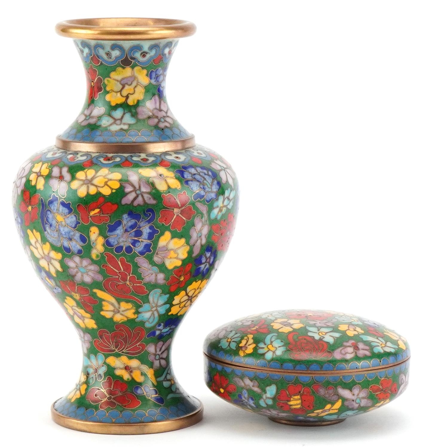 A Chinese cloisonné vase and dish set, 20th century, with floral decoration, 15cm high.