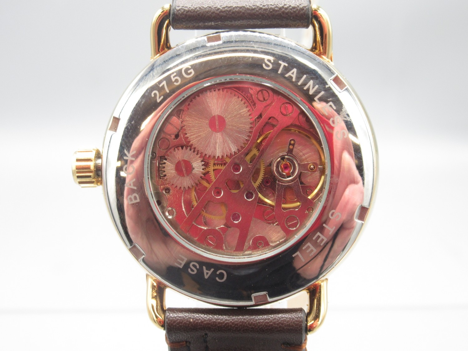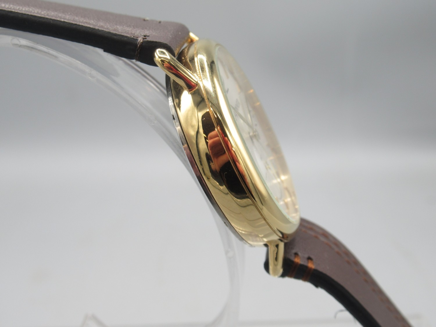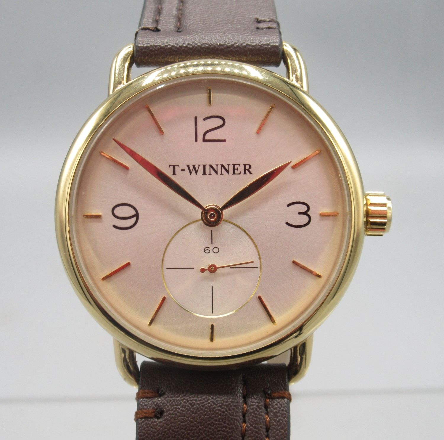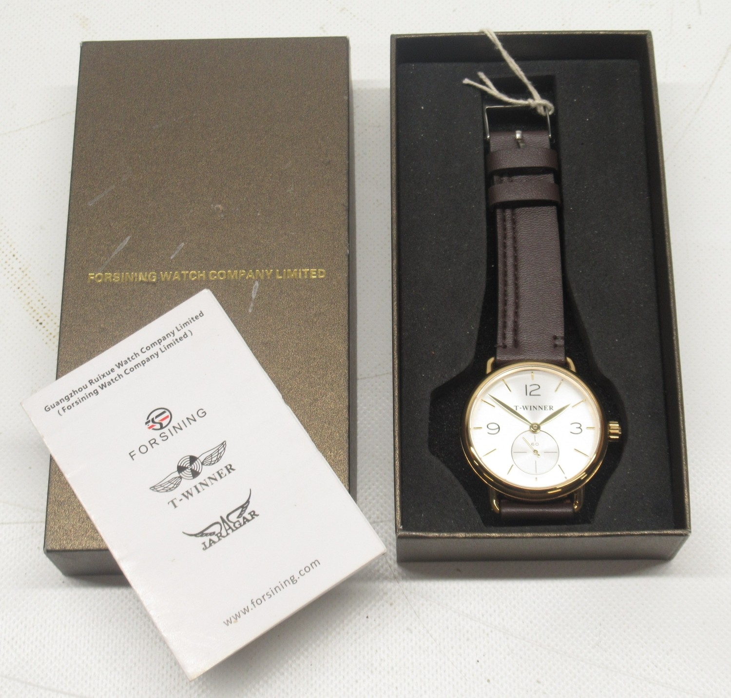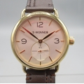 Forsining Watch Company T-Winner gold plated wristwatch on original leather strap, signed silver sunburst dial with large subsidiary seconds, screw down display case back, no. 275G, D41mm