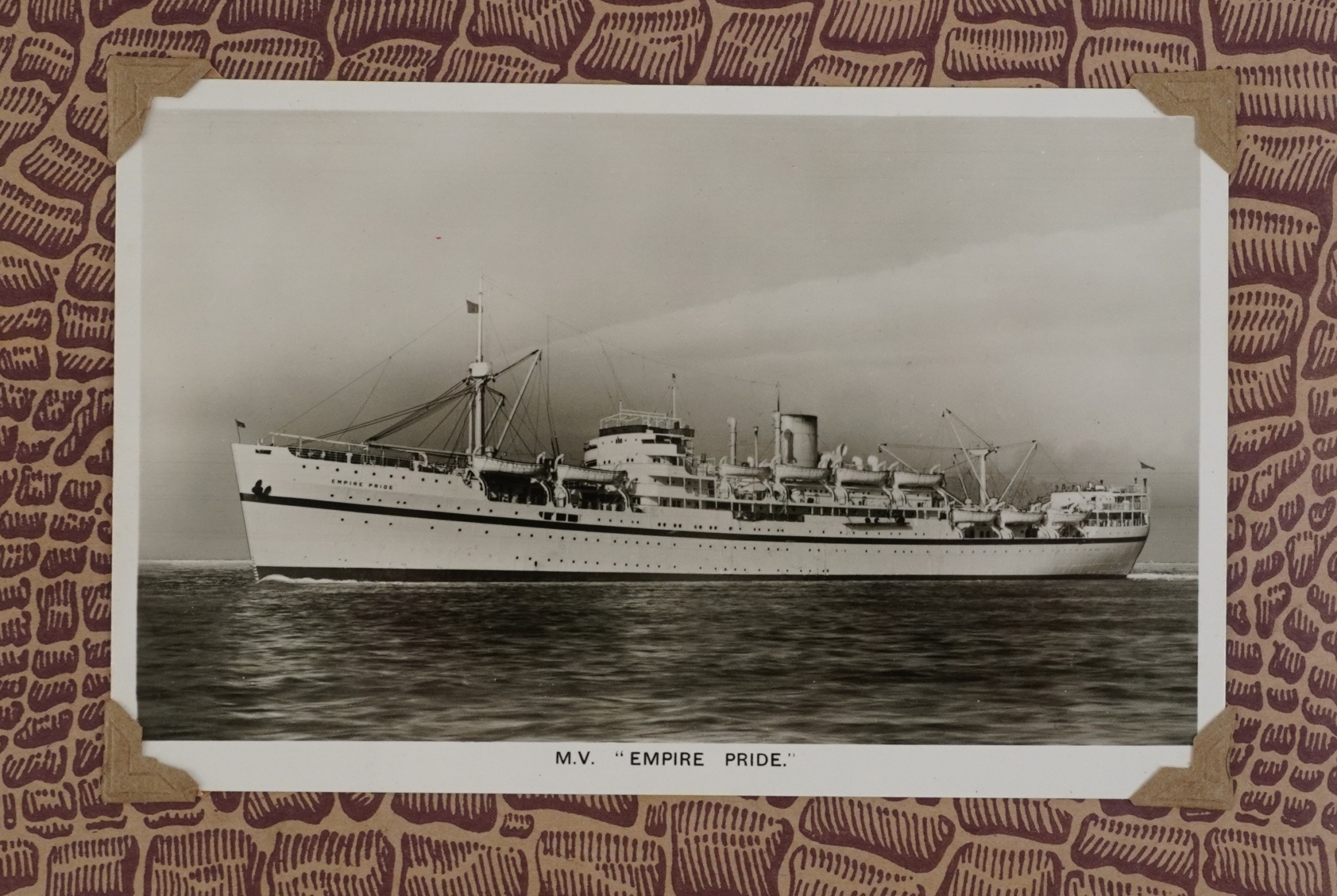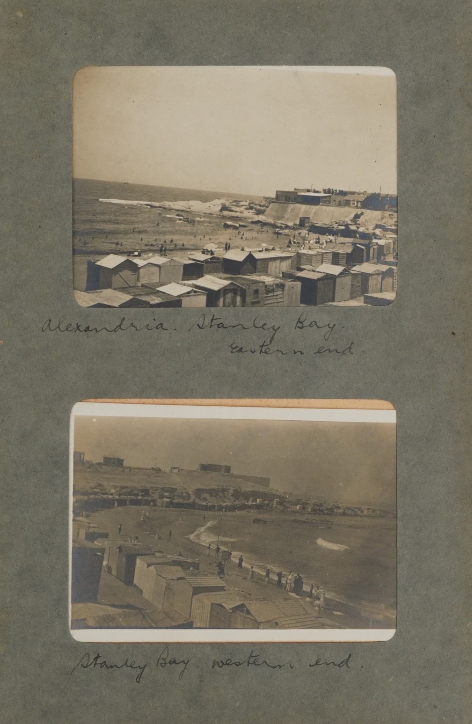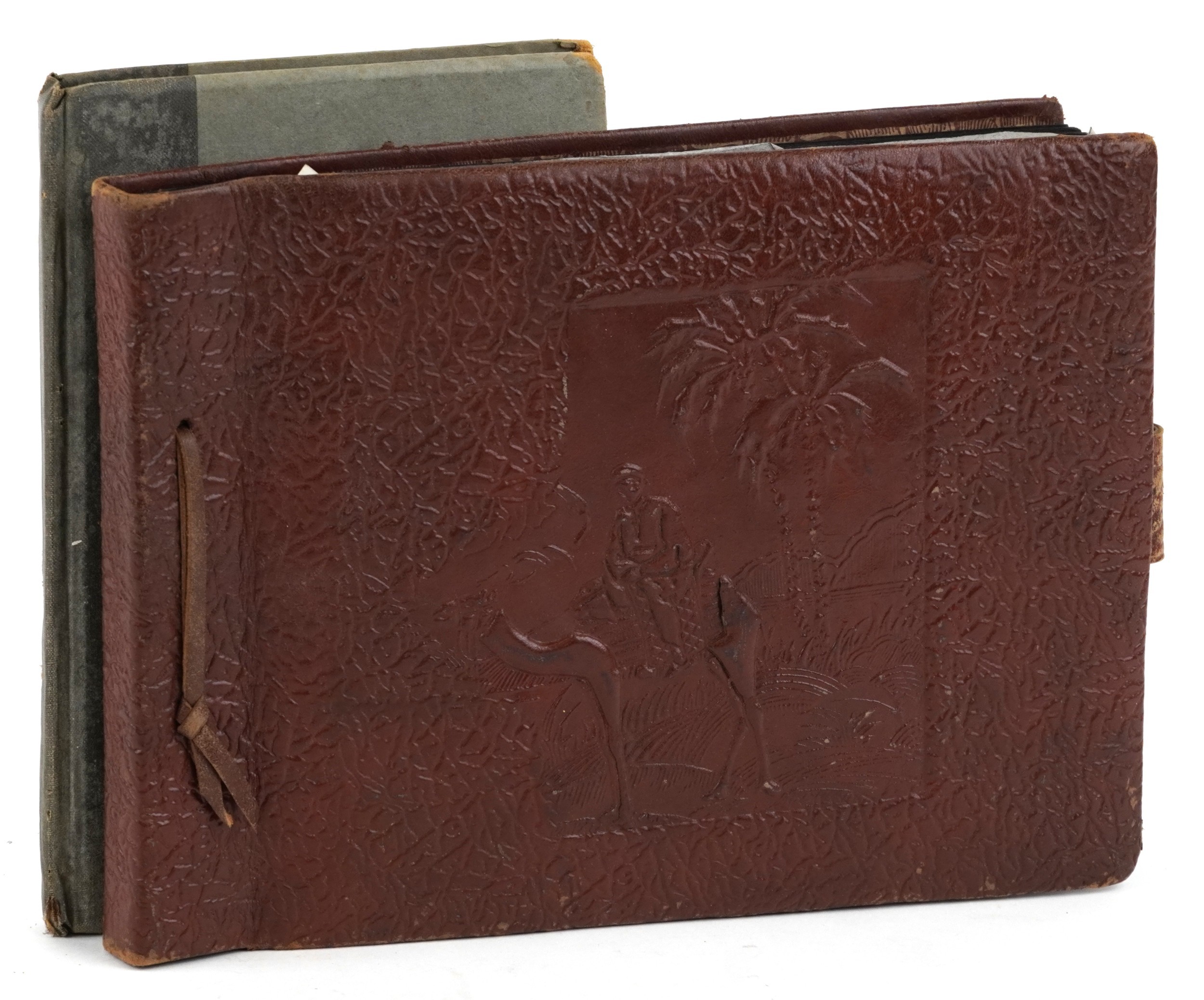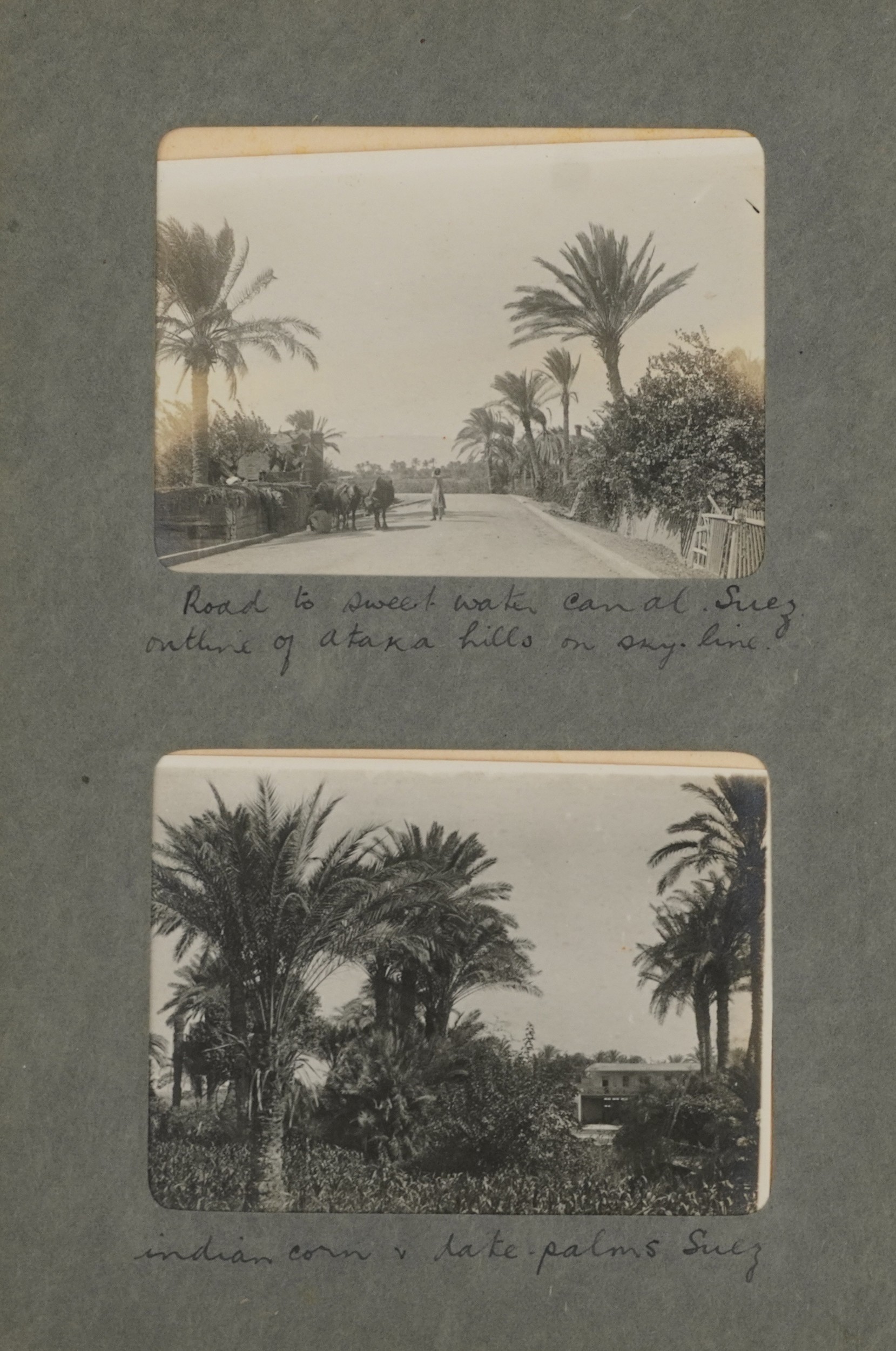 Two albums of 20th century black and white photographs, one album predominantly Suez views and shipping including HMS New Zealand, the house where Napoleon is said to have stayed in Suez, steam locomotives and some military.