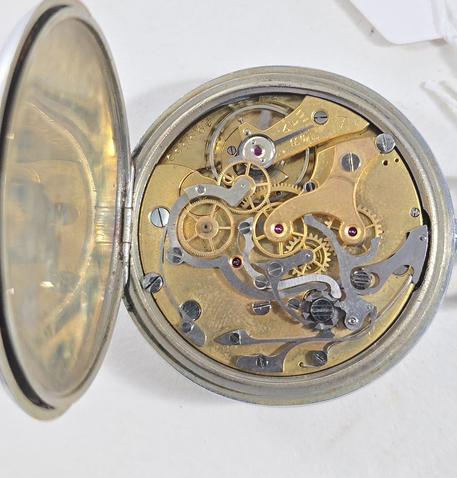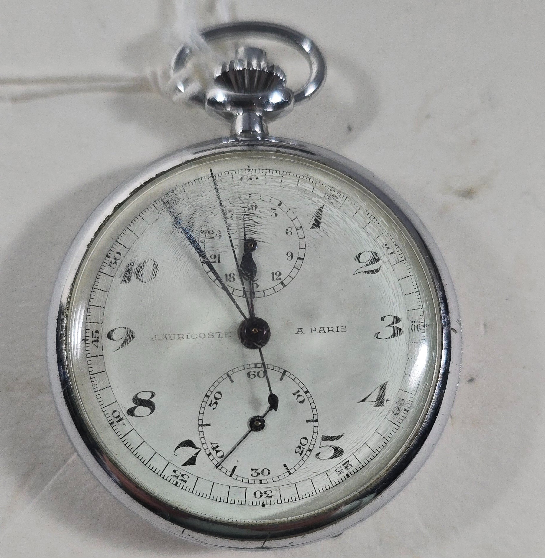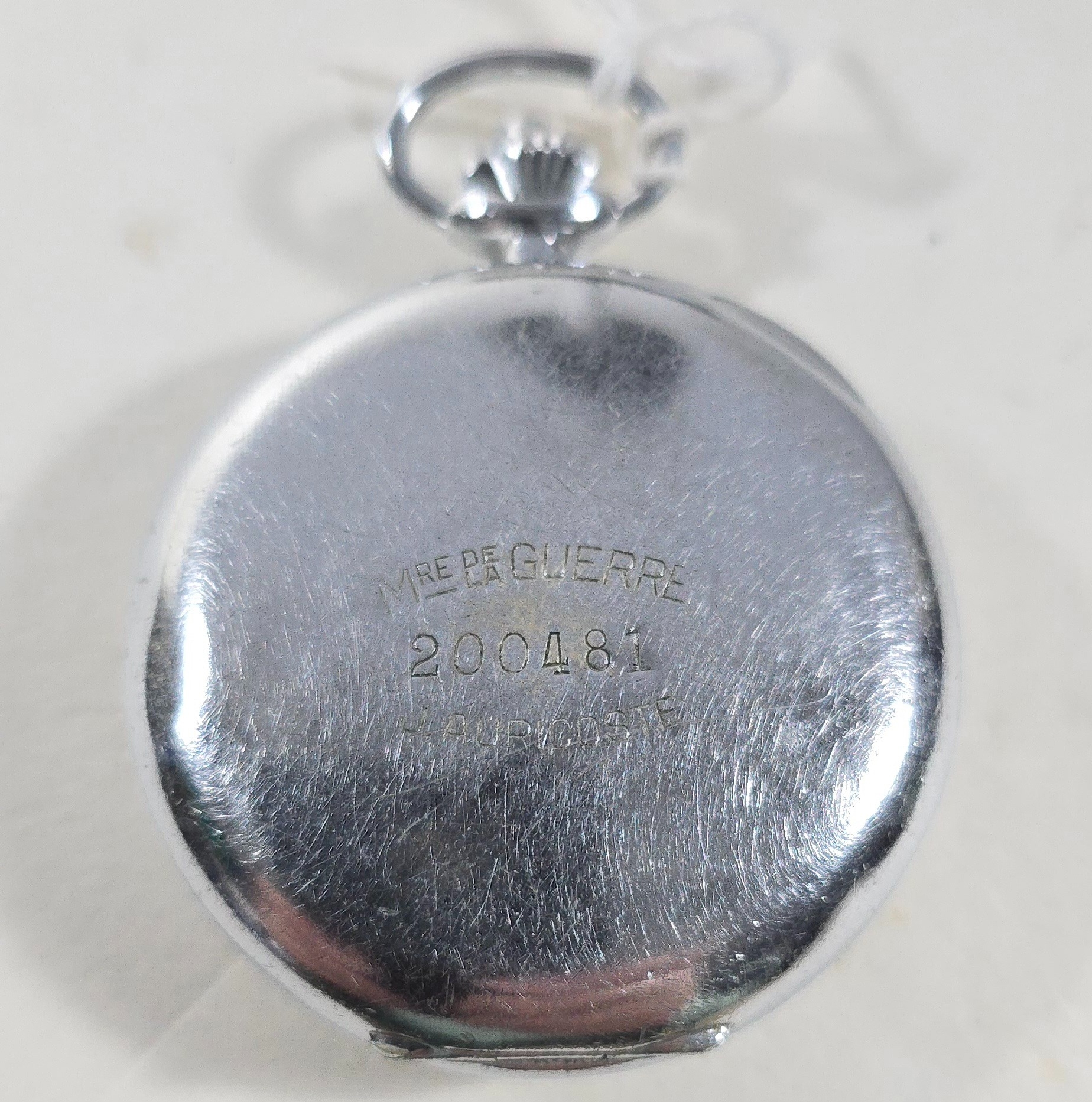 A French Military Issue chronograph by J.Auricoste circa 1940, with white dial the back marked "Mre de la Guerre", GWO&C.