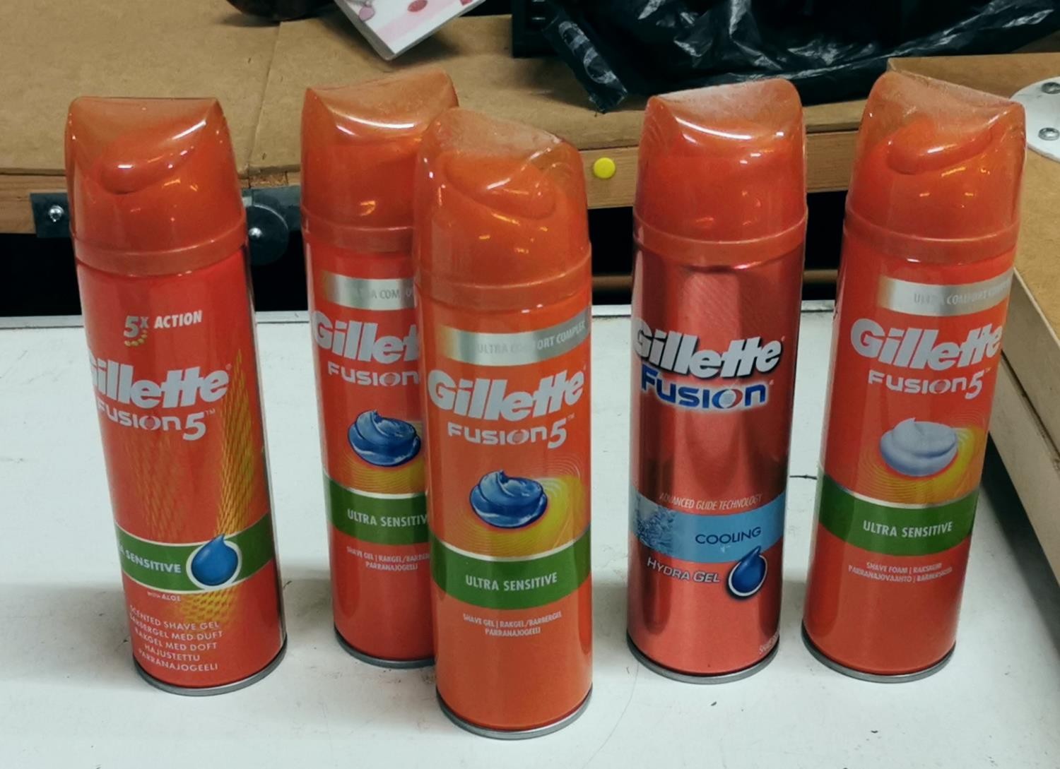 4 x Gillette Fusion shaving gels & 1 x foam