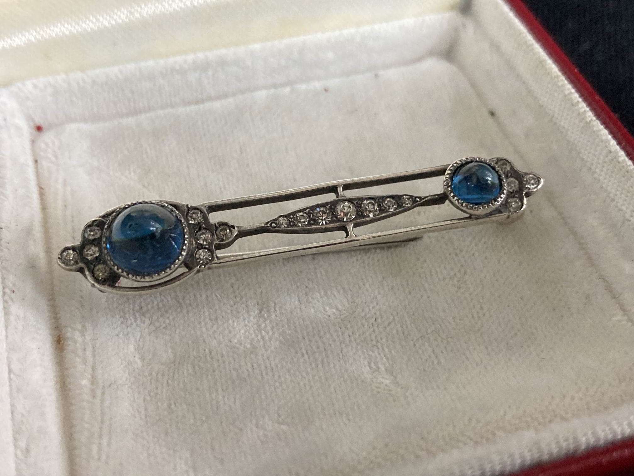 1920's Art Deco cabochon set silver brooch