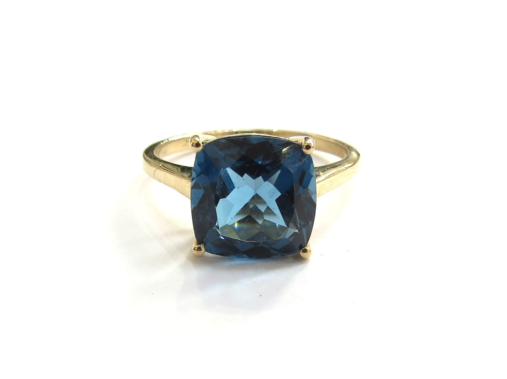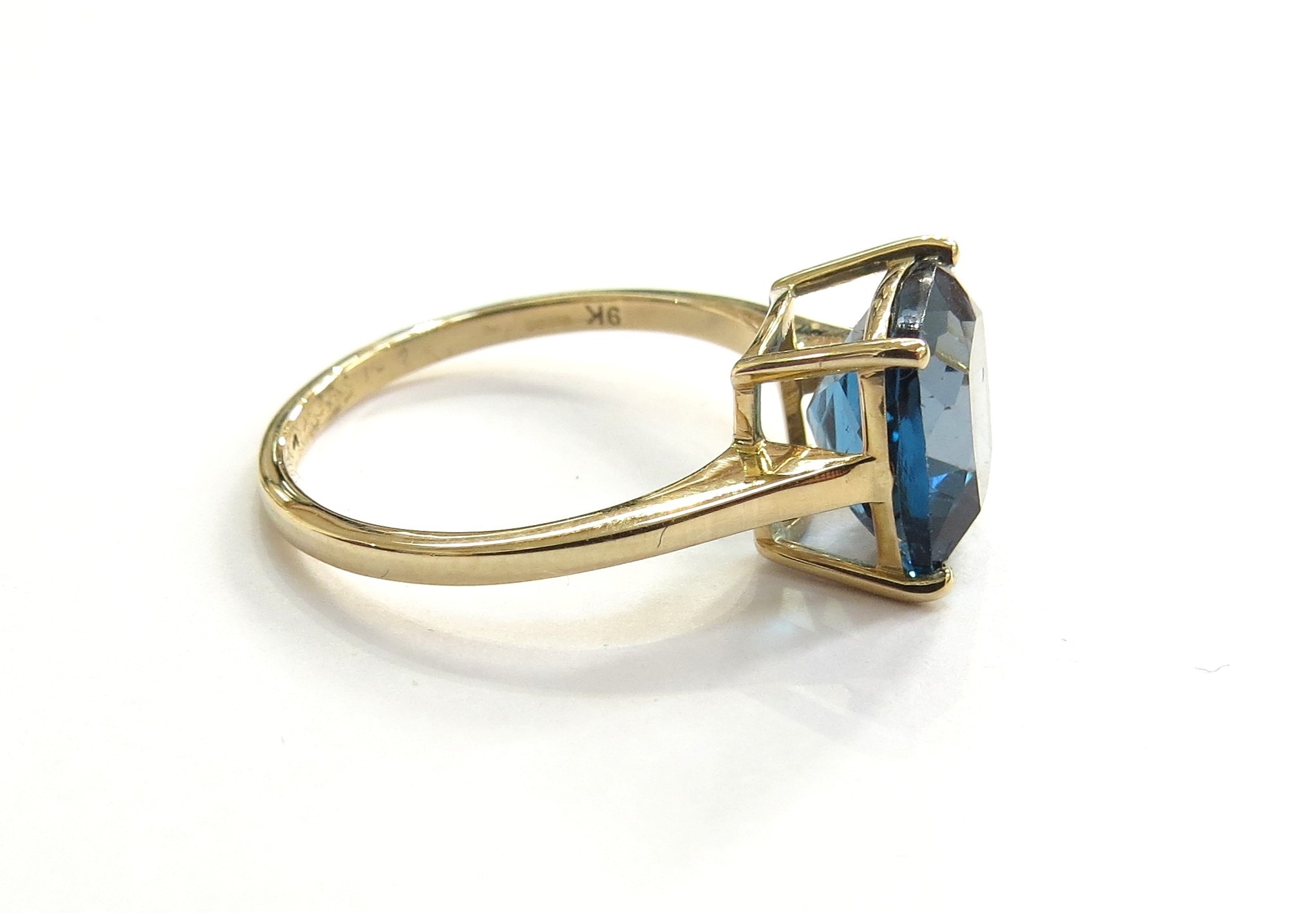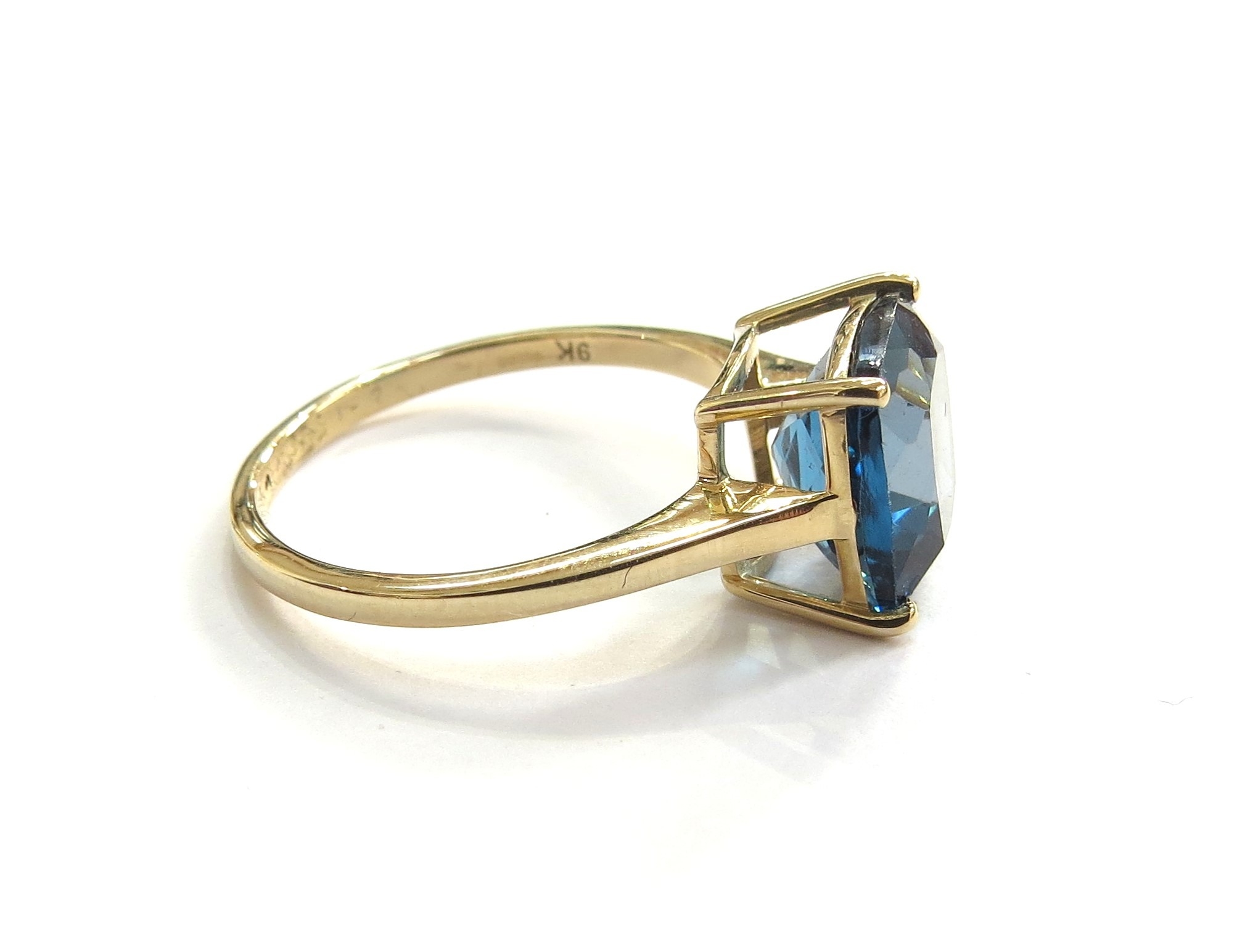 A 9ct gold London blue topaz Tomas Rae ring. Size Q, 3.1g
