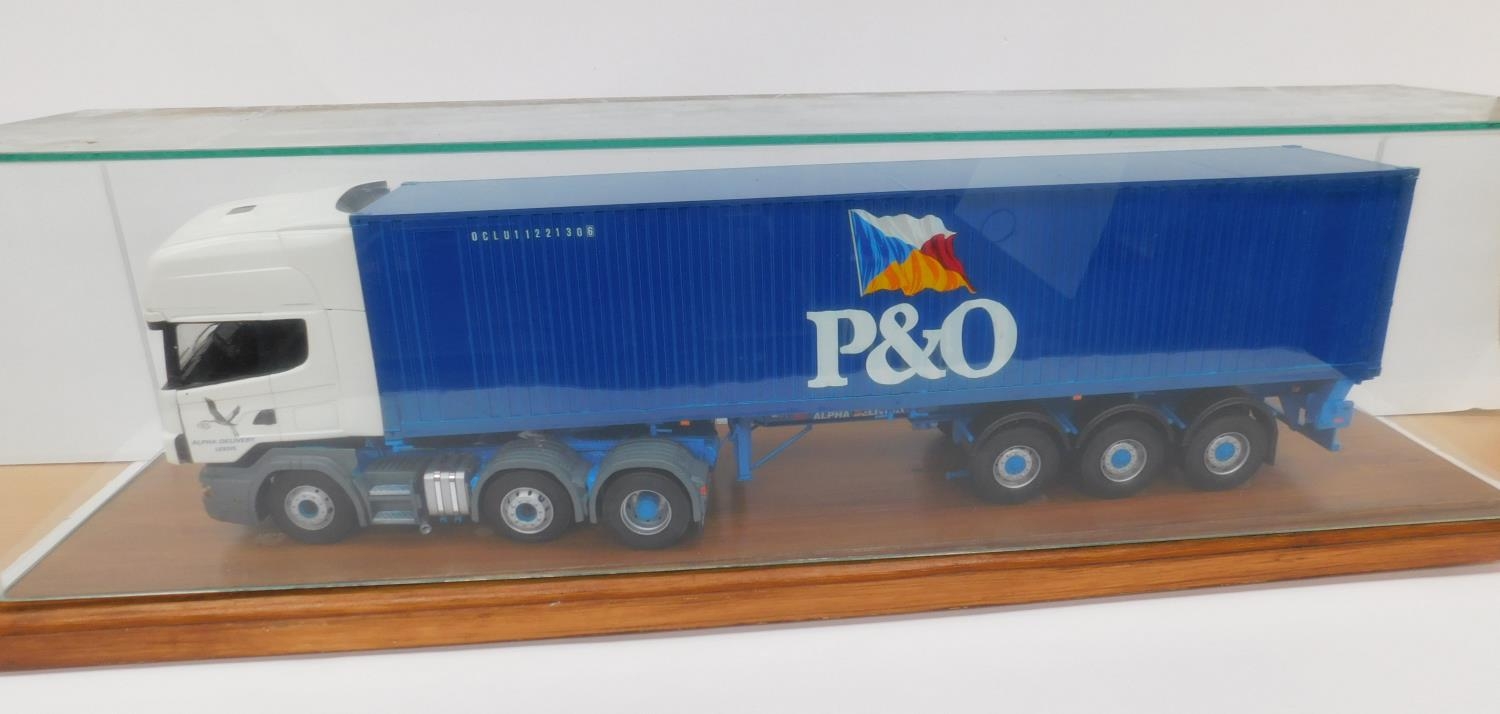 P&O display model in glass case & plinth (display approx 30x9")