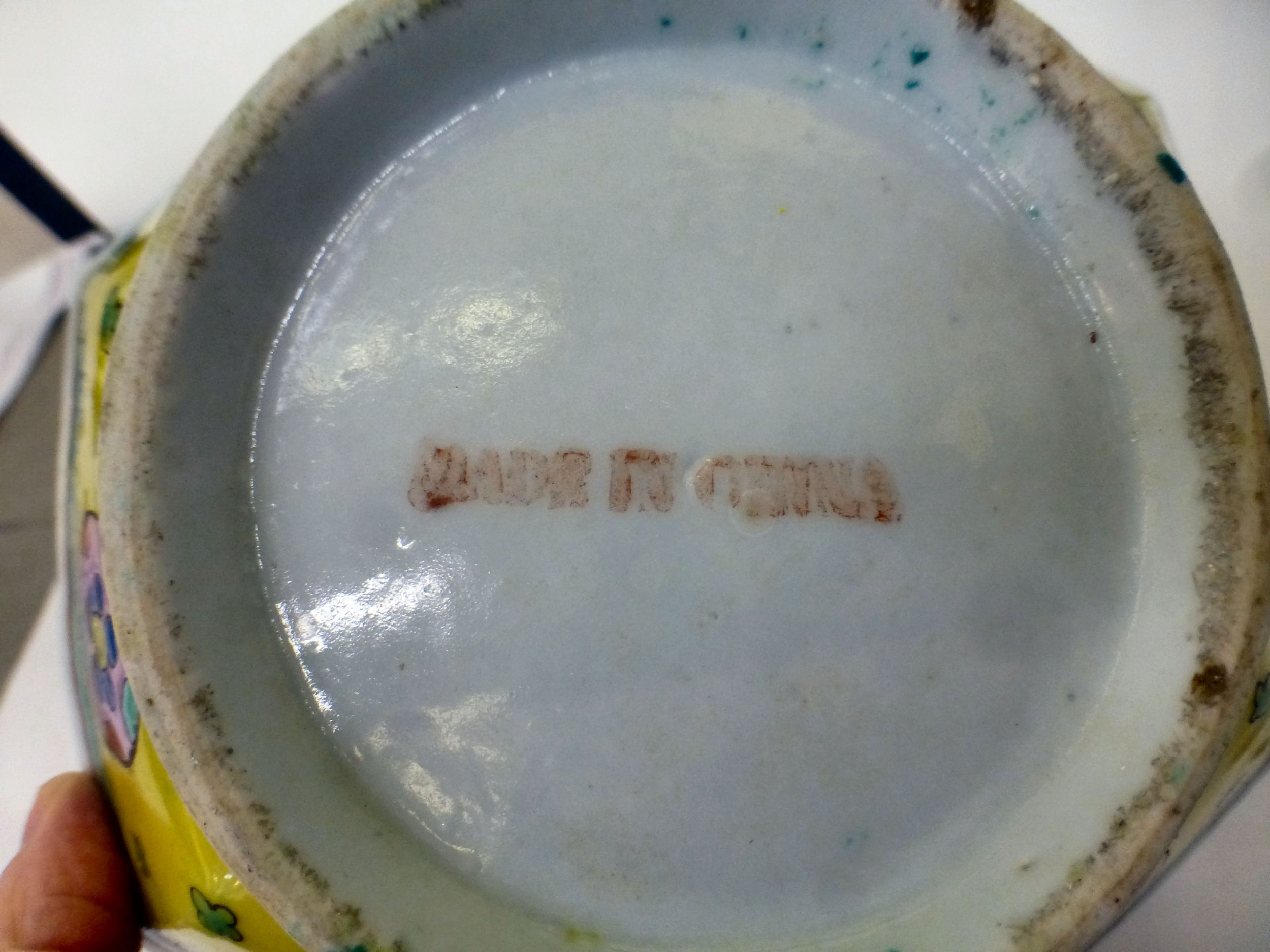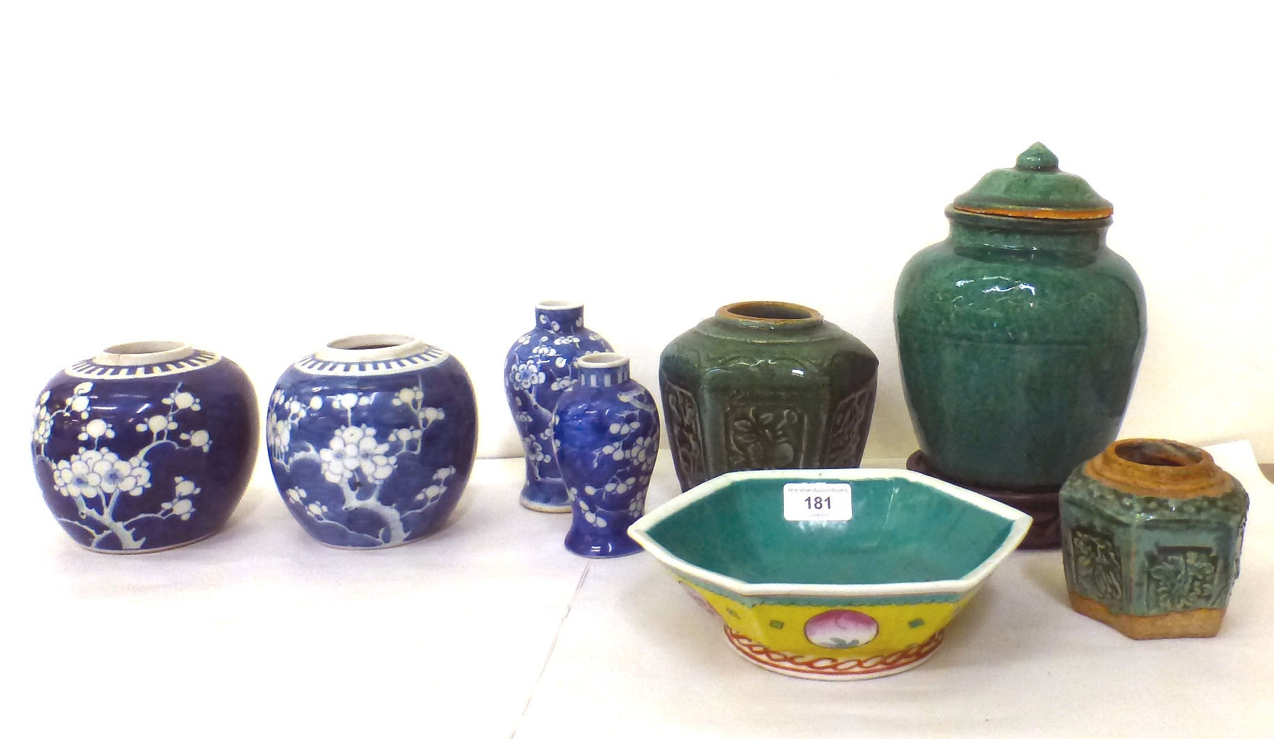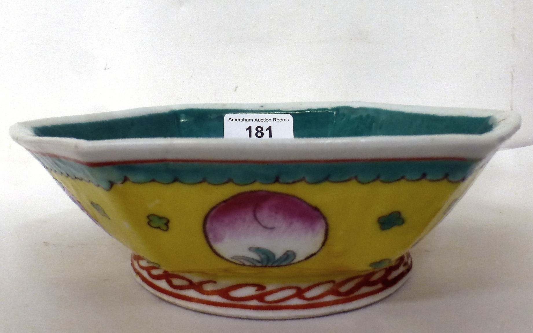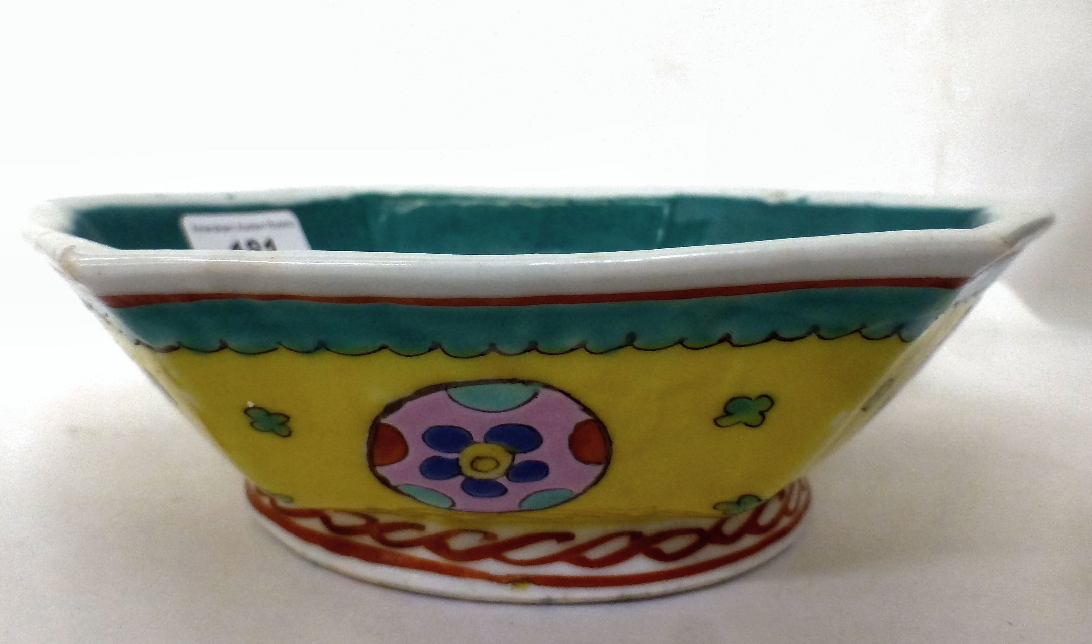 Chinese porcelain: to include an early 20thC bowl of hexagonal form, decorated with geometric motifs 8.5"w