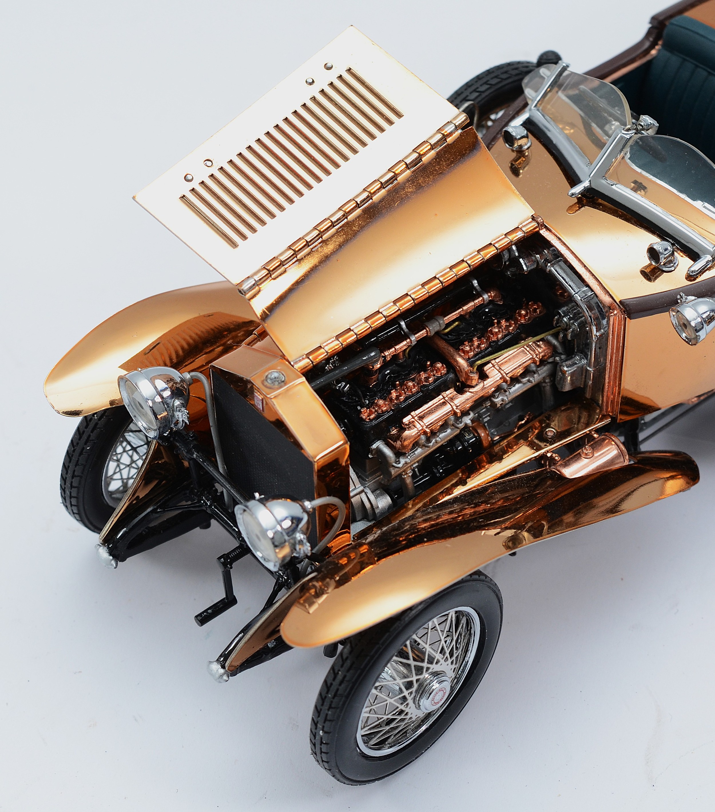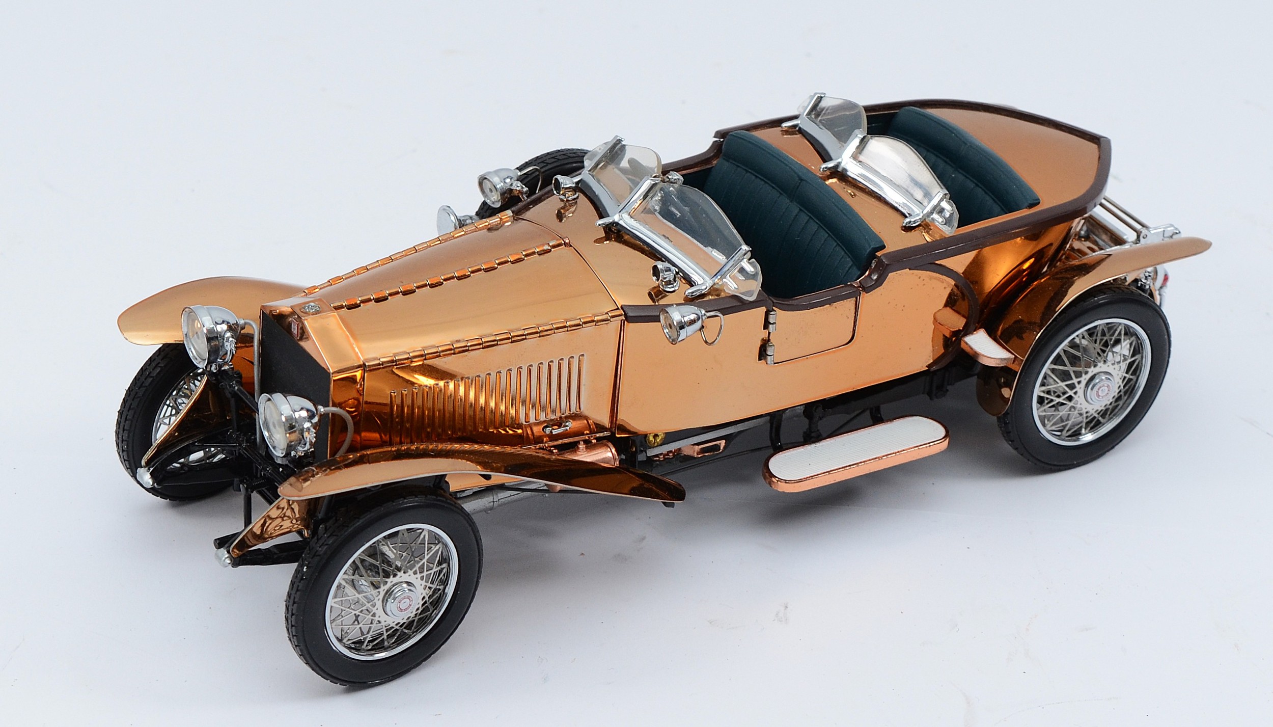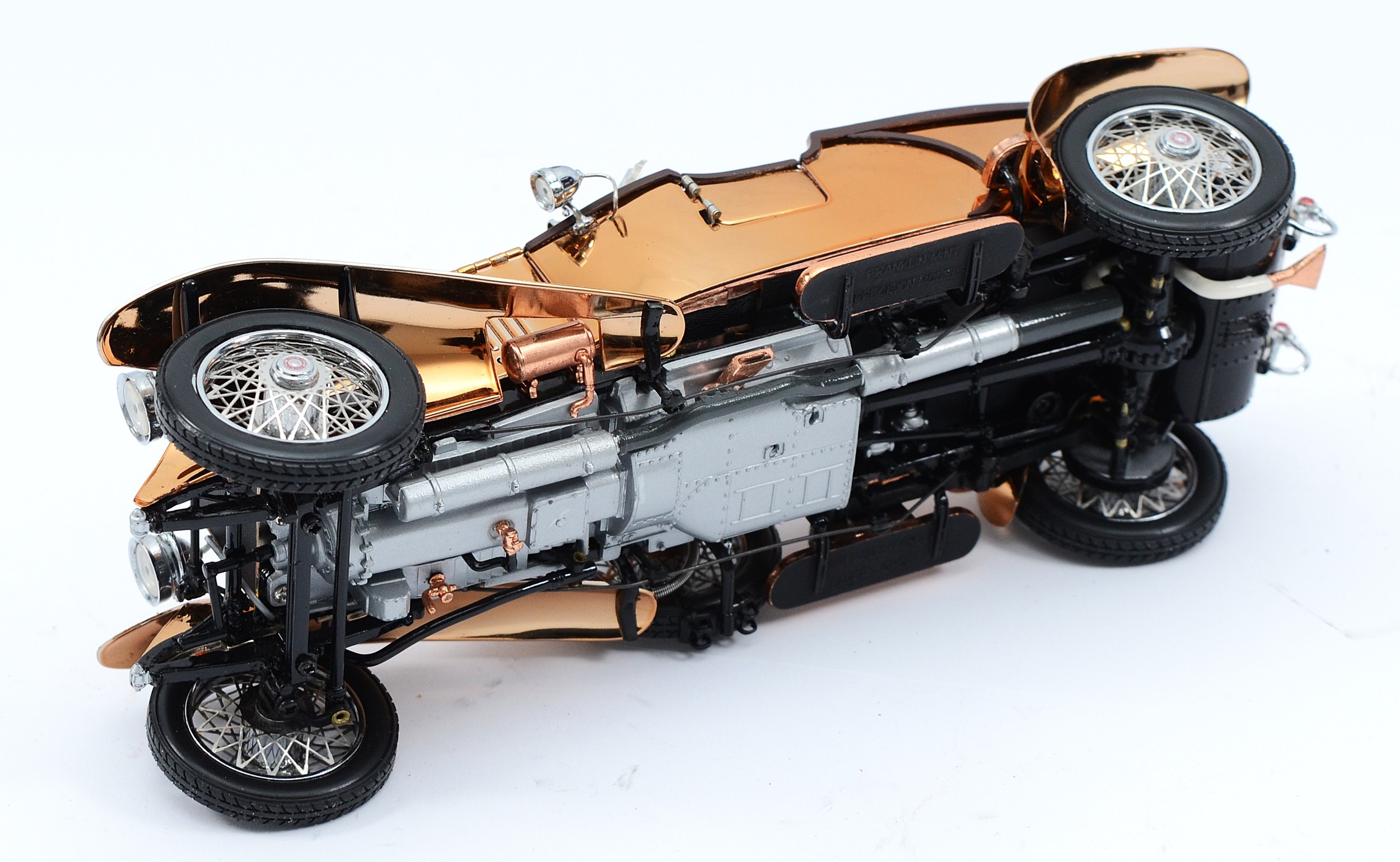 Franklin Mint model 1921 Rolls Royce Silver Ghost boattail, in copper, 1:24 scale.