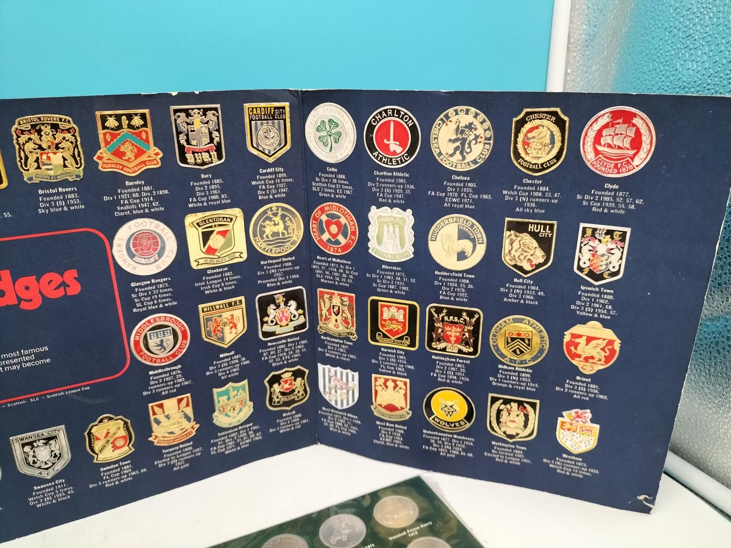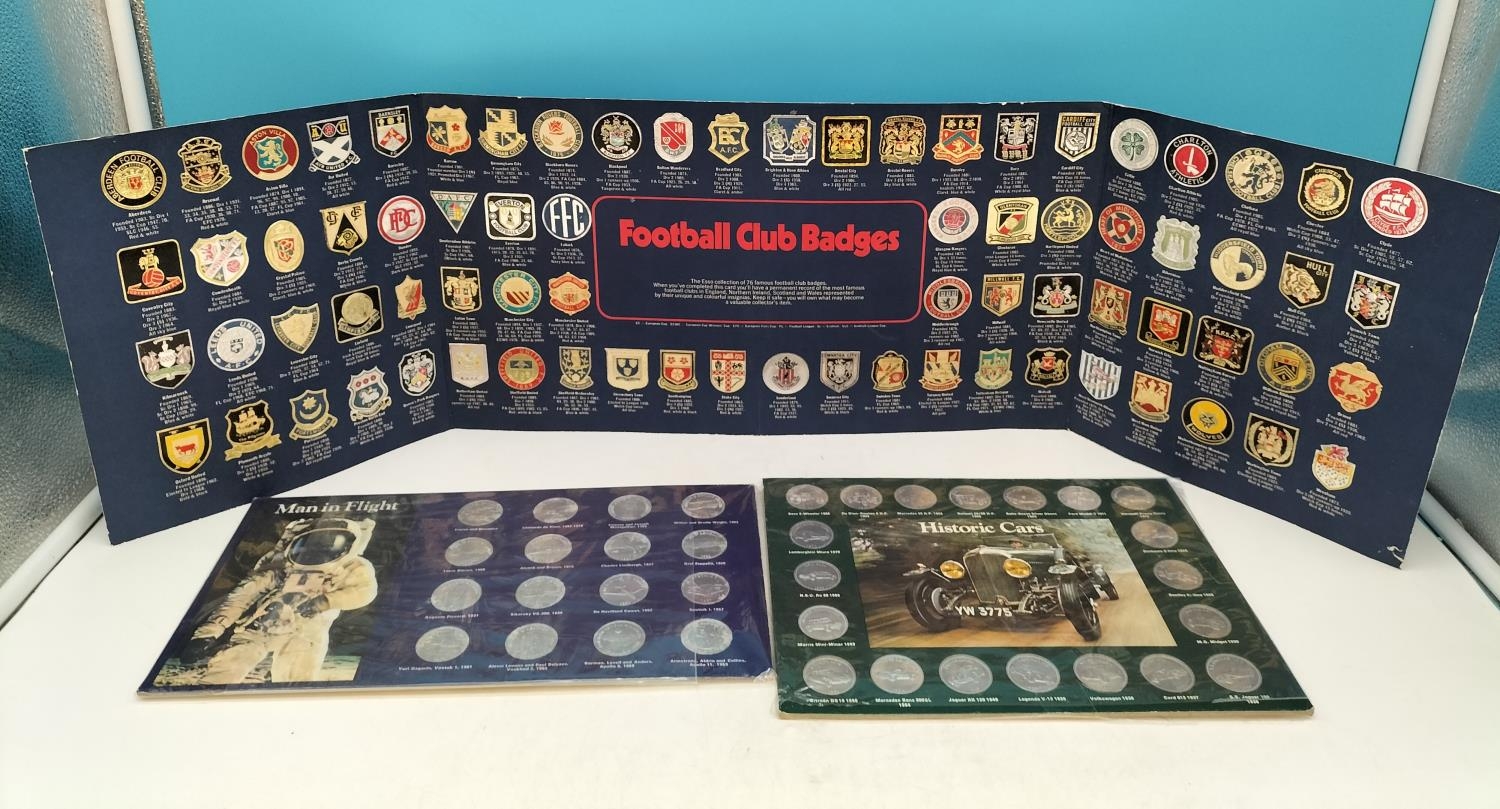 Shell 'History of Cars' and 'Moon Landing' Collectors Tokens plus Esso Set of 'Football Club Badges'.