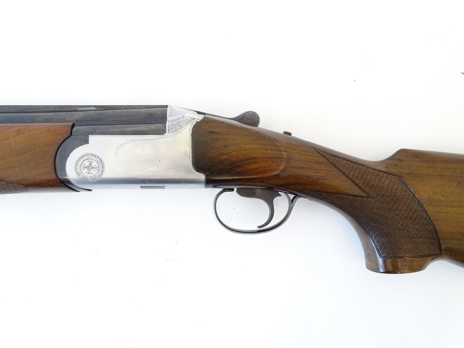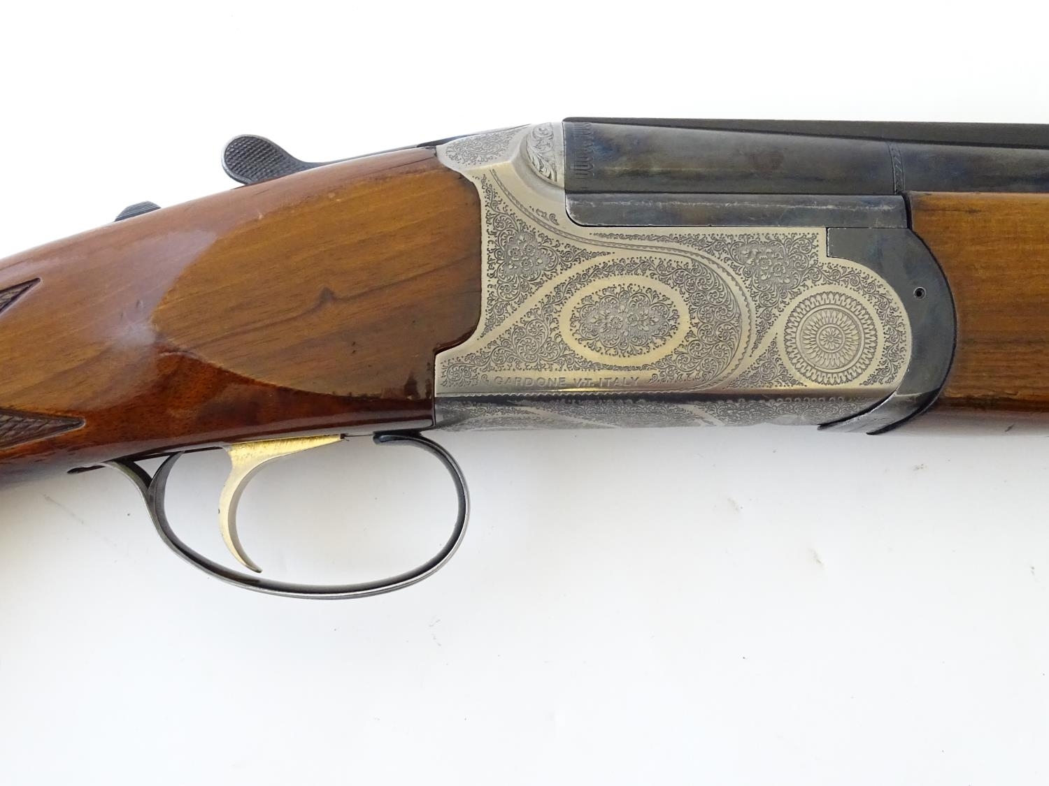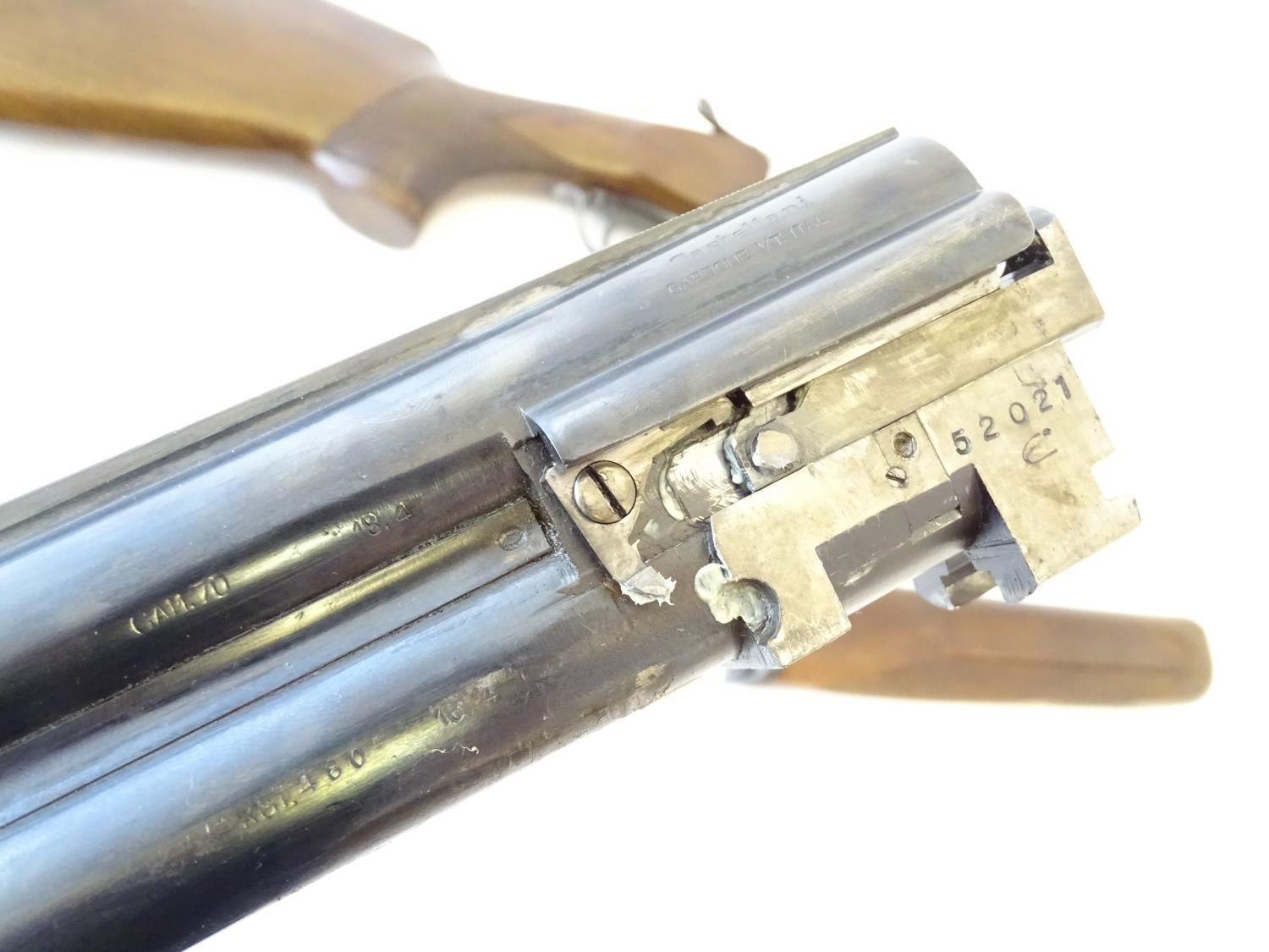 Shotgun: a Castellani 'Star Vega' 12 bore over and under ejector shotgun, single trigger, walnut pistolgrip stock with 14" LOP (including ebonite cap), 27 5/8" barrels with ventilated ribs and 2 3/4" chambers. Serial number 52021