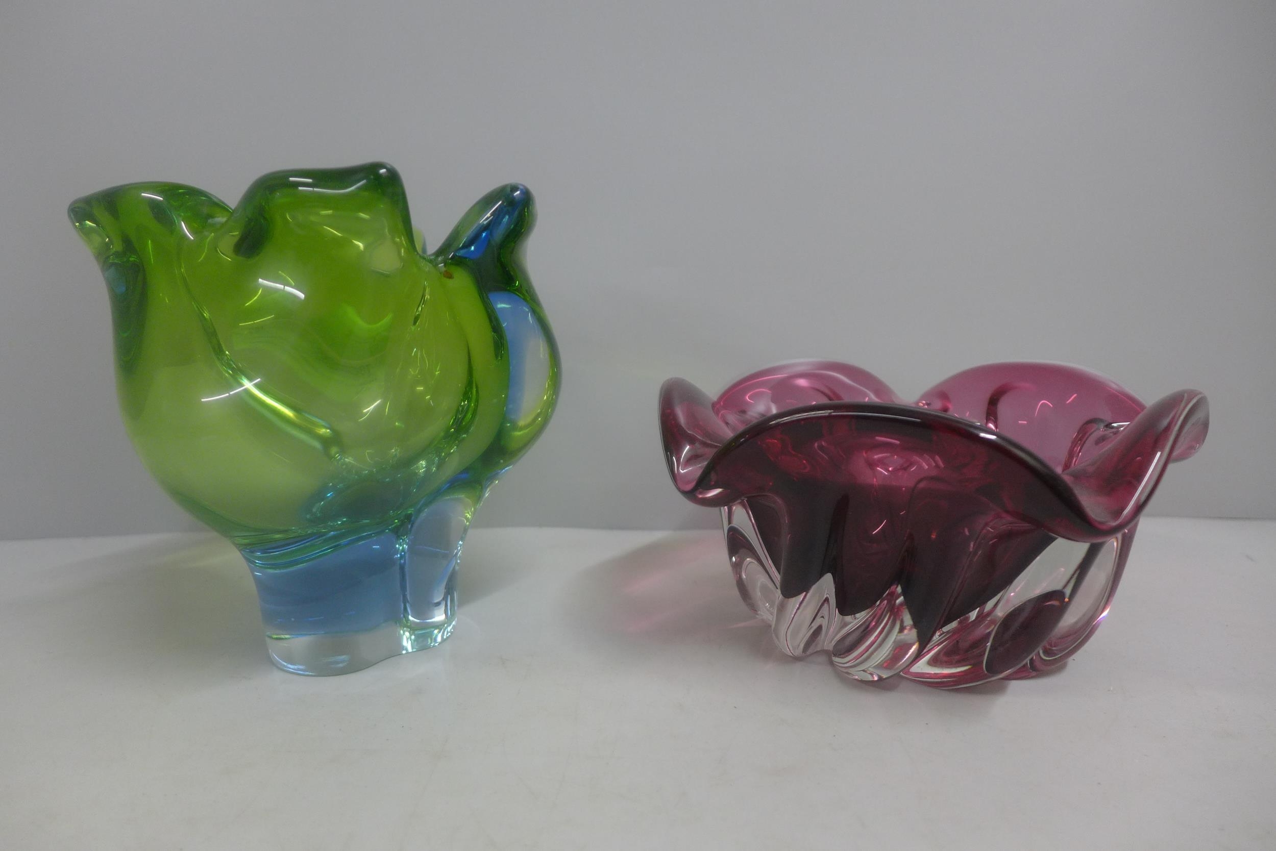 Two heavy cased coloured glass vases