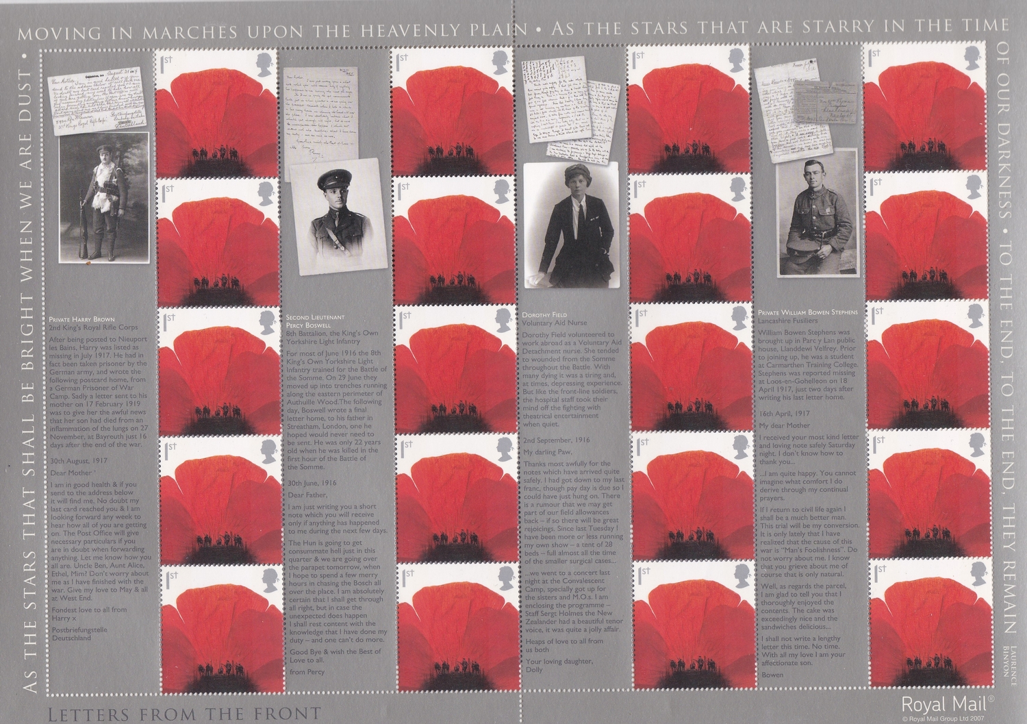 Great Britain 2007 ' Letter from the Front' Royal Mail Smilers Sheet (Poppy), SG LS43