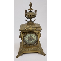 Antique 19th century brass, bevel glass and cloisonné mantel clock. Comes with a cloisonne and mercury pendulum. Key included. [27x17x14cm] [pendulum attachment needs attention]
