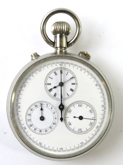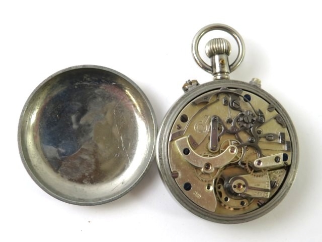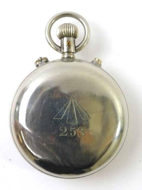 MILITARY INTEREST: A military 'The Winner' split second chronograph pocket watch in 52mm nickel engraved with broad arrow 253.